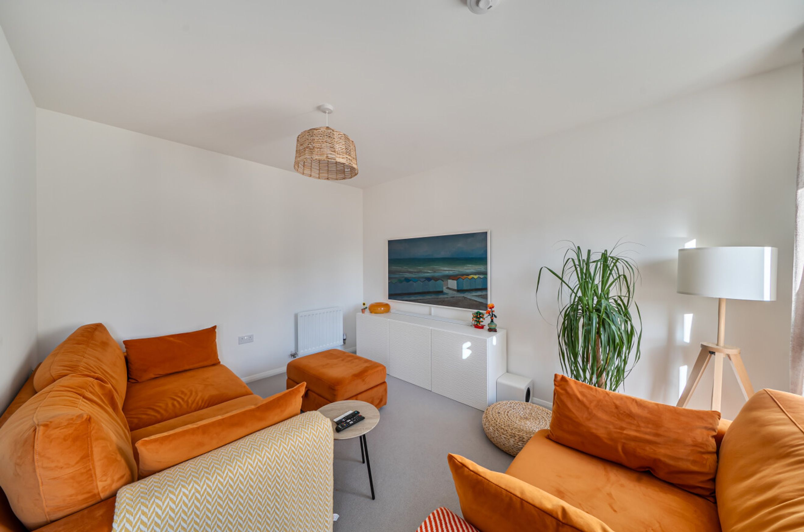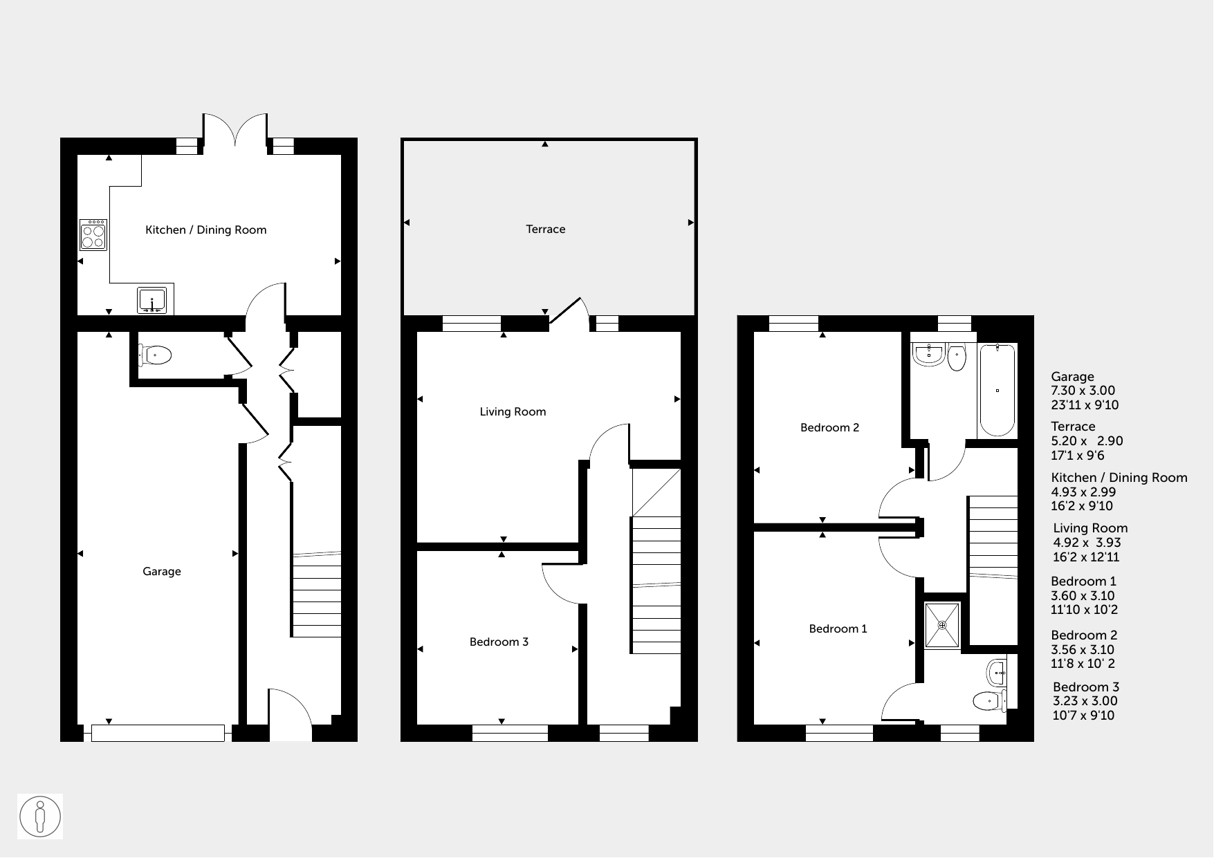 Upstairs features a spacious living room, with a door leading out onto the terrace. There are three comfortable bedrooms with an ensuite to the master. The bathrooms have modern, white suites.