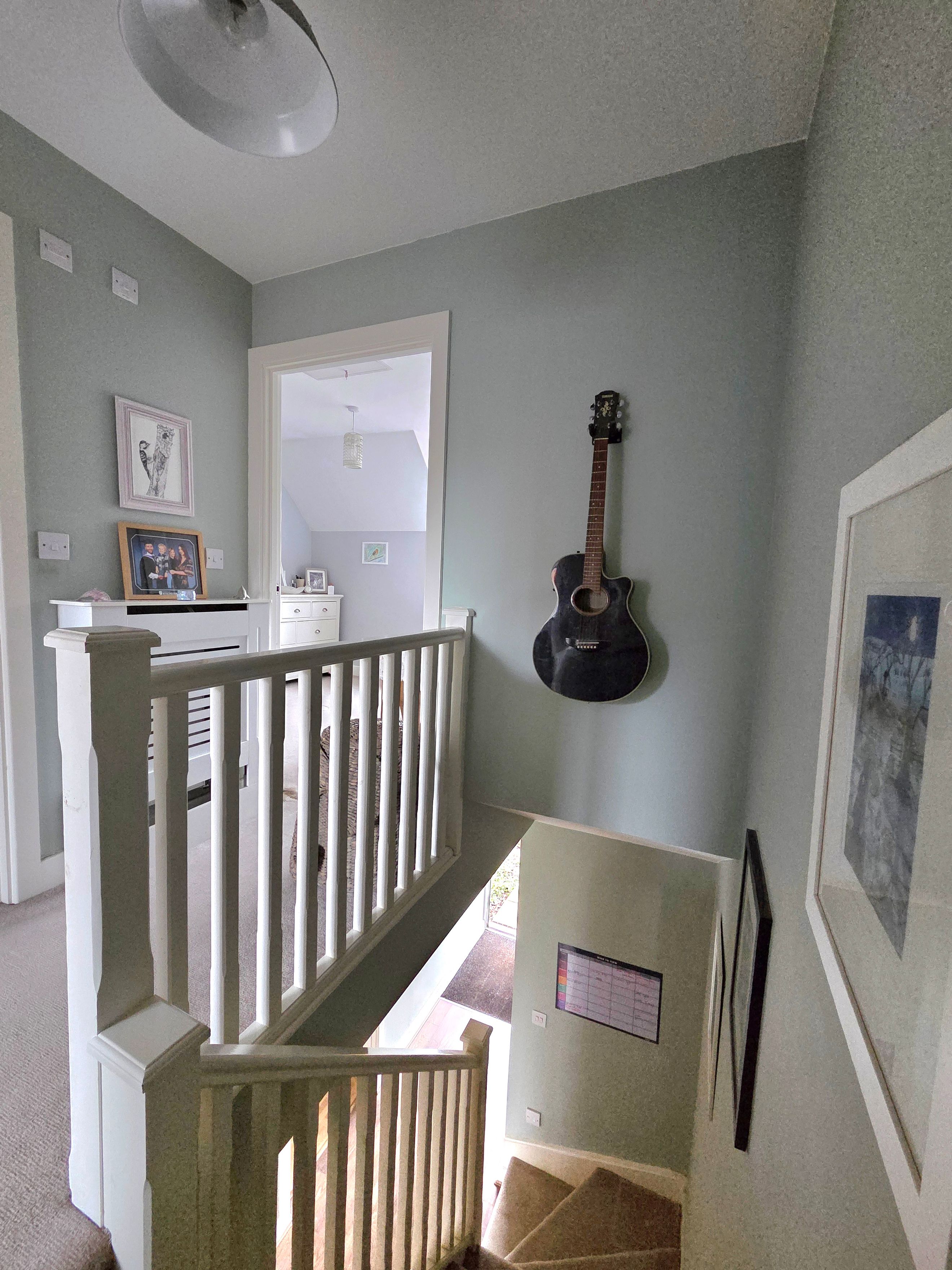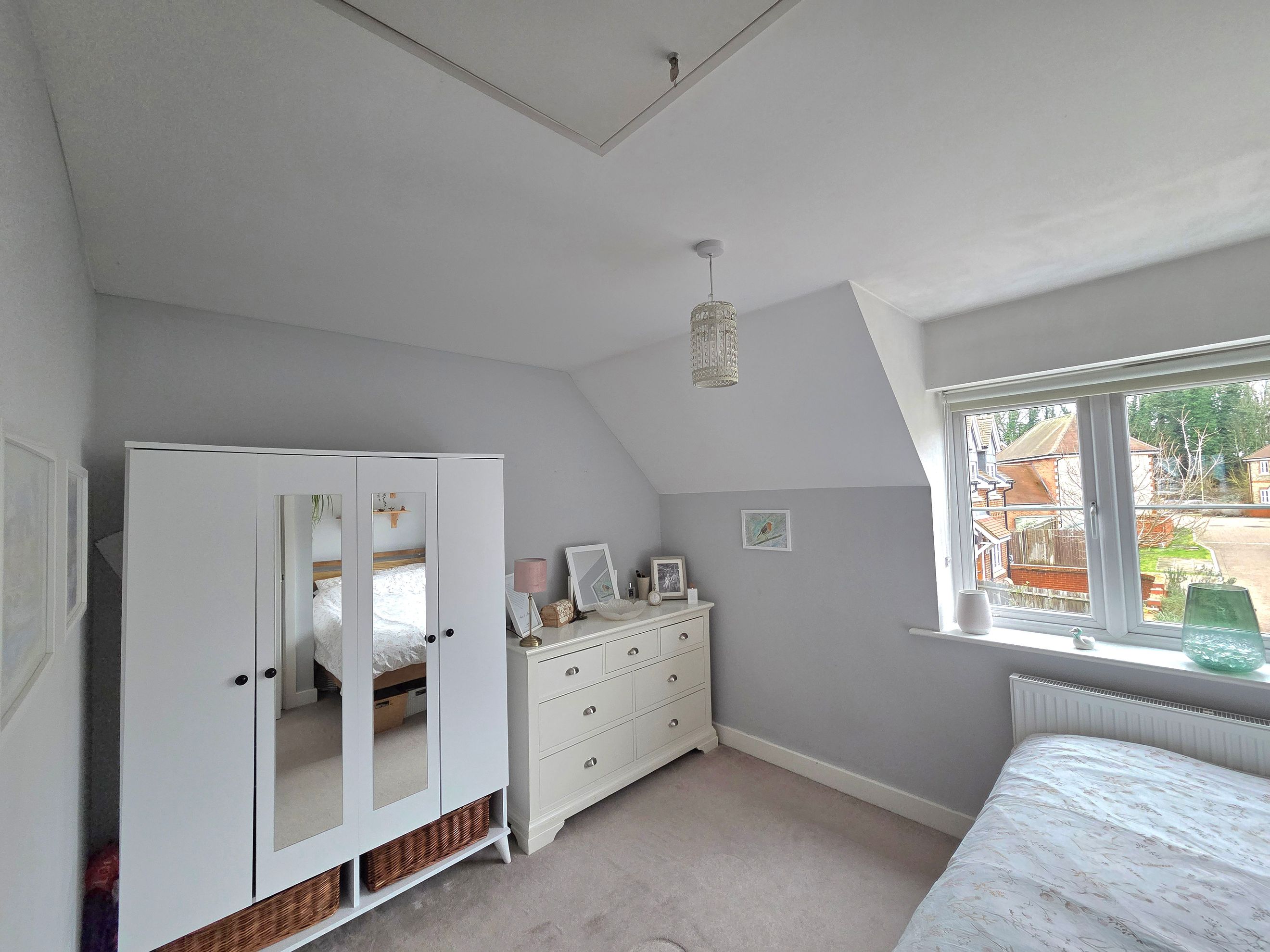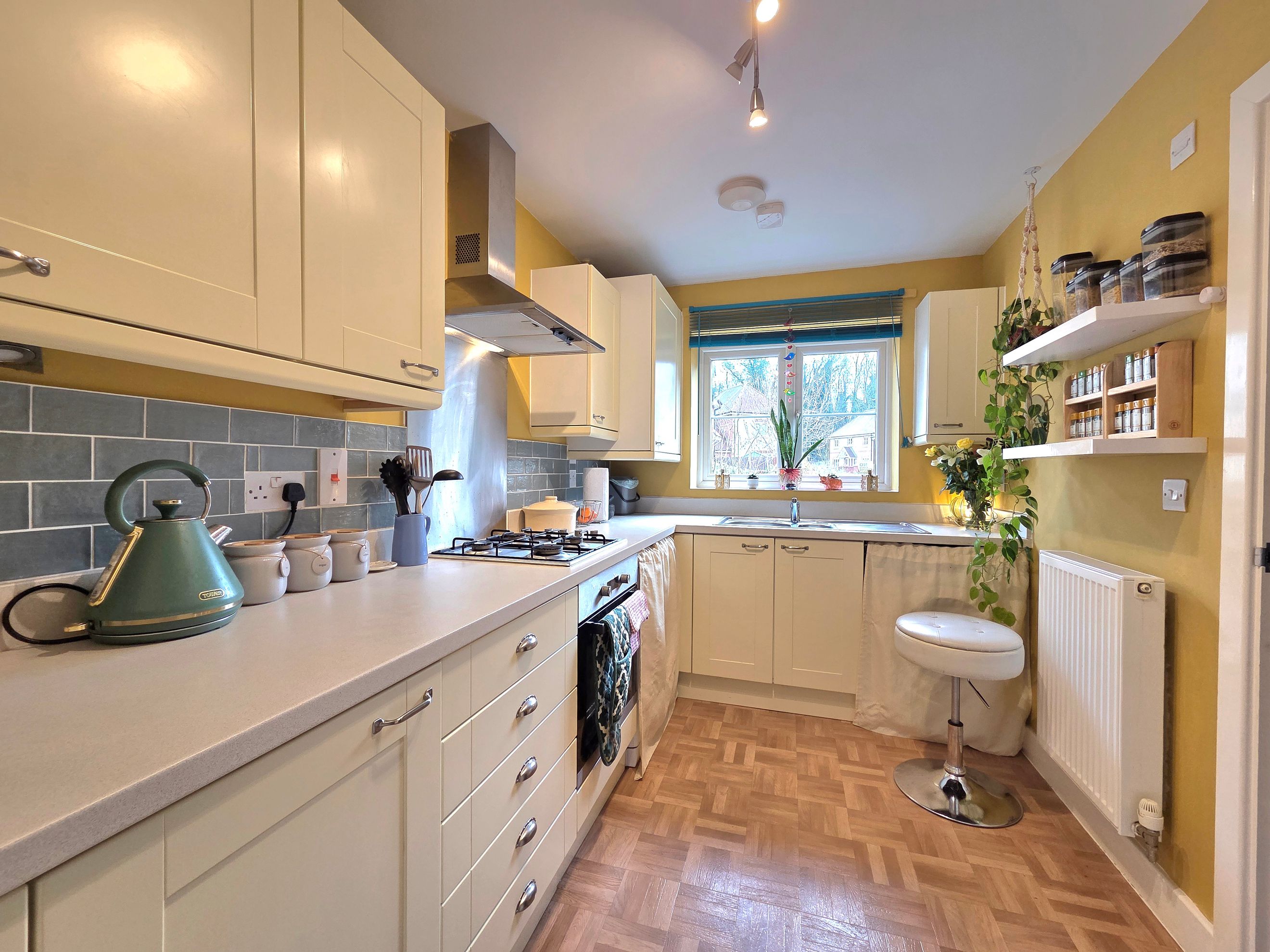 Upstairs, you’ll find two spacious double bedrooms, one benefiting from its own built‑in storage cupboard. The family bathroom includes a classic three‑piece suite with a shower over the bath.