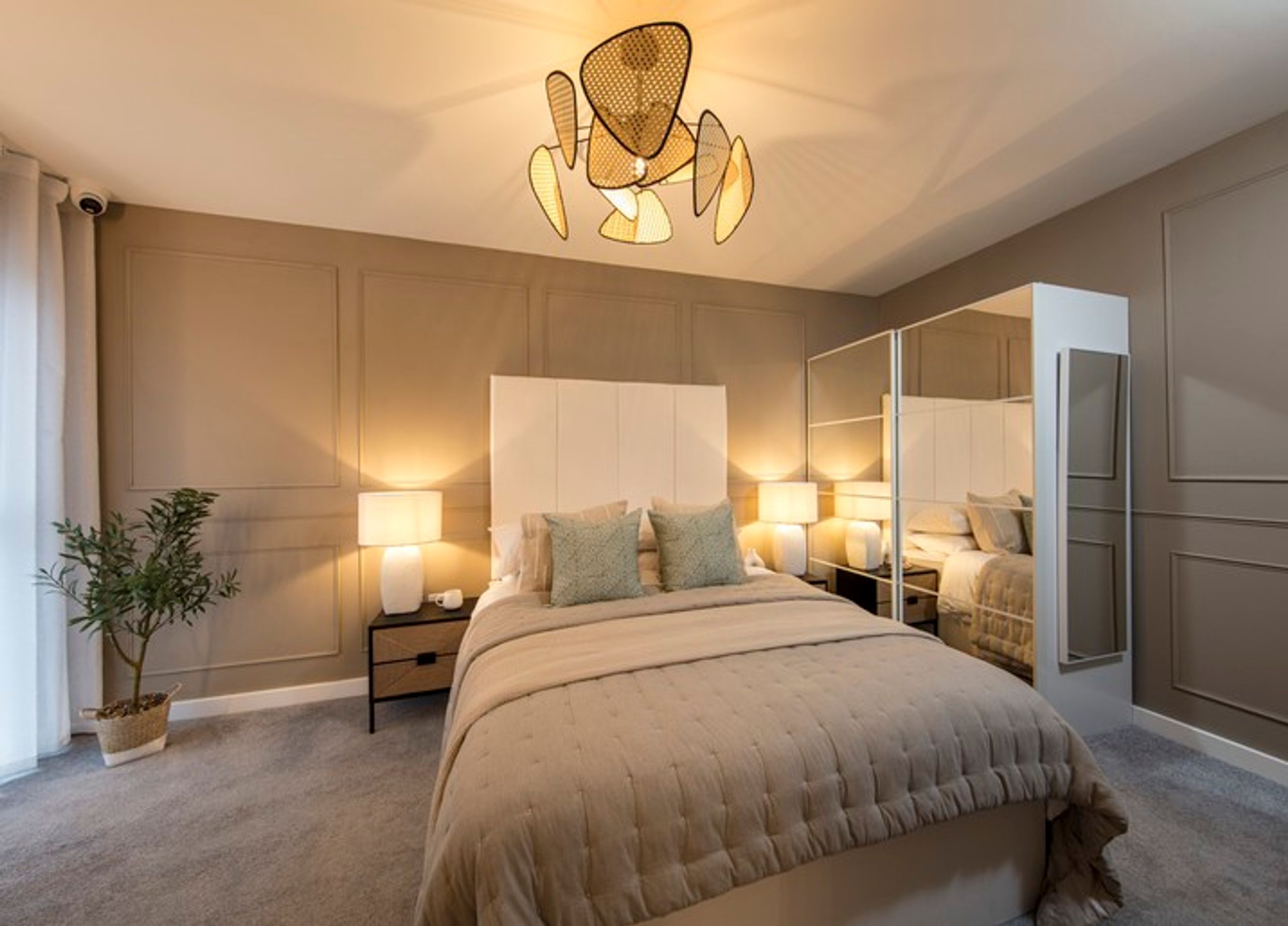 The master bedroom is generously sized, ideal for unwinding at the end of the day, and finished with plush grey carpets. There's plenty of space for wardrobes and a dressing table. This home is complete with Amtico flooring throughout, a double door storage cupboard in the hall, and a bathroom finished with porcelain tiles and premium fixtures.
