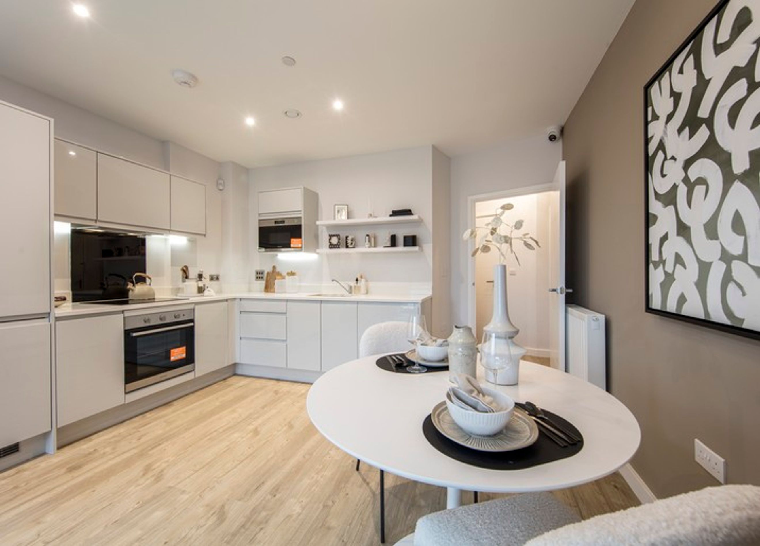 With your own private front door, you're granted the ultimate blend of exclusivity and convenience, creating an extra layer of privacy and ease of access. As you enter, you're welcomed into a generous open-plan kitchen and living area designed for both style and ease. The L-shaped kitchen features Quartz 'Salt and Pepper' worktops, sleek handleless gloss cabinetry, and fully integrated appliances, providing a modern, functional space for everyday cooking and entertaining.