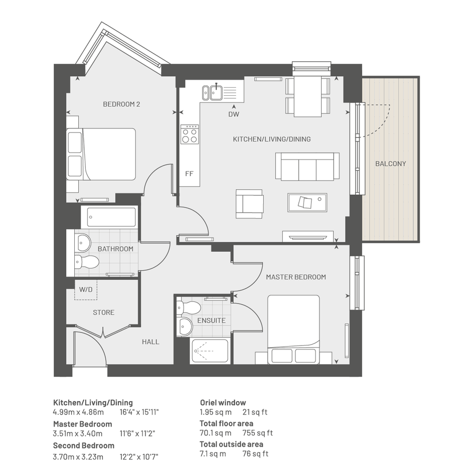 Plot 177,The Honeysuckle, 2 bed 2bath with balcony 755 sq ft
