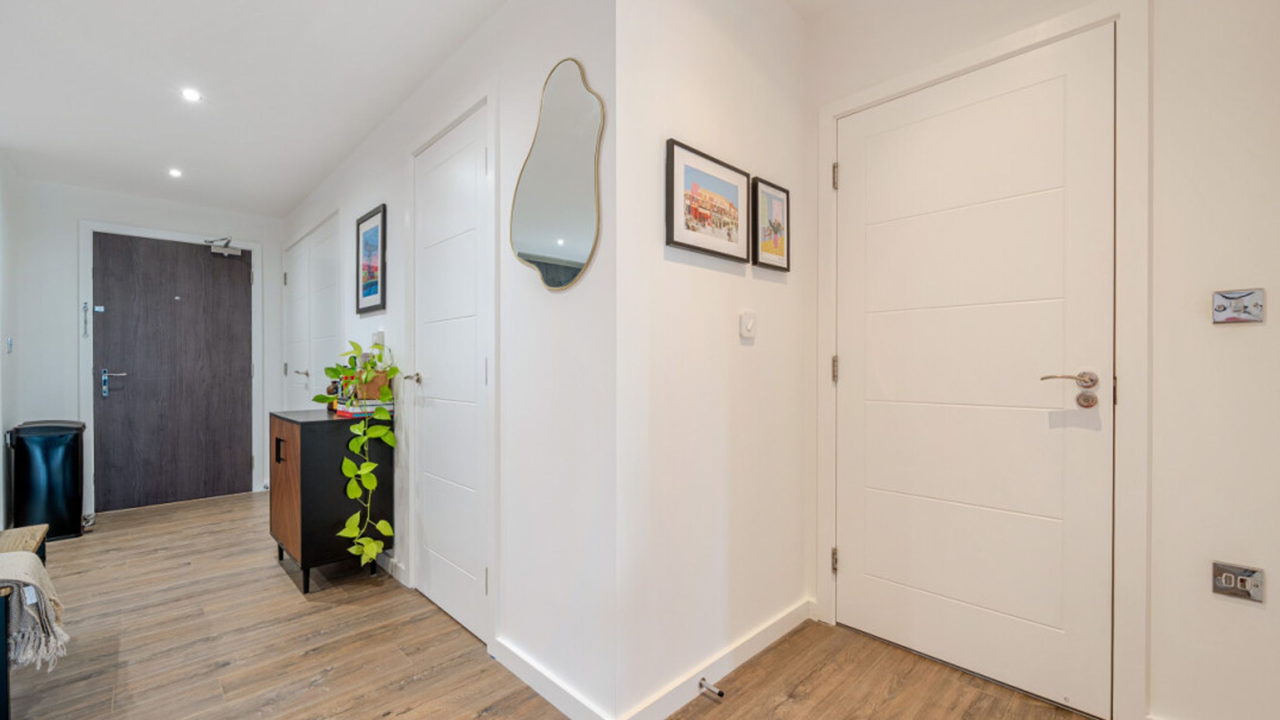 Step into this modern, spacious, and beautifully bright one bedroom apartment, designed to offer both comfort and contemporary style. The welcoming hallway is generously sized and features large storage cupboards, setting the tone for the thoughtful layout found throughout the home.