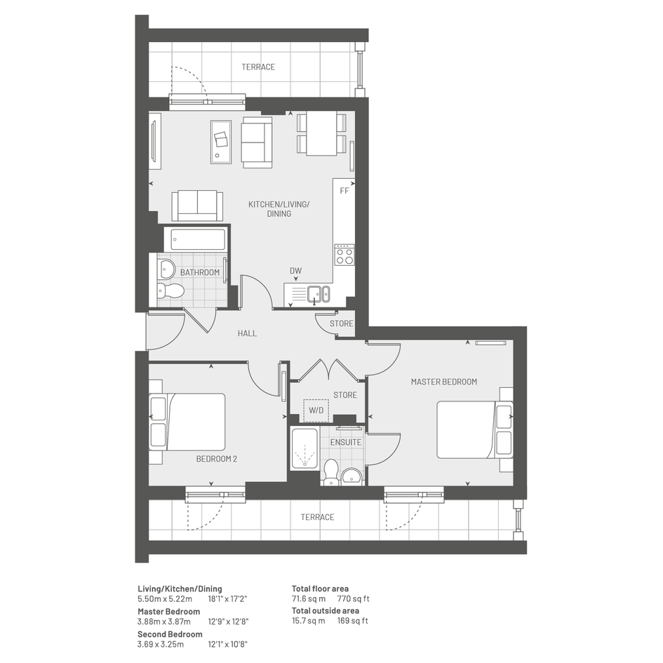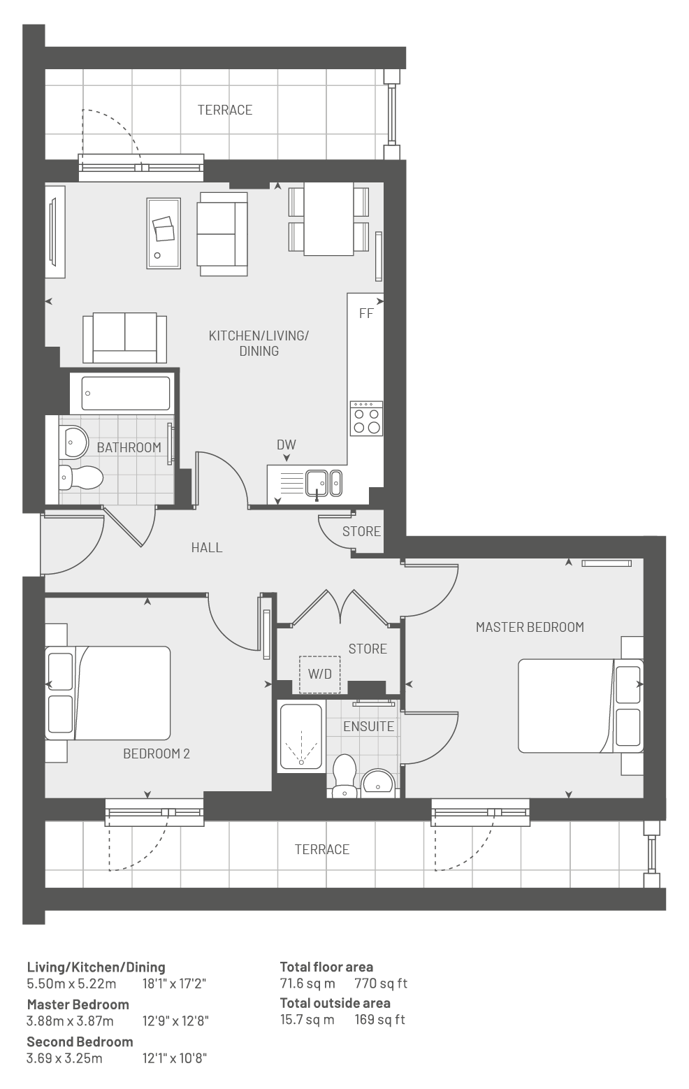 Plot 225- The Maple-2 bed- 2 bath with 2 terraces- 770 sq ft