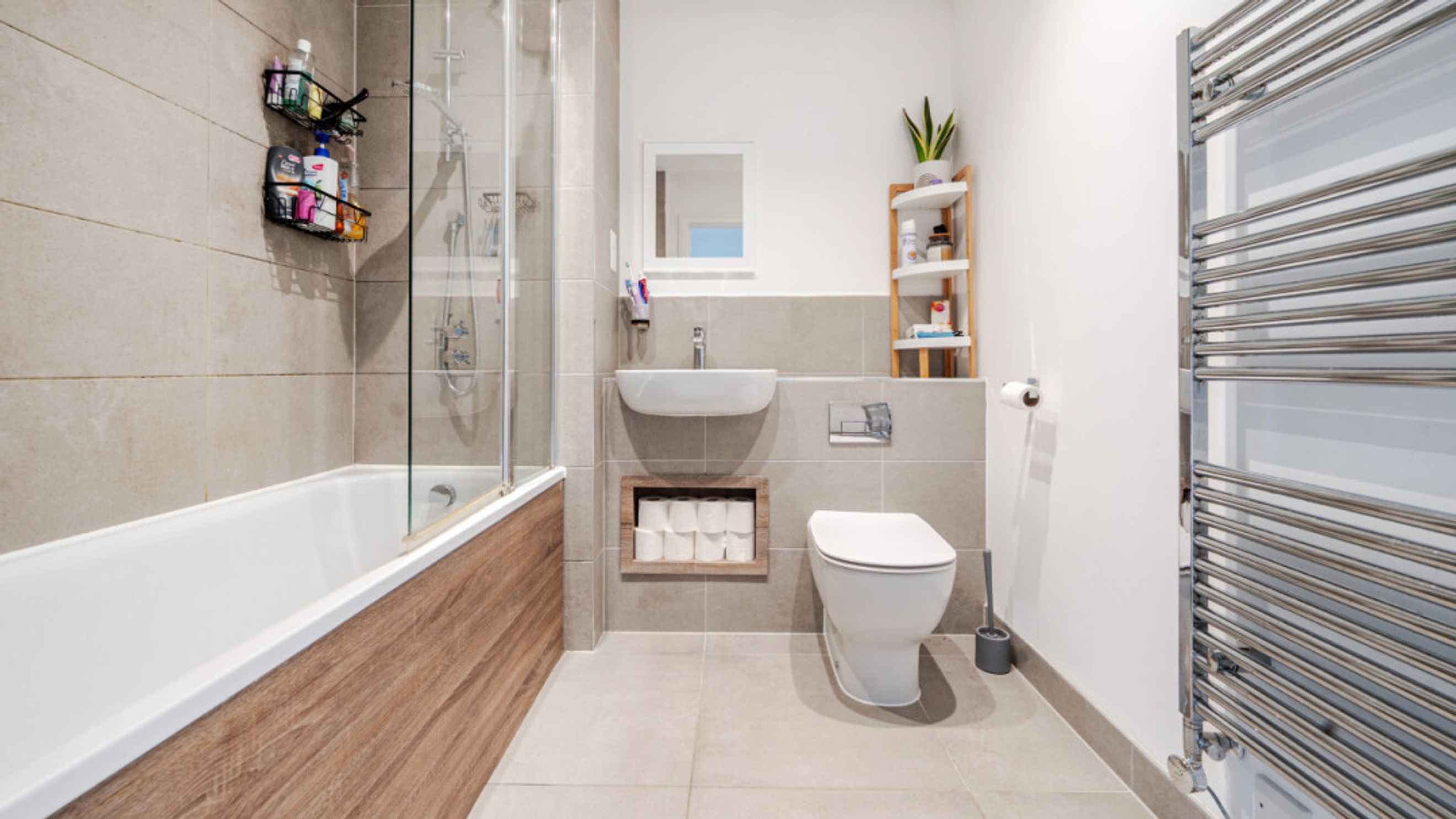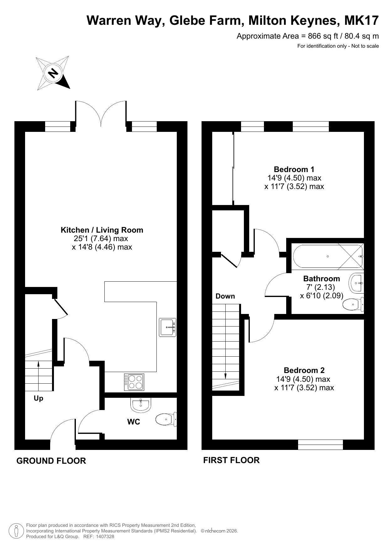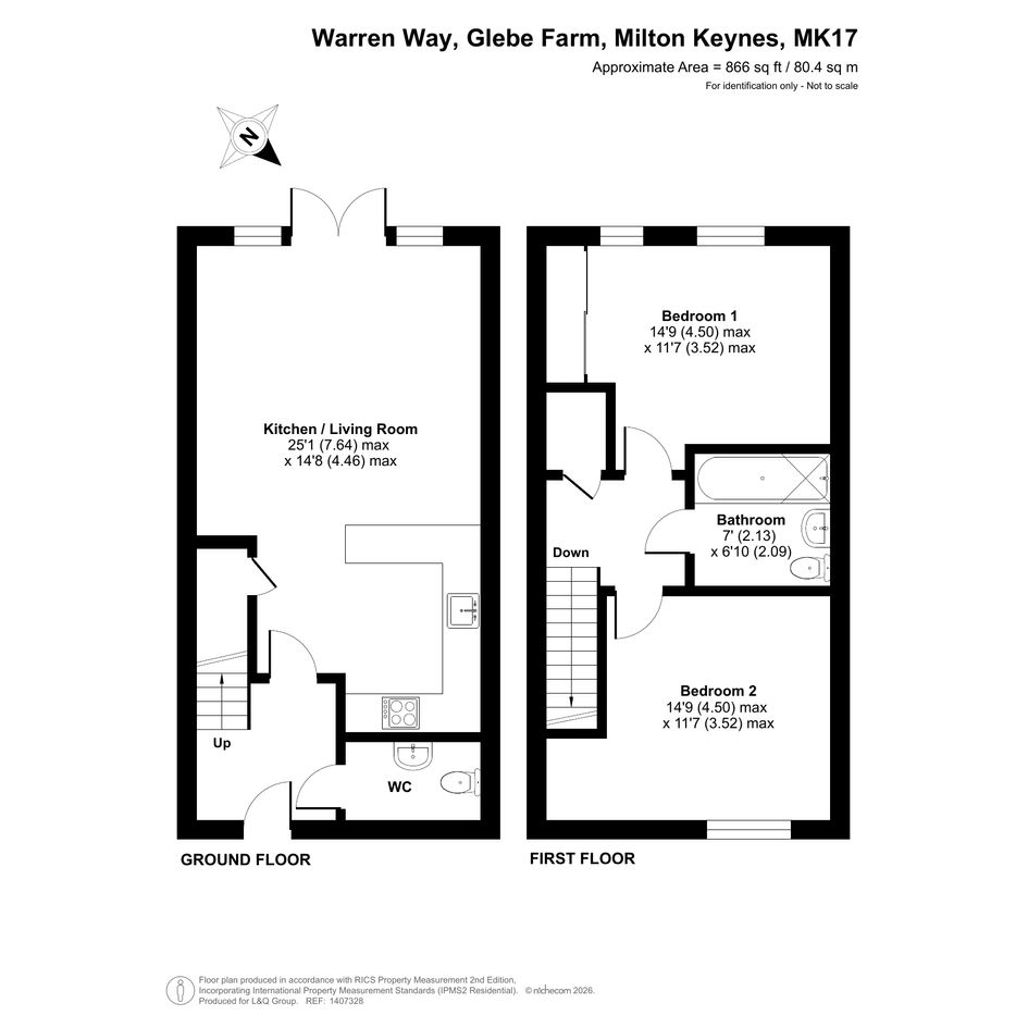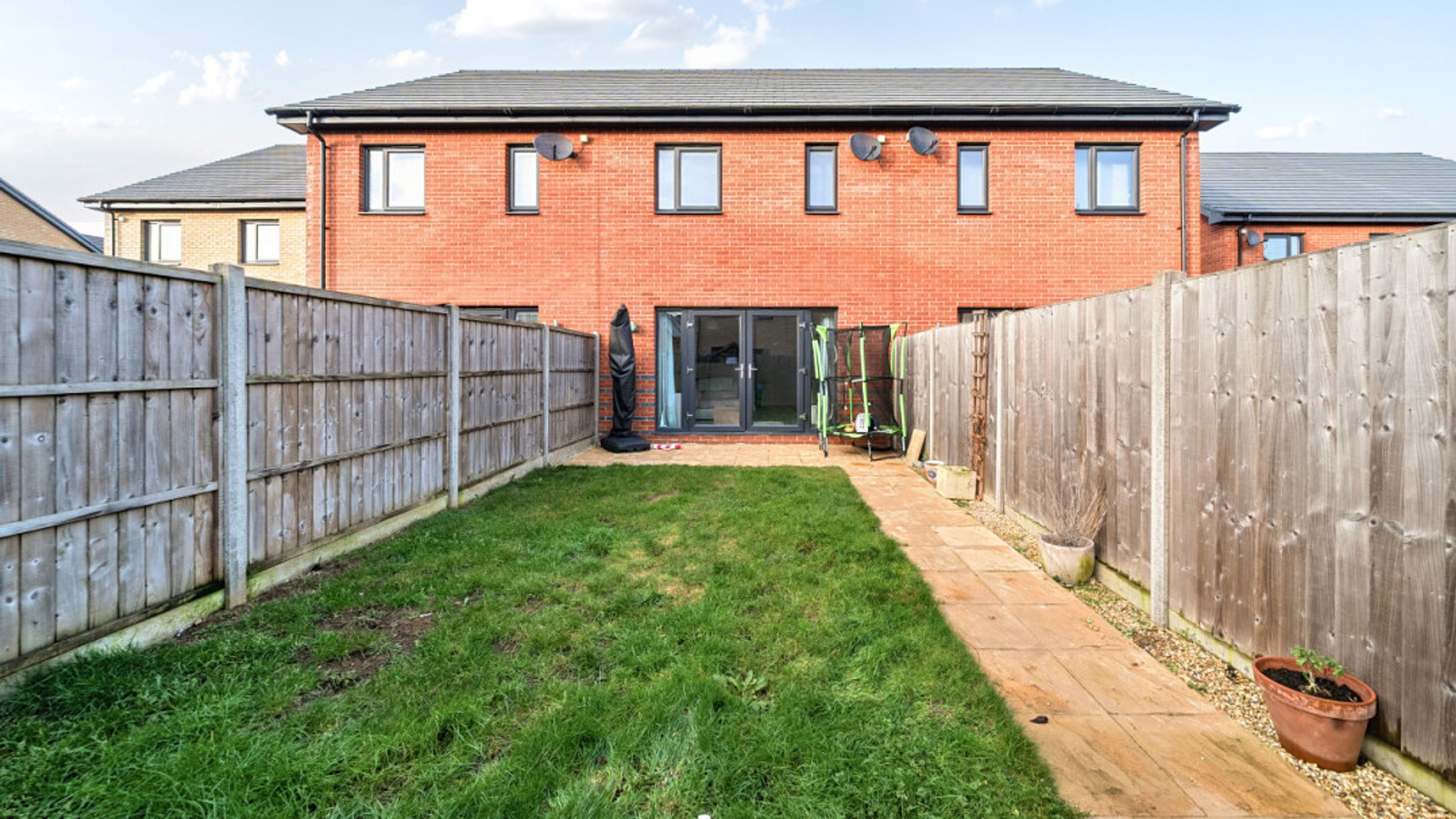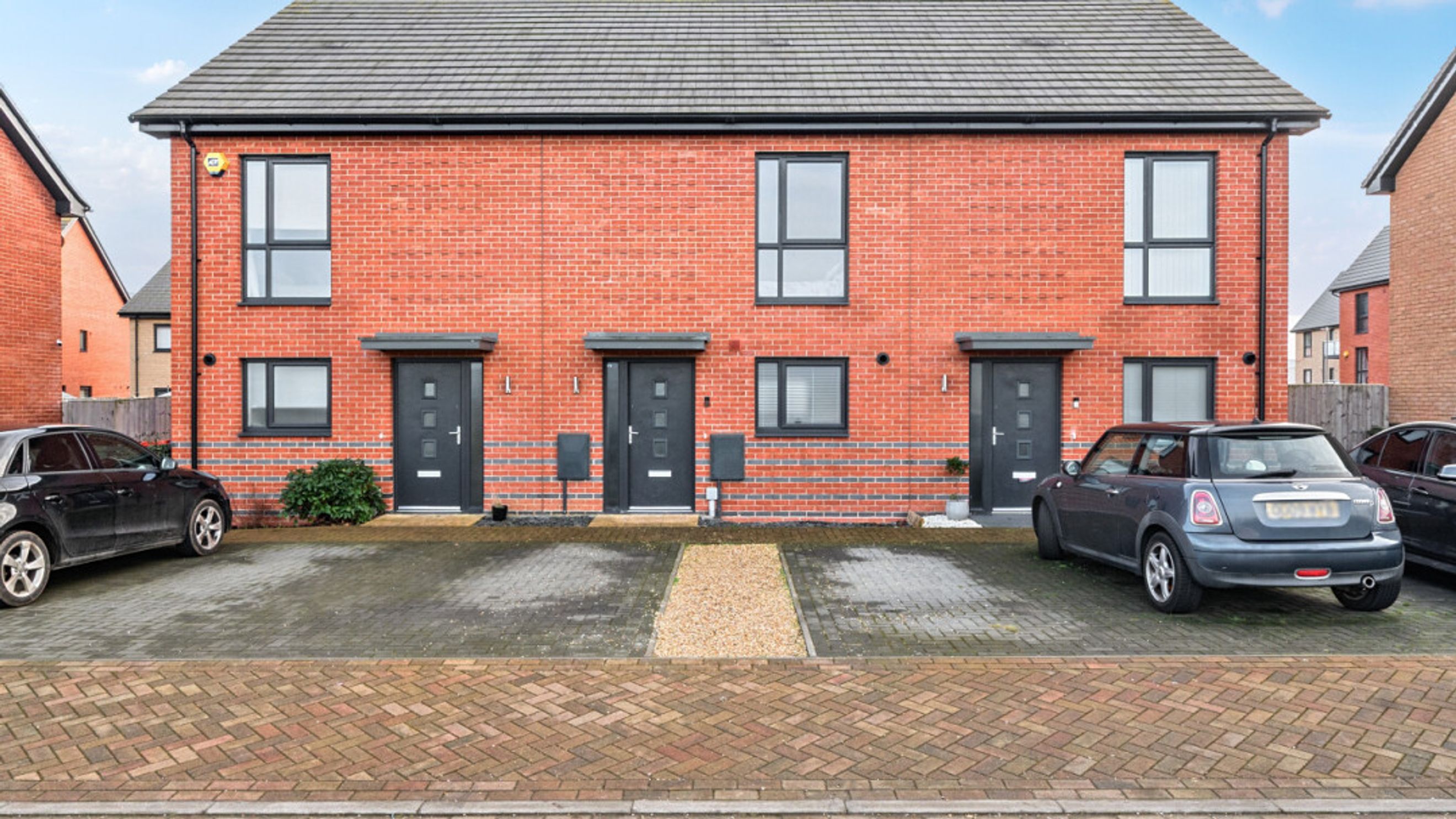 On the ground floor of this bright and spacious home find a stylish open-plan kitchen and living area, flooded with natural light from wide floor-length windows, with french doors leading to back garden. Upstairs there are two spacious double bedrooms, one with built-in storage cupboards. A contemporary bathroom and ground floor cloakroom complete the accommodation.