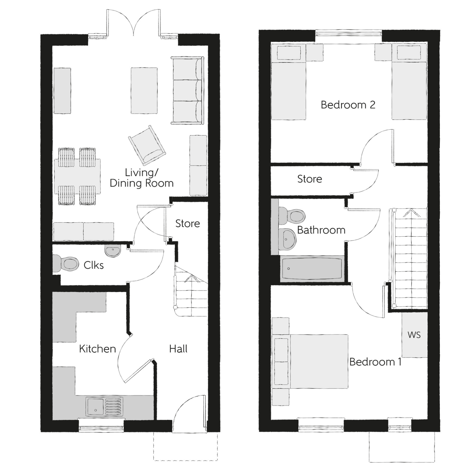 The Baker is a wonderful 2 - bedroom home which features an open-plan living and dining room, French doors to the rear garden, and a family bathroom shared by the double bedrooms.