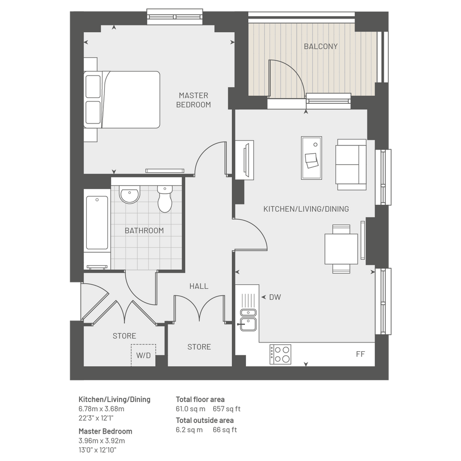 Plot 135, The Clarity,1 bed, 1 Bath and Balcony - 657 Sq Ft