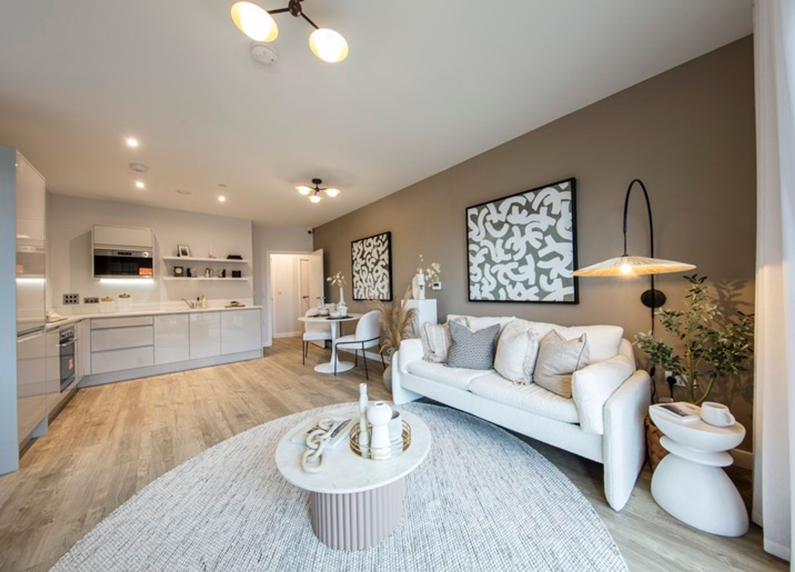 Luxury Interiors: Amtico flooring flows throughout the kitchen and living areas, while the sleeping space is finished with plush grey carpet for added warmth and comfort.