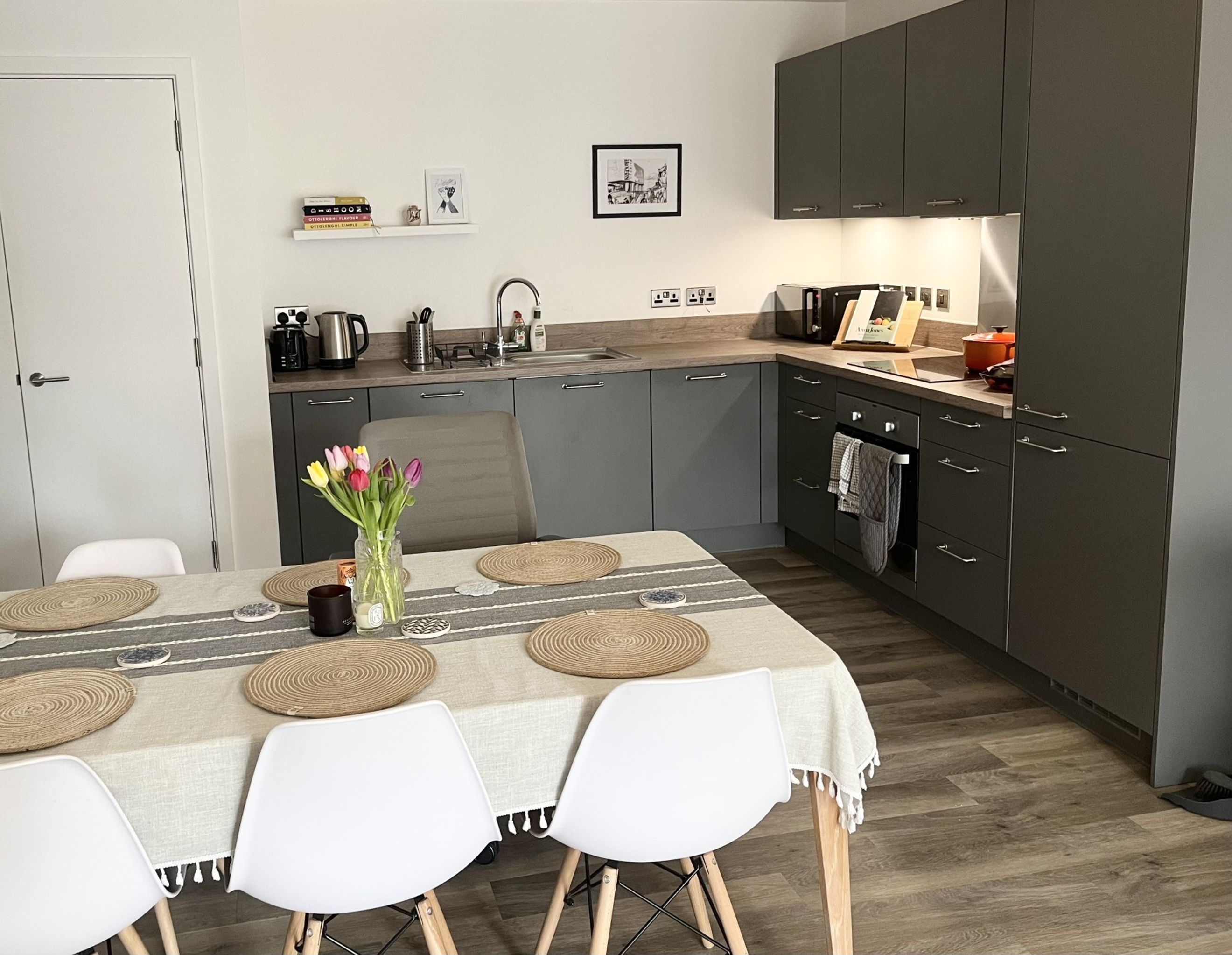 The property consists of a bright airy lounge with dining area, modern kitchen, two double bedrooms, family bathroom, ensuite with walk-in shower, underfloor heating and private balcony.