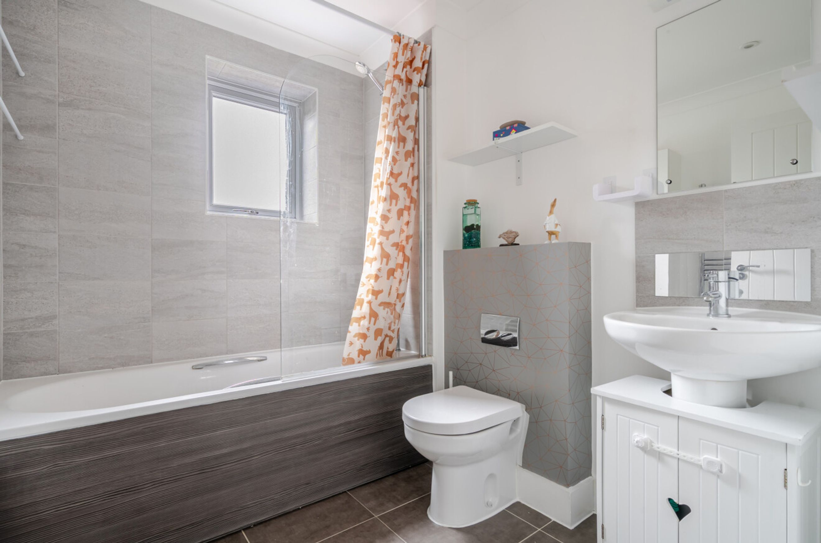 Upstairs, there are two comfortable double bedrooms. The bathroom has a modern, white suite.