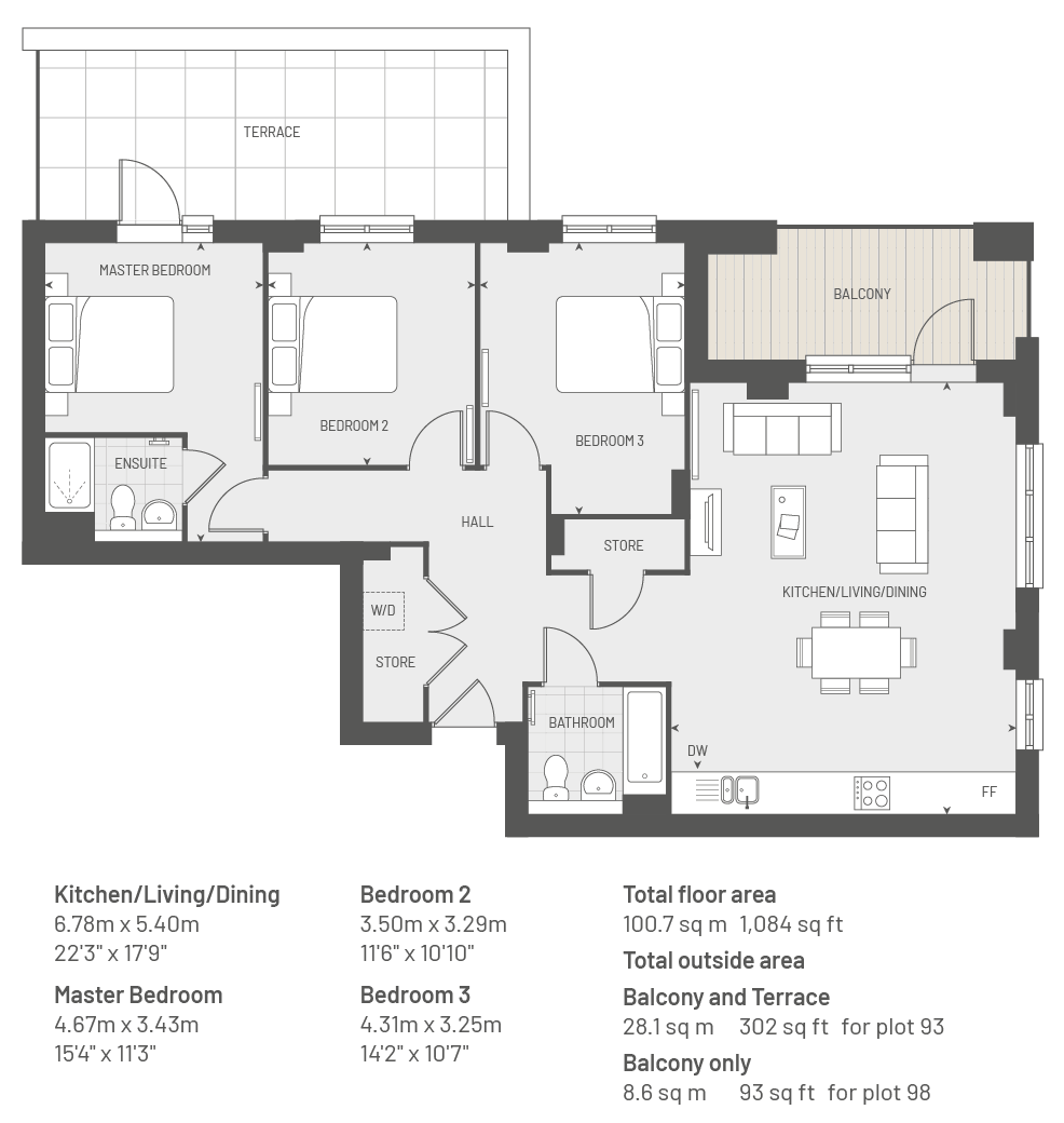 Plot 168, The Fender, 3 bed, 2 Bath and large & balcony - 1084 Sq Ft
