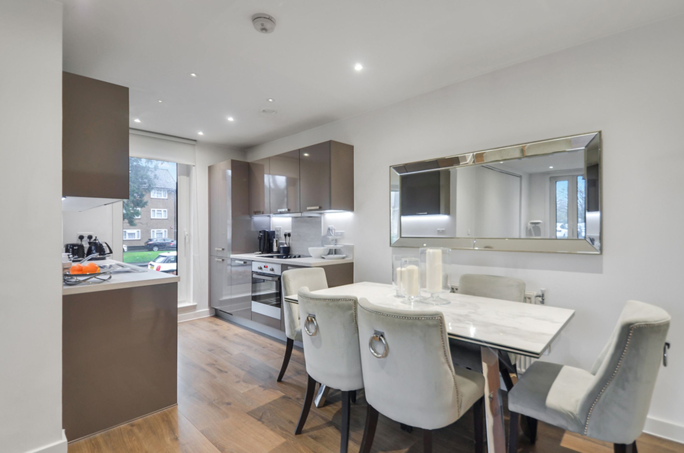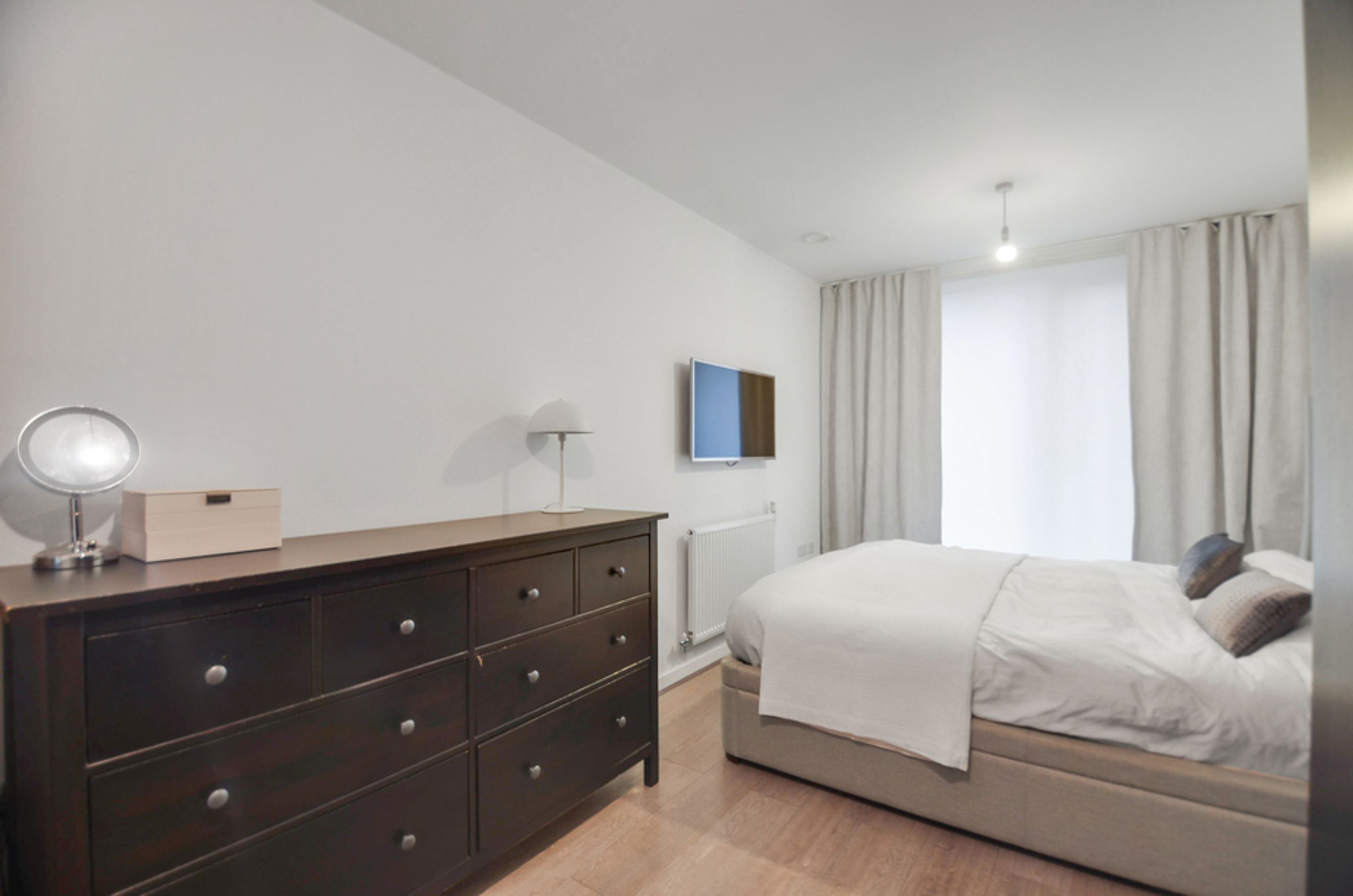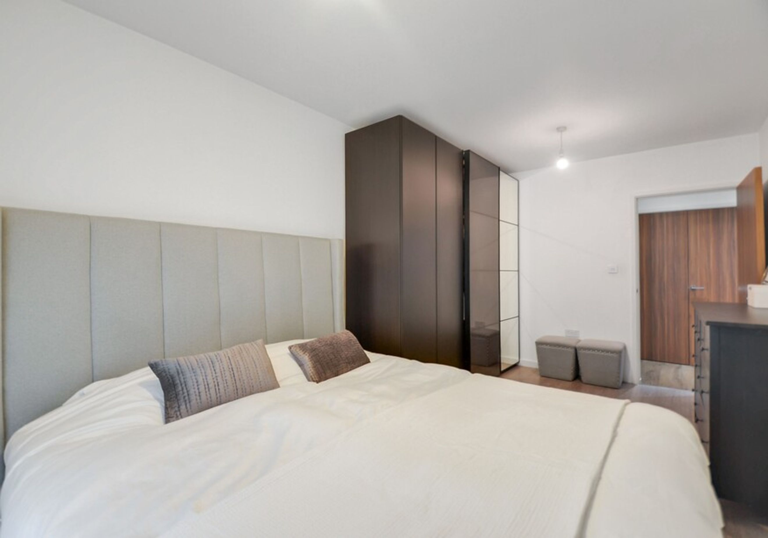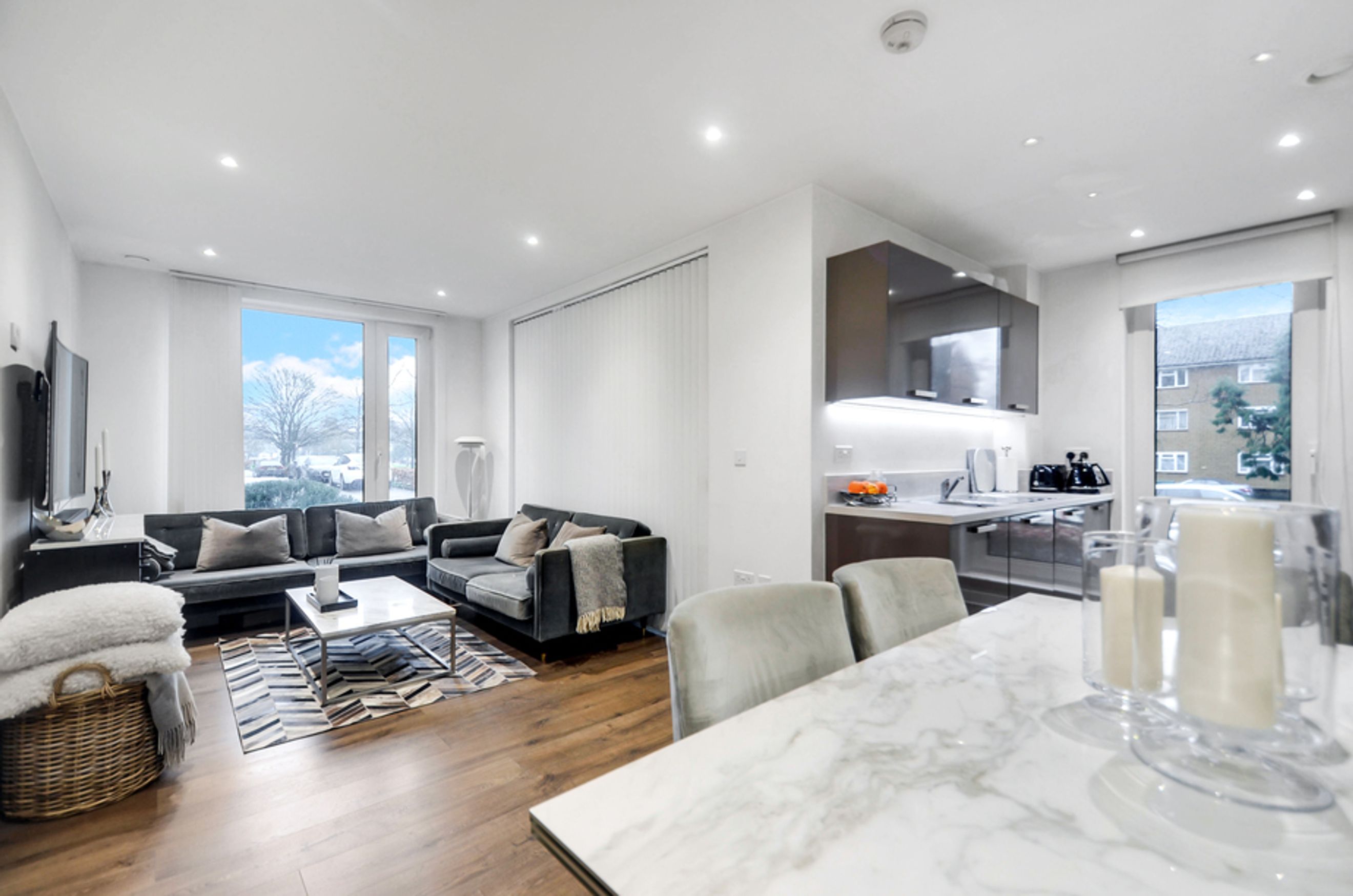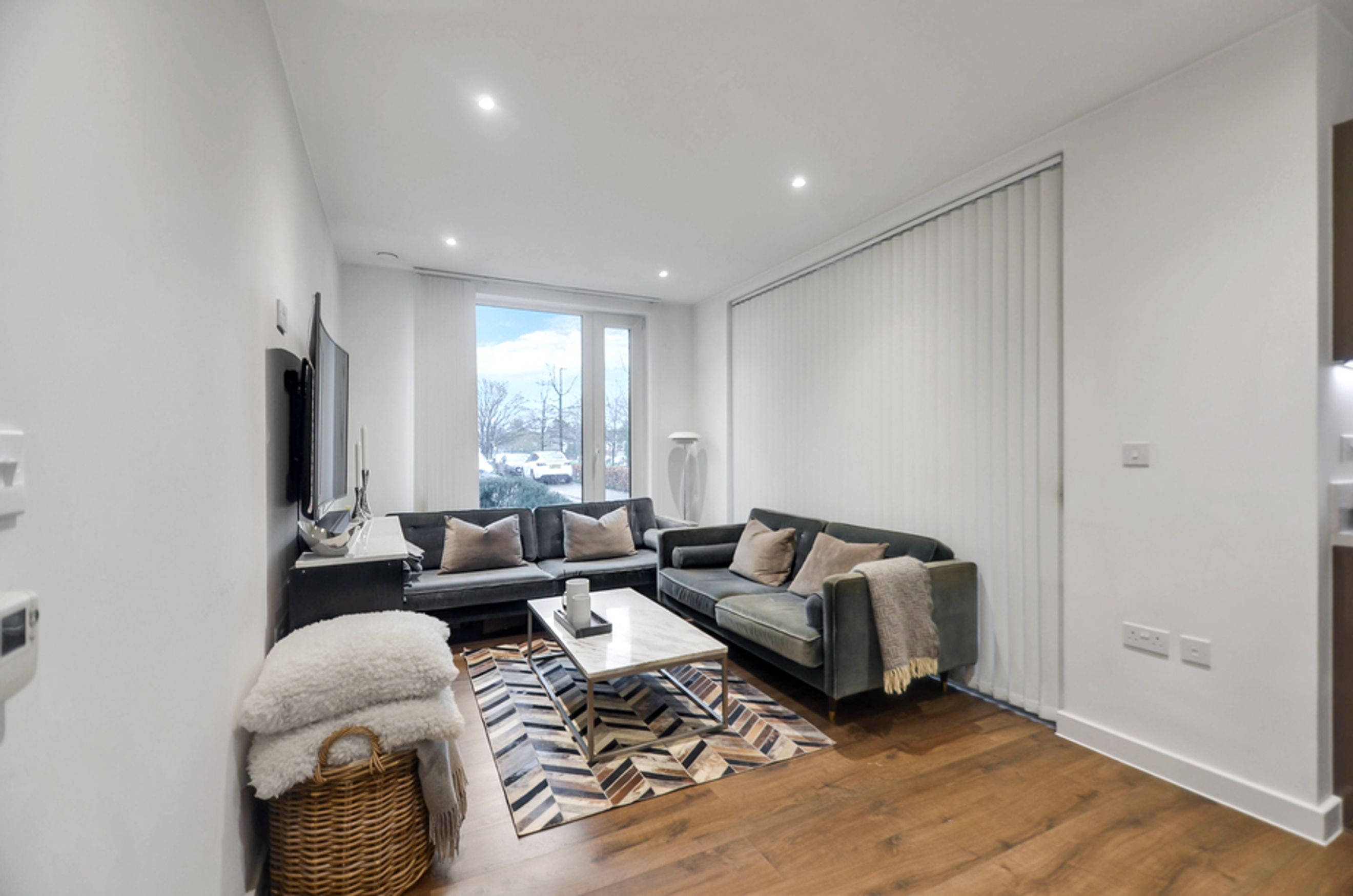 This modern home offers bright and airy open‑plan living, enhanced by floor‑to‑ceiling windows that flood the space with natural light. The kitchen features integrated appliances, while the spacious bedroom provides a calm retreat. The property also benefits from central heating and access to a well‑kept communal garden, creating a blend of comfort and convenience.
