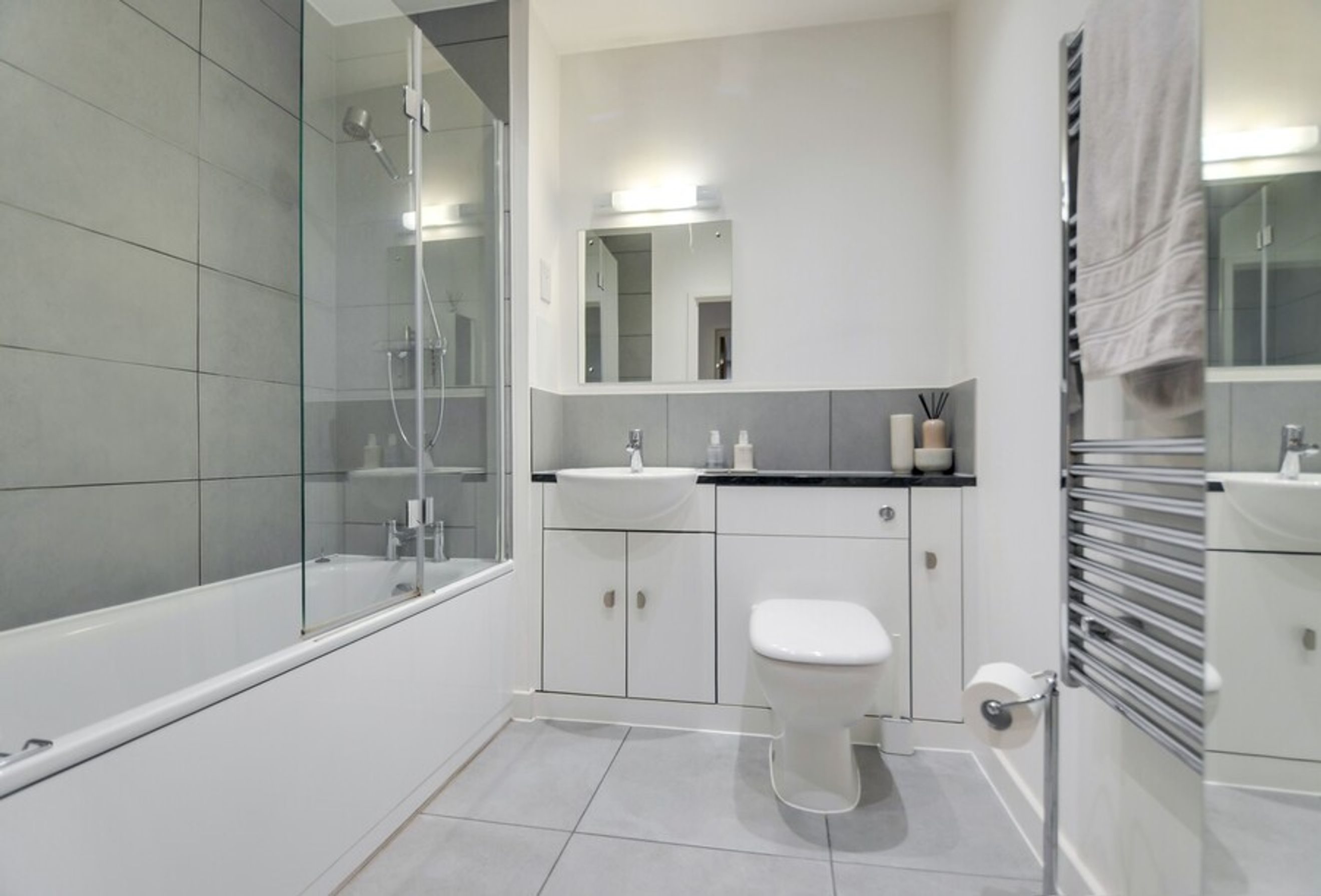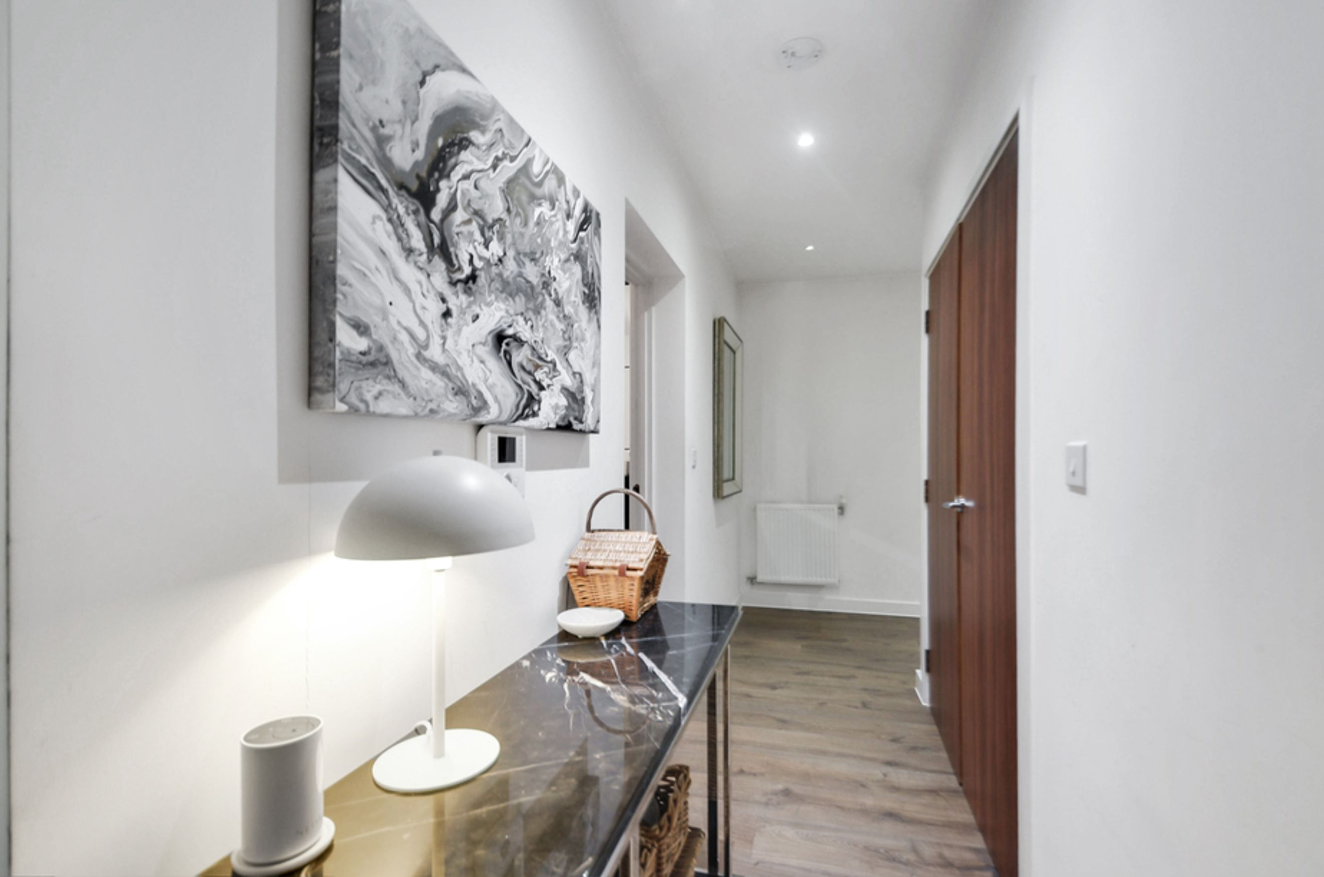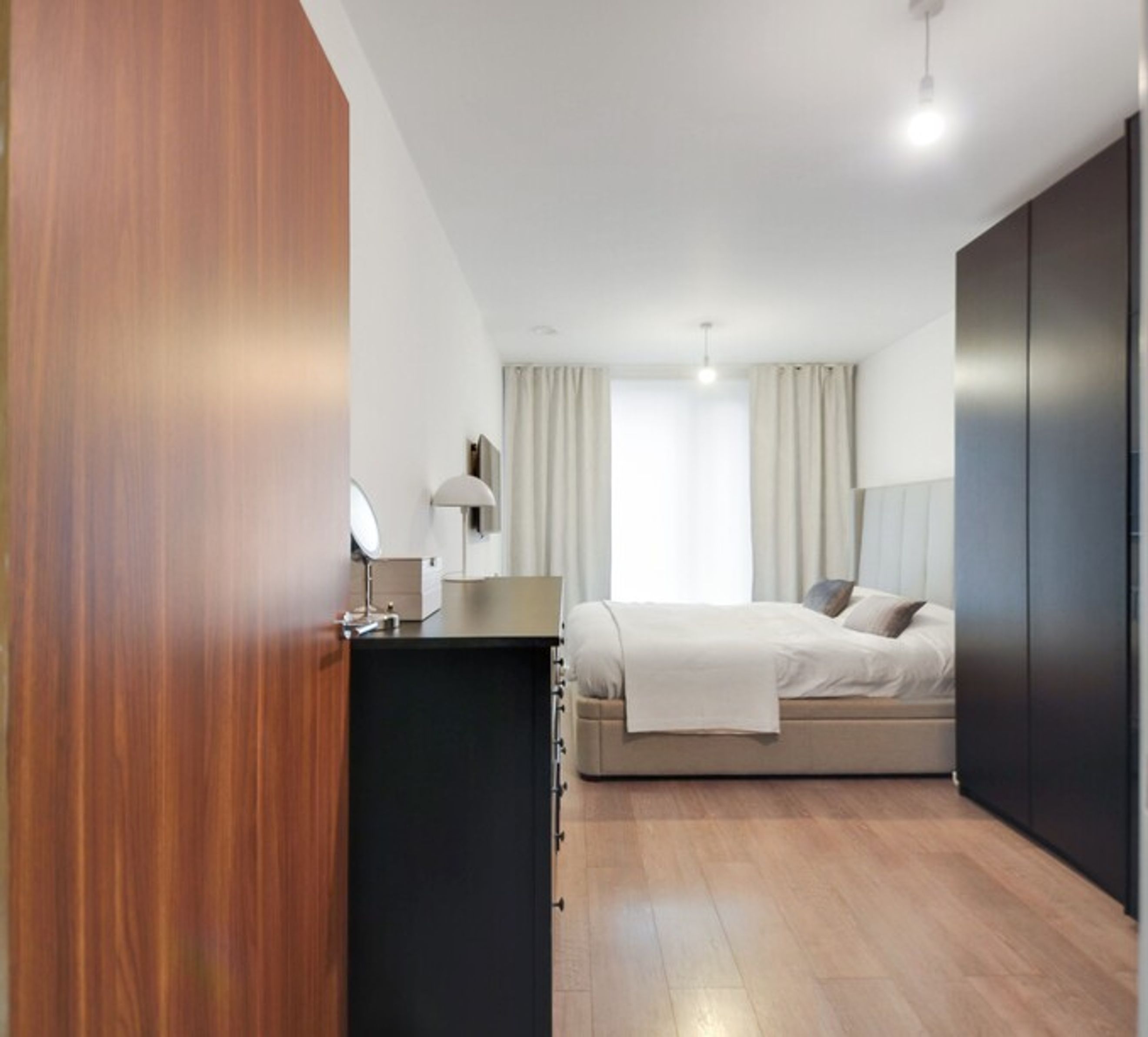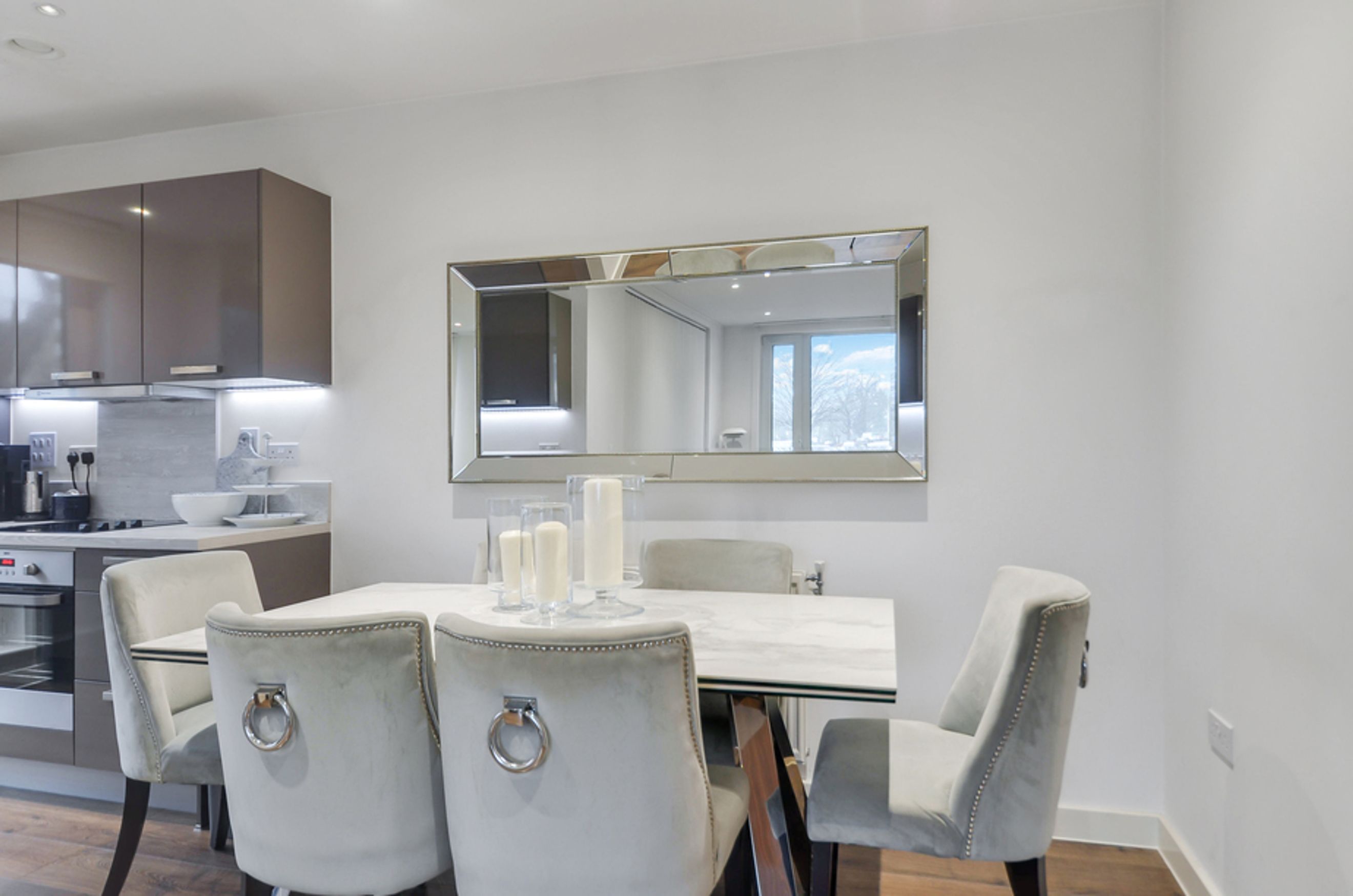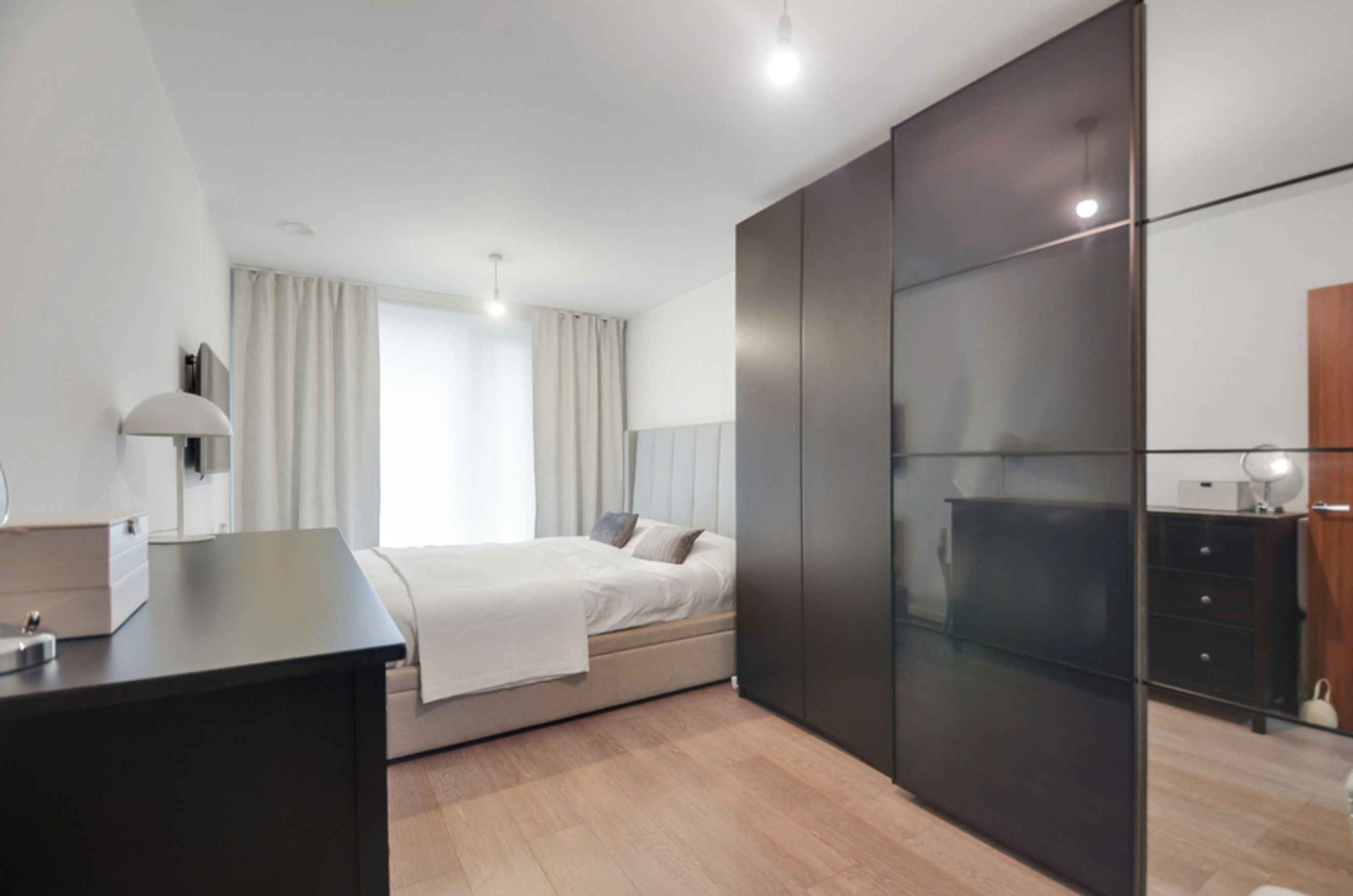 This modern home offers bright and airy open‑plan living, enhanced by floor‑to‑ceiling windows that flood the space with natural light. The kitchen features integrated appliances, while the spacious bedroom provides a calm retreat. The property also benefits from central heating and access to a well‑kept communal garden, creating a blend of comfort and convenience.