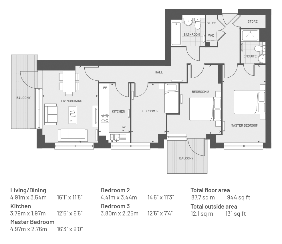 Plot 138, The Larch,3 bed, 2 bath with 2 balconies-944 sq ft