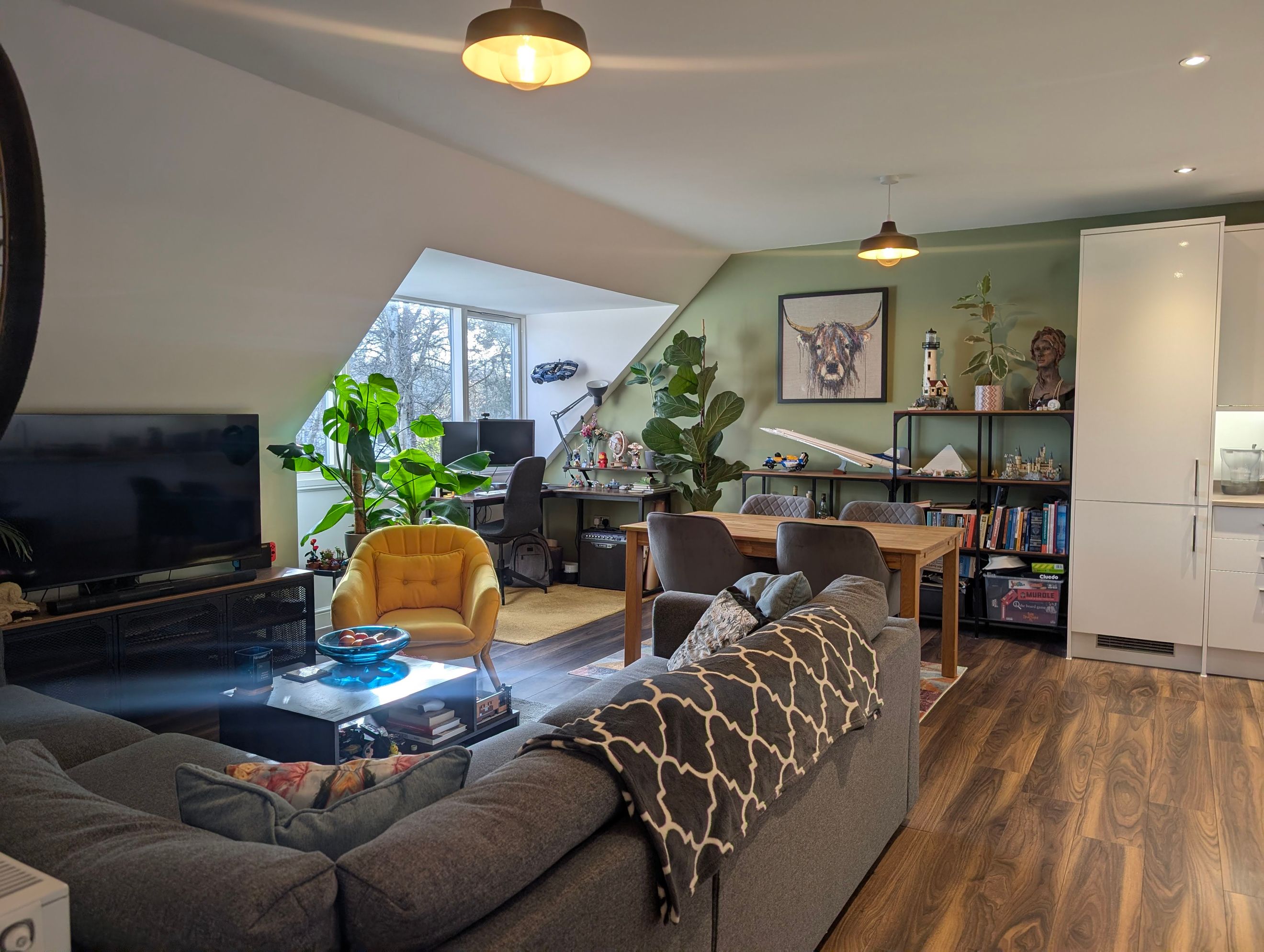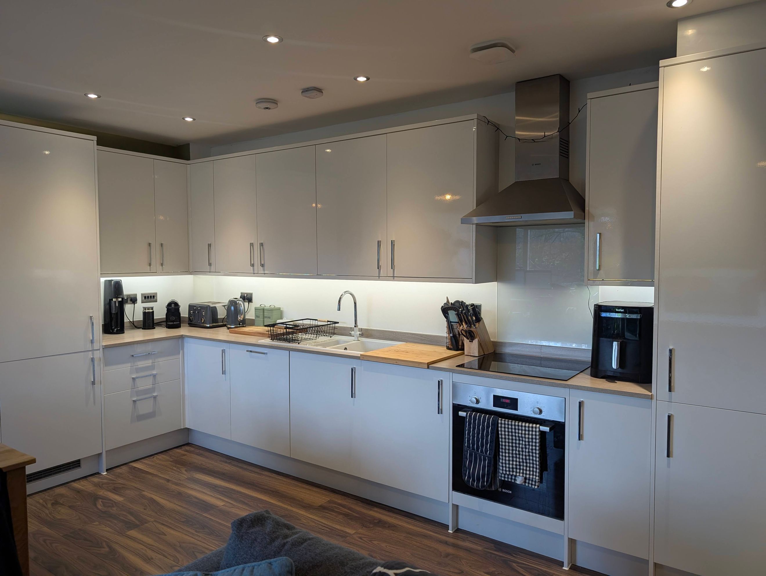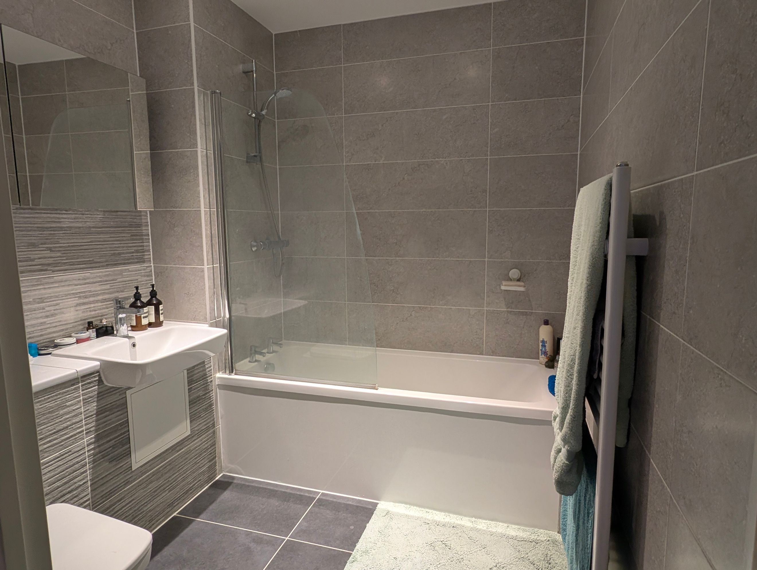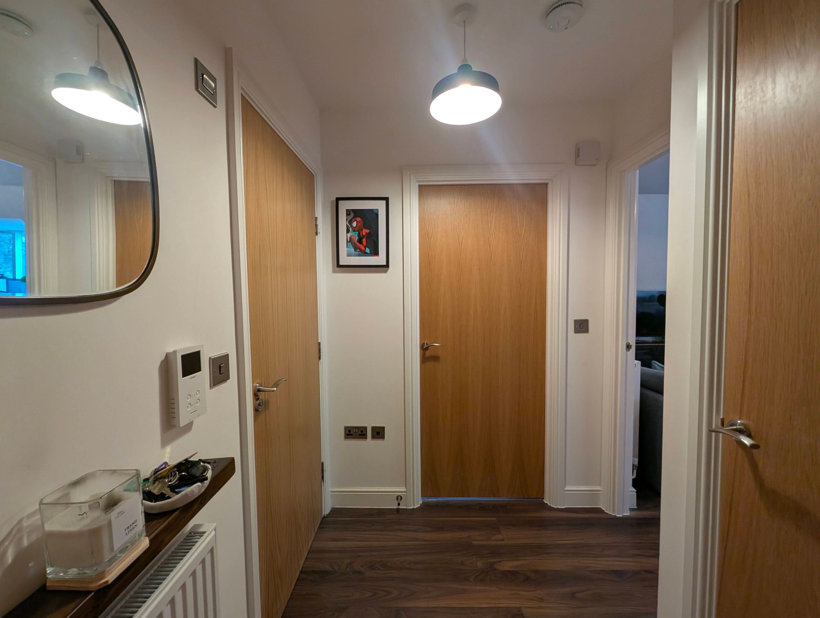 Situated on the second floor, this apartment features a bright and spacious open-plan living area — perfect for relaxing or entertaining guests. The modern kitchen comes fully fitted with high-quality units and integrated appliances, while the sleek bathroom boasts a contemporary white suite with a timeless finish. One generously sized bedroom offering a peaceful retreat after a long day.