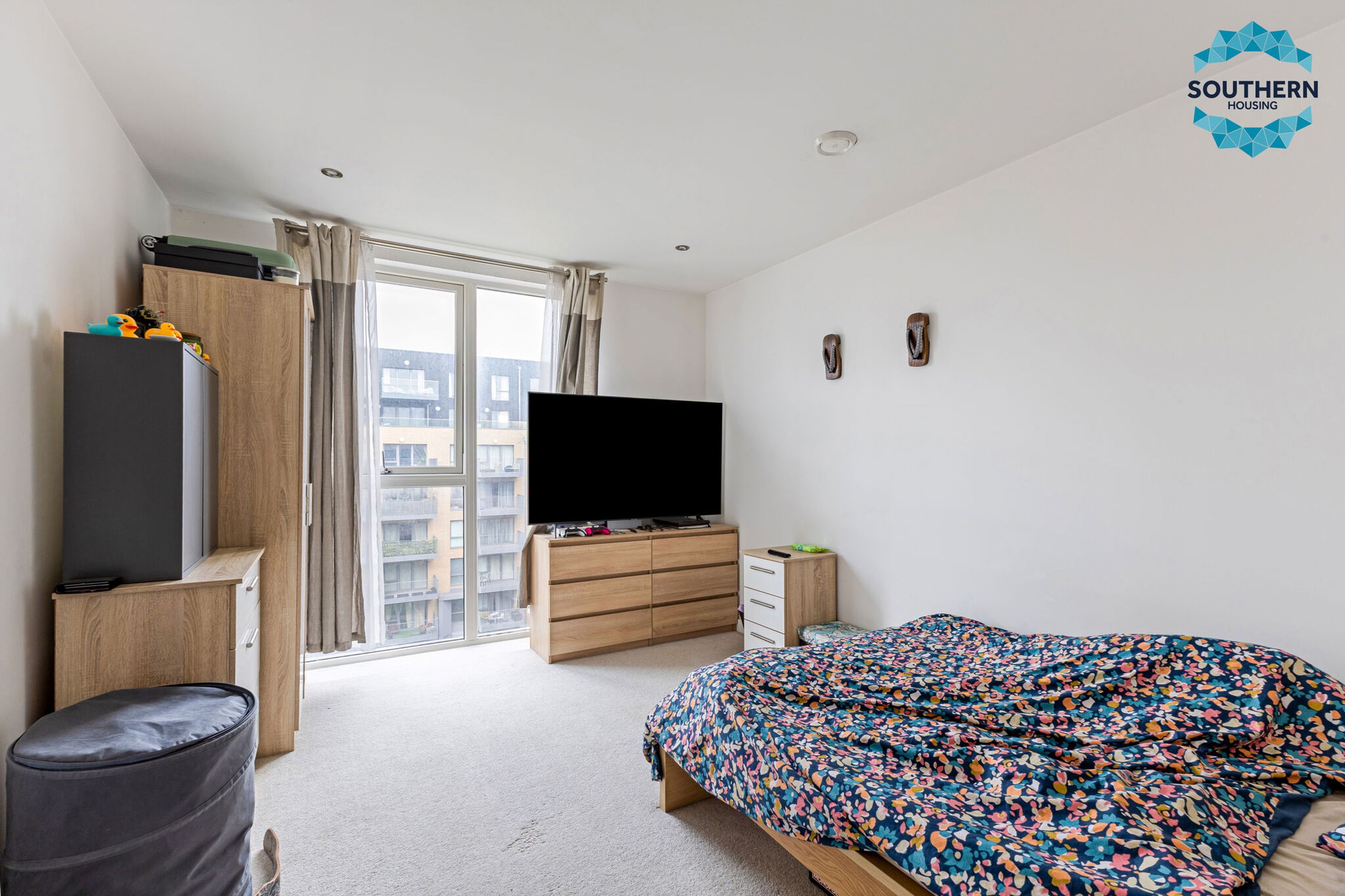 The master bedroom is generously sized, with plenty of room for all your furniture needs and a large window that enhances the sense of space and light. You'll also benefit from your own en-suite with a walk-in shower, as well as an additional private balcony with exclusive access from the bedroom.