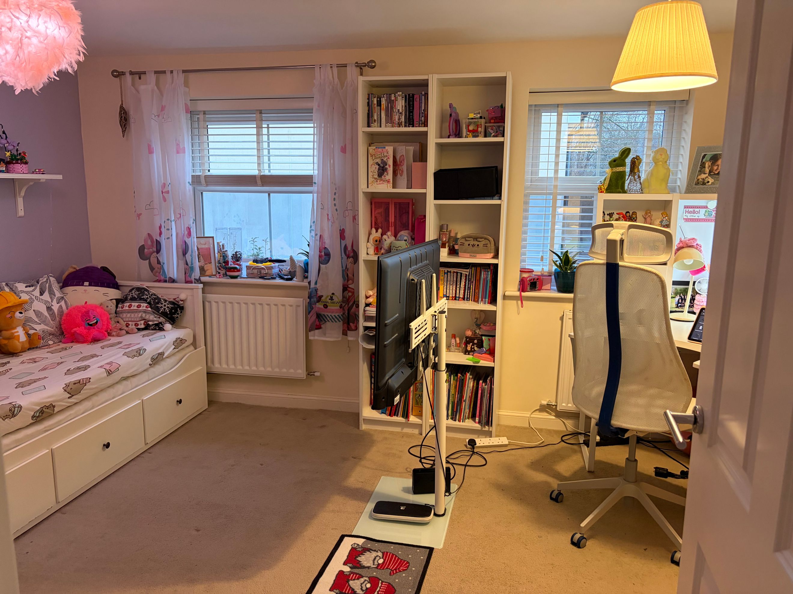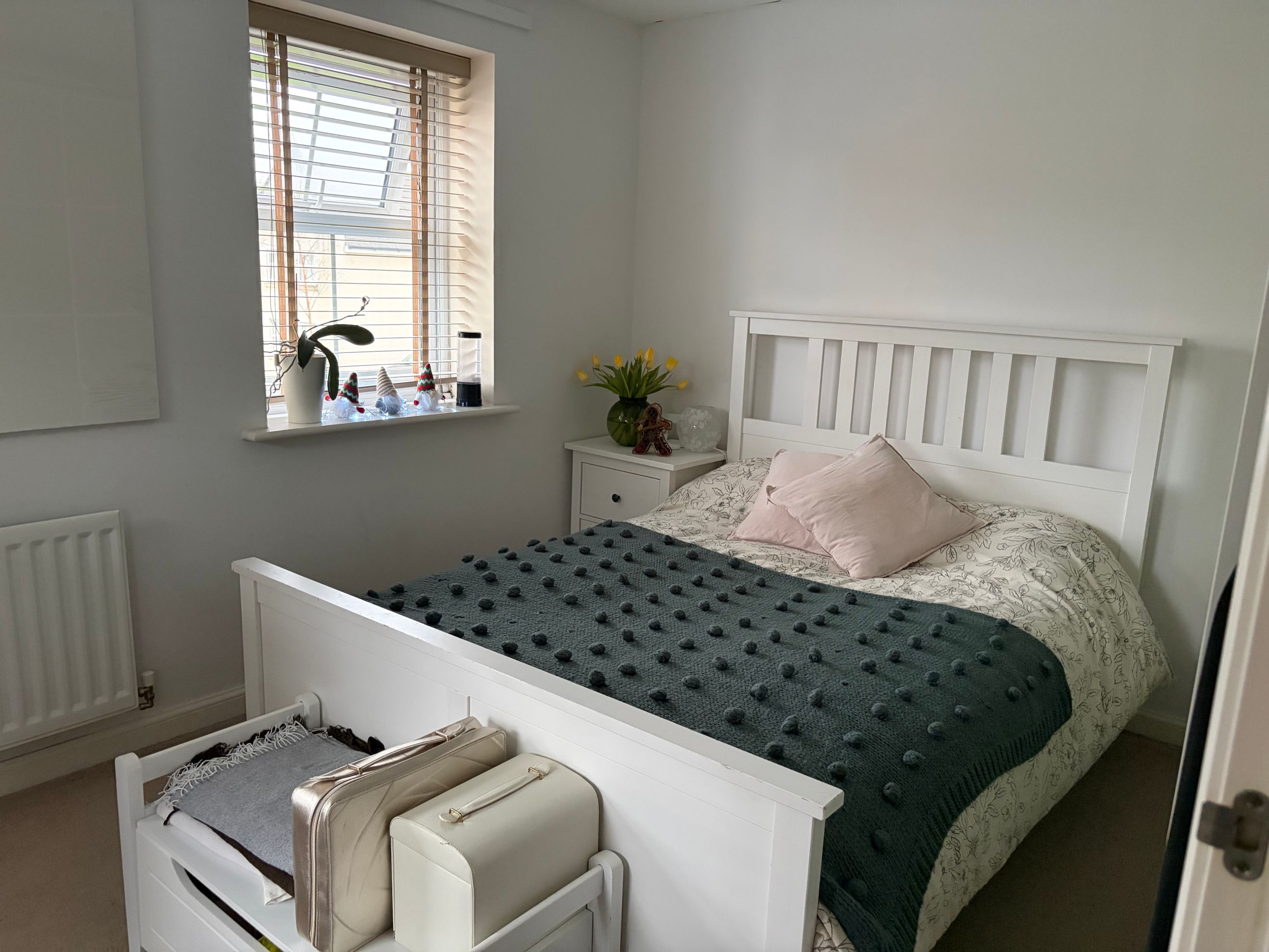 Terraced house offers two double bedrooms. Each bedroom has three windows that let in plenty of light. Between the bedrooms is a family bathroom with a bath and shower, and a toilet.