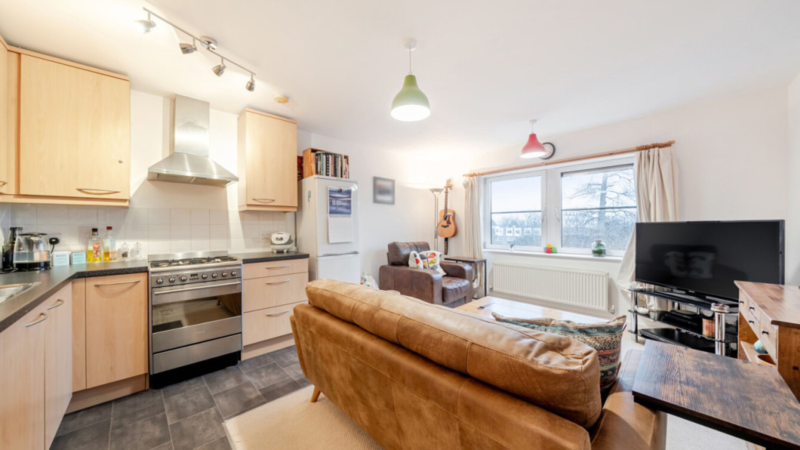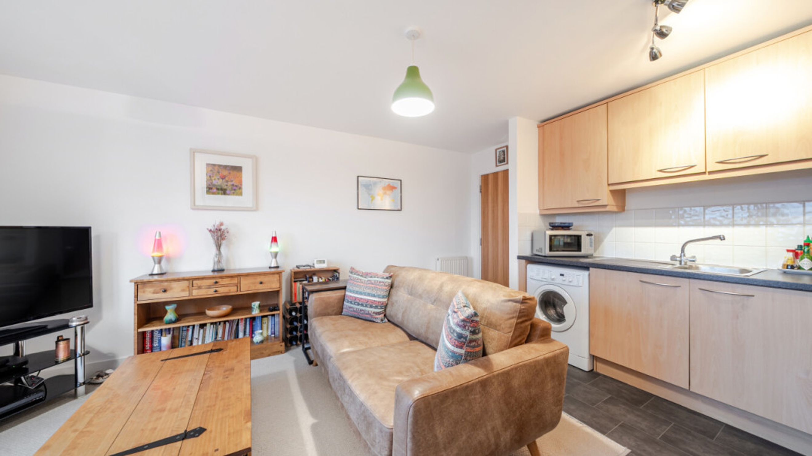 This bright and spacious north east facing one bedroom apartment has an open-plan kitchen and living area. The kitchen is fitted with beech wall and base units and a granite effect worktop with spaces for all your appliances. There is a spacious main double bedroom with built in storage and the modern bathroom comes complete with a white three-piece suite with a shower over bath.