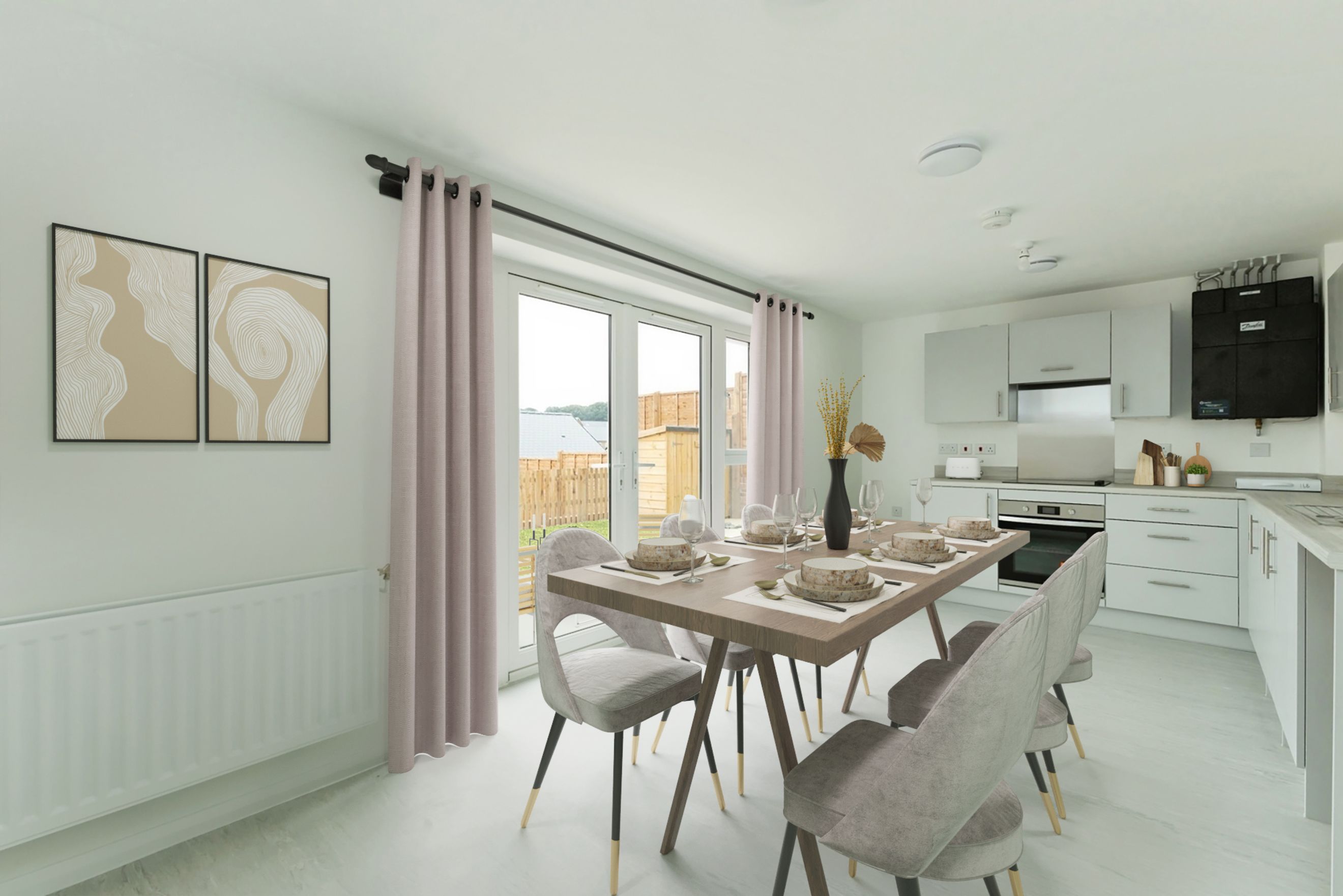 At the heart of the home, the impressive kitchen-diner boasts modern fittings and patio doors that open out into the secluded rear garden, seamlessly blending indoor and outdoor living.