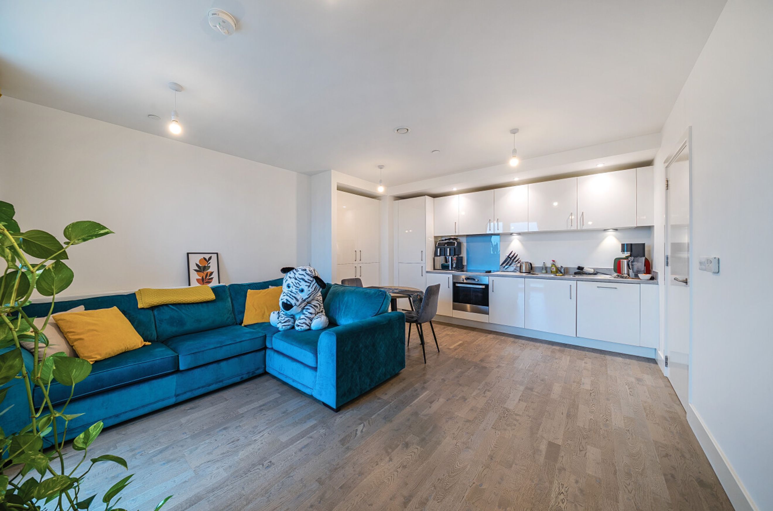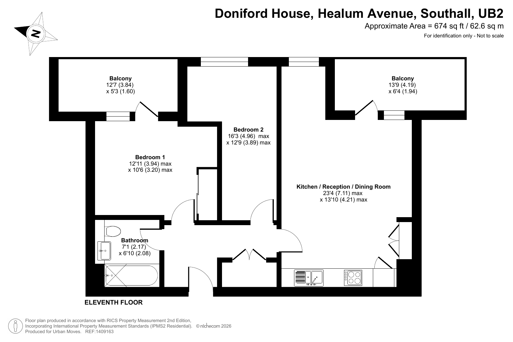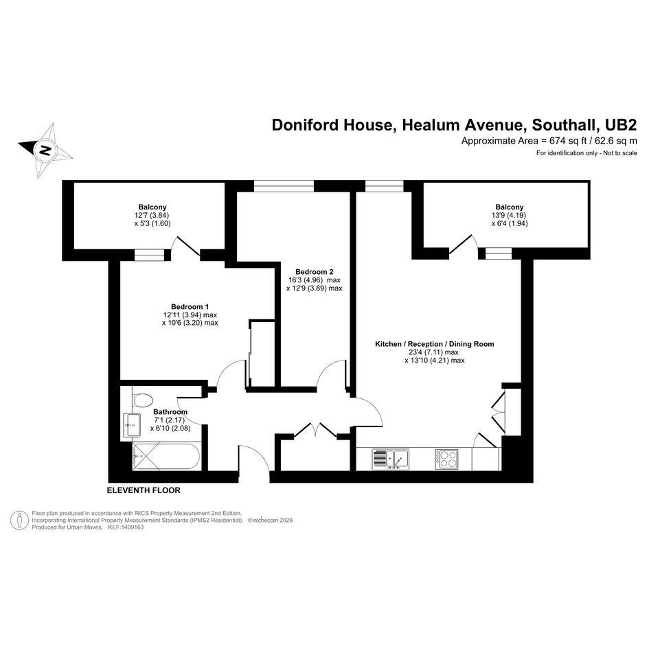 This well-presented property is on the eleventh floor of a recently-constructed development just a short walk from Southall Station (for Elizabeth Line services). The apartment has a twenty-three-foot reception room with attractive flooring and a door that leads out onto a balcony. The open-plan kitchen area features sleek, white units and integrated appliances. There is an additional balcony off the main bedroom and this room includes a fitted wardrobe. The second bedroom provides useful extra space, the bathroom is smart and modern and the entrance hall has a large, built-in storage/utility cupboard. Demanding insulation standards, high performance glazing and a communal heating/hot water system make for a very good energy-efficiency rating. Residents of Doniford House can make use of a roof terrace and the communal cycle store. Ofsted list four primary schools within a half-mile radius, all rated 'Good' and Villiers High School is rated 'Outstanding'.