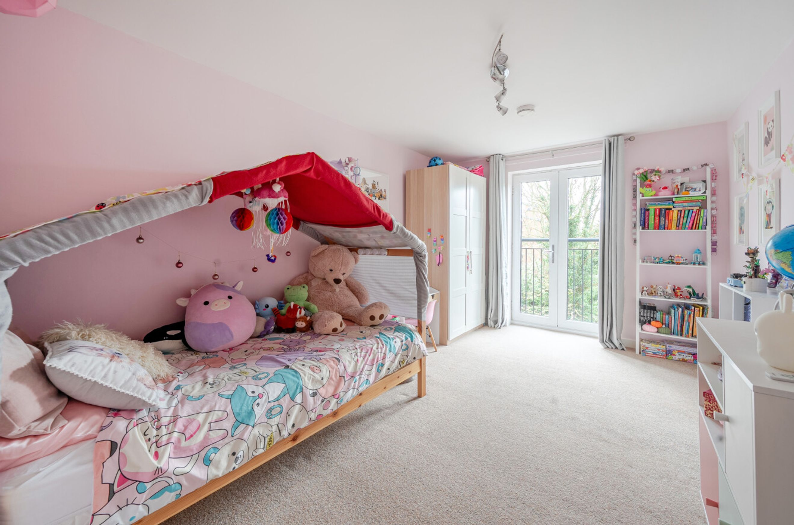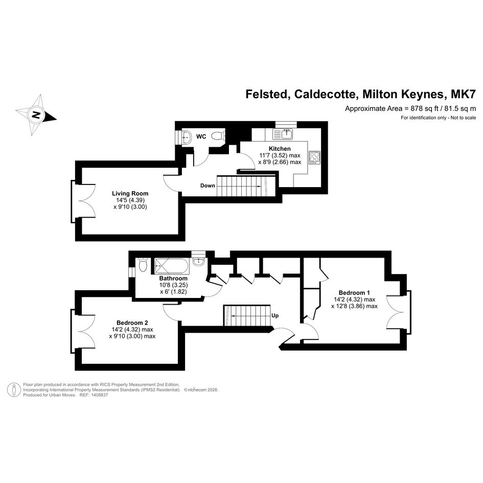 A rare chance to buy a shared-ownership duplex apartment. This smartly-presented property is arranged over the second and third (top) floors of a modern development which is located in an attractive area surrounded by tree-lined streets and close to picturesque Caldecotte Lake. At entrance level is a spacious hallway with a trio of built-in storage/utility cupboards. There is a large main bedroom with fitted wardrobes plus a good-sized second double bedroom and a bathroom with windows on two sides. Upstairs is the kitchen and a south/south-east-facing reception room. The reception and both bedrooms feature Juliette balconies. Well insulated walls and roof, double glazing and gas central heating make for a good energy-efficiency rating. The property comes with use of an allocated parking space and is also just a short walk from Bow Brickhill Station for services between Bedford and Bletchley with numerous onwards connections including trains to Milton Keynes Central and London Euston available from there. Ofsted list three primary schools within a mile radius, all rated 'Good'.