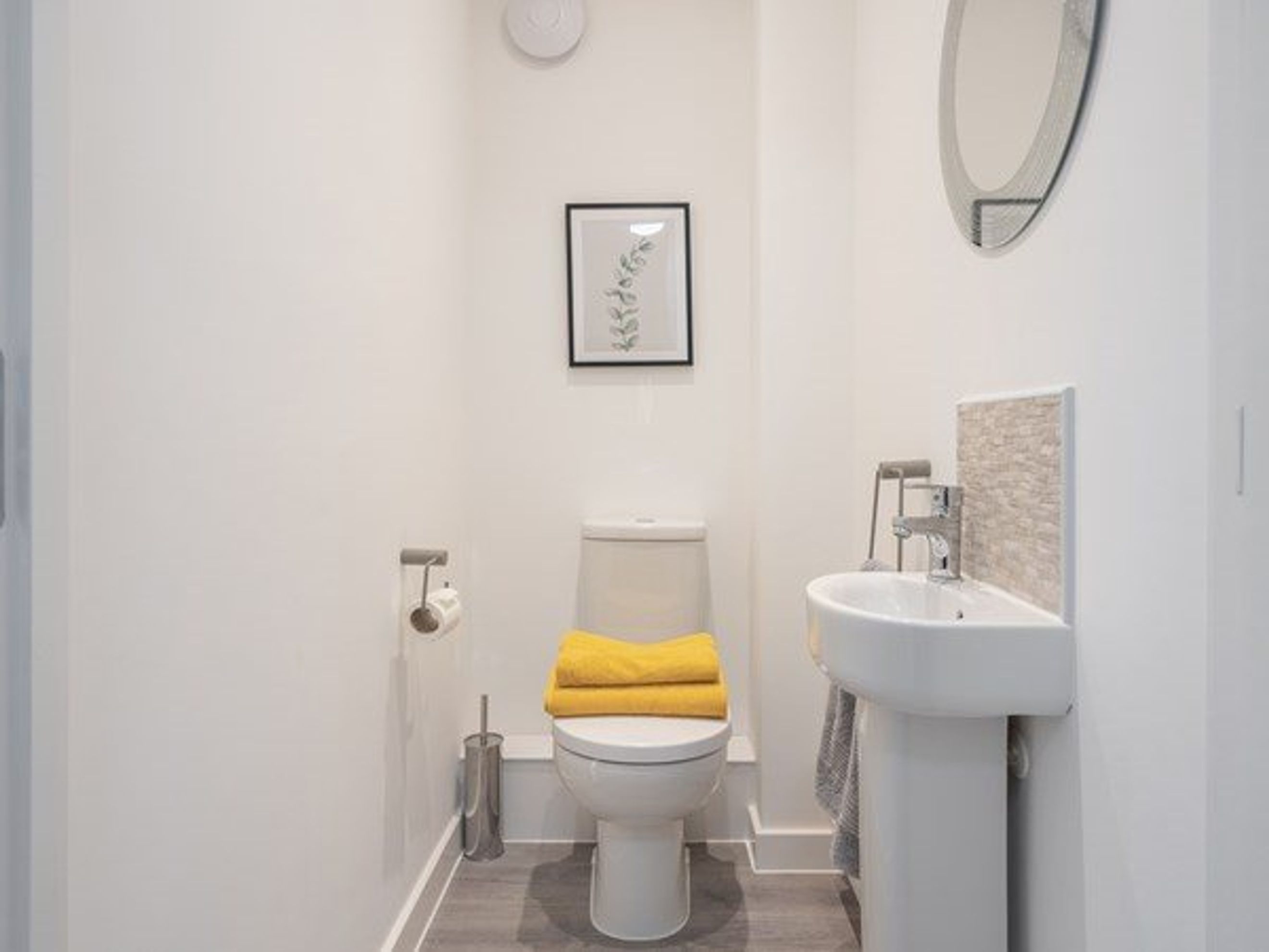 Upstairs, three well-proportioned bedrooms are accessed from the central landing. Bedroom 1, positioned at the front, benefits from its own en-suite shower room along with integrated storage. Bedrooms 2 and 3 sit to the rear, each comfortably sized. A contemporary family bathroom and additional two additional cupboards on the landing ensure the convenience of everyday essentials.
