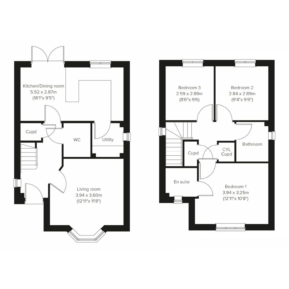 This three-bedroom home offers spacious and practical living throughout. The hallway leads into a generous living room at the front of the property, featuring a bay window that enhances the natural light. To the rear, the kitchen and dining room spans the full width of the home, complete with French doors opening onto the garden for a seamless indoor–outdoor flow. A handy utility room sits just off the kitchen, while a downstairs WC and a well-placed storage cupboard complete the ground floor layout.