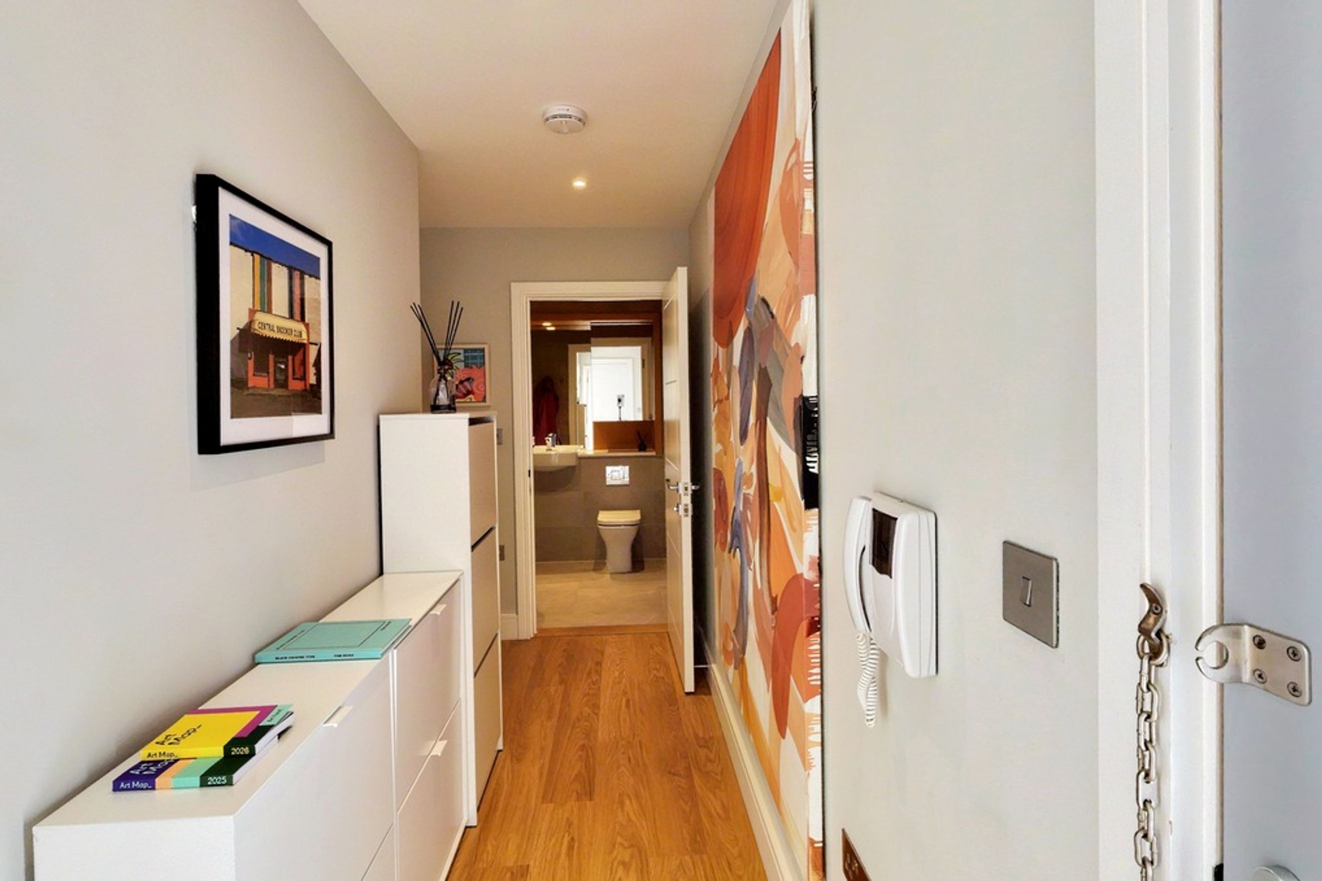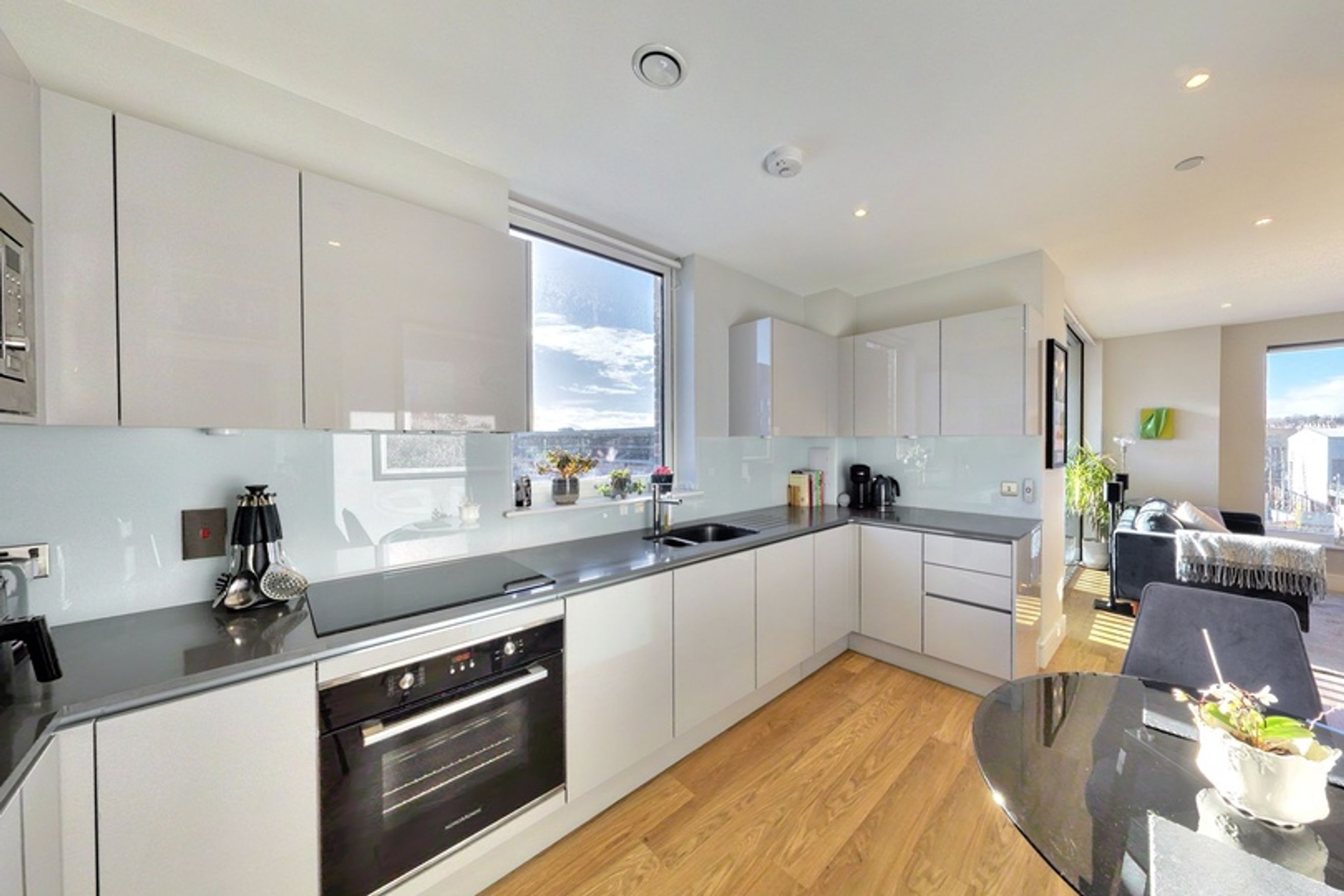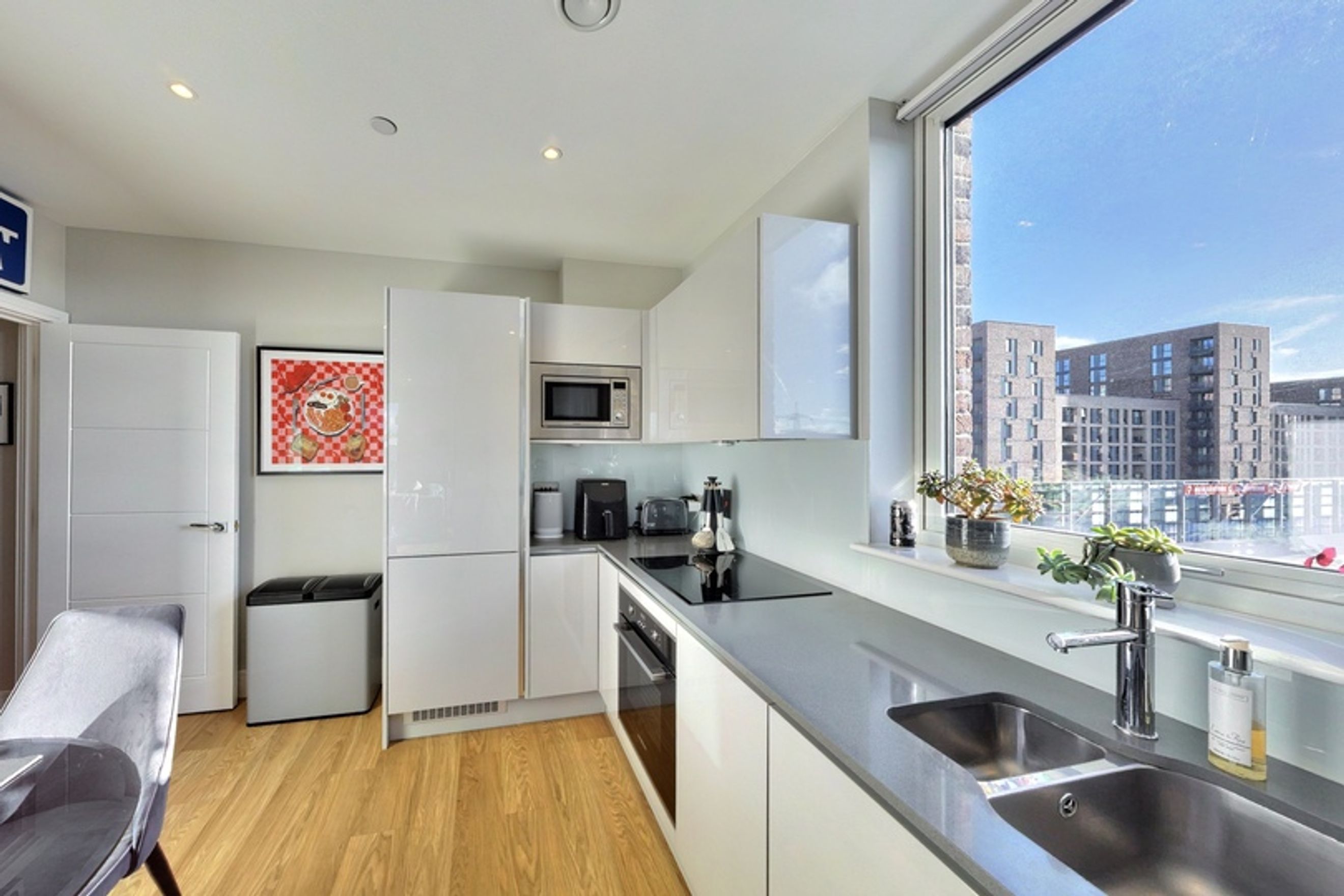 This well-presented home offers open‑plan living, dual‑aspect floor‑to‑ceiling windows and a contemporary kitchen with integrated appliances. The bedroom includes a fitted wardrobe, and you’ll also enjoy central heating, underground bike storage, two communal gardens and a peaceful balcony overlooking the AFC Wimbledon pitch, a unique and surprisingly tranquil outlook. A concierge service adds extra convenience.
