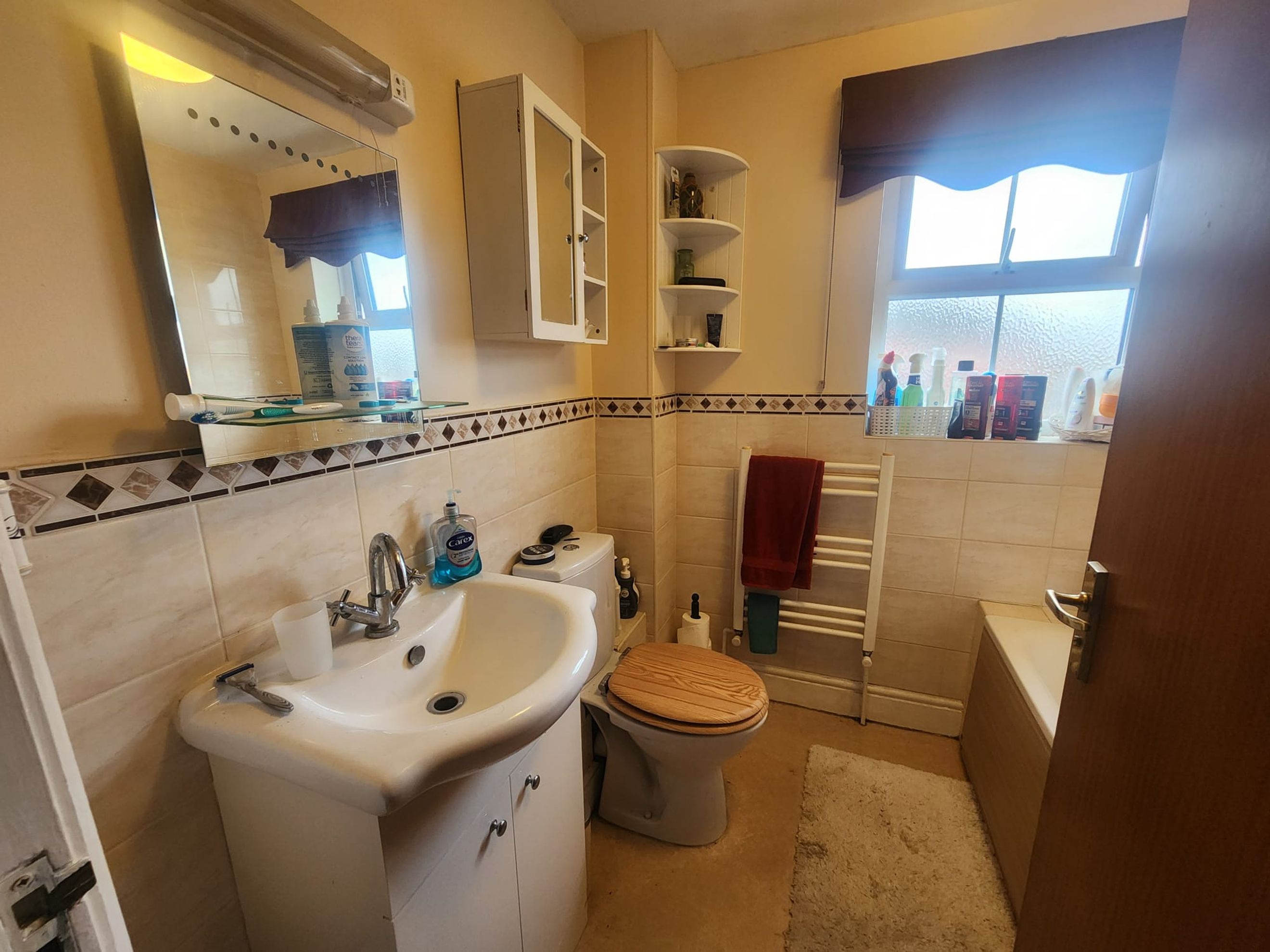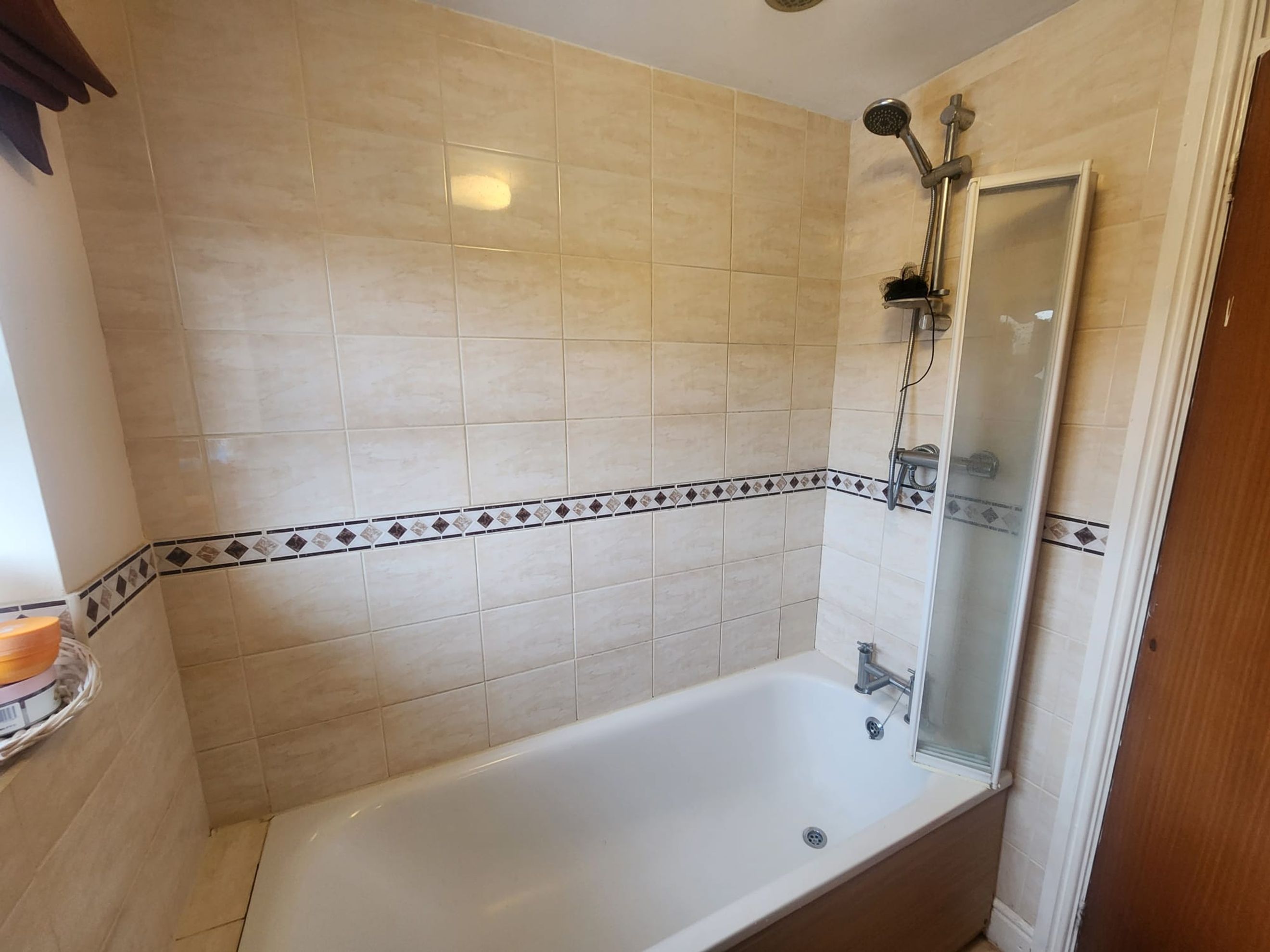 Family bathroom with shower over bath