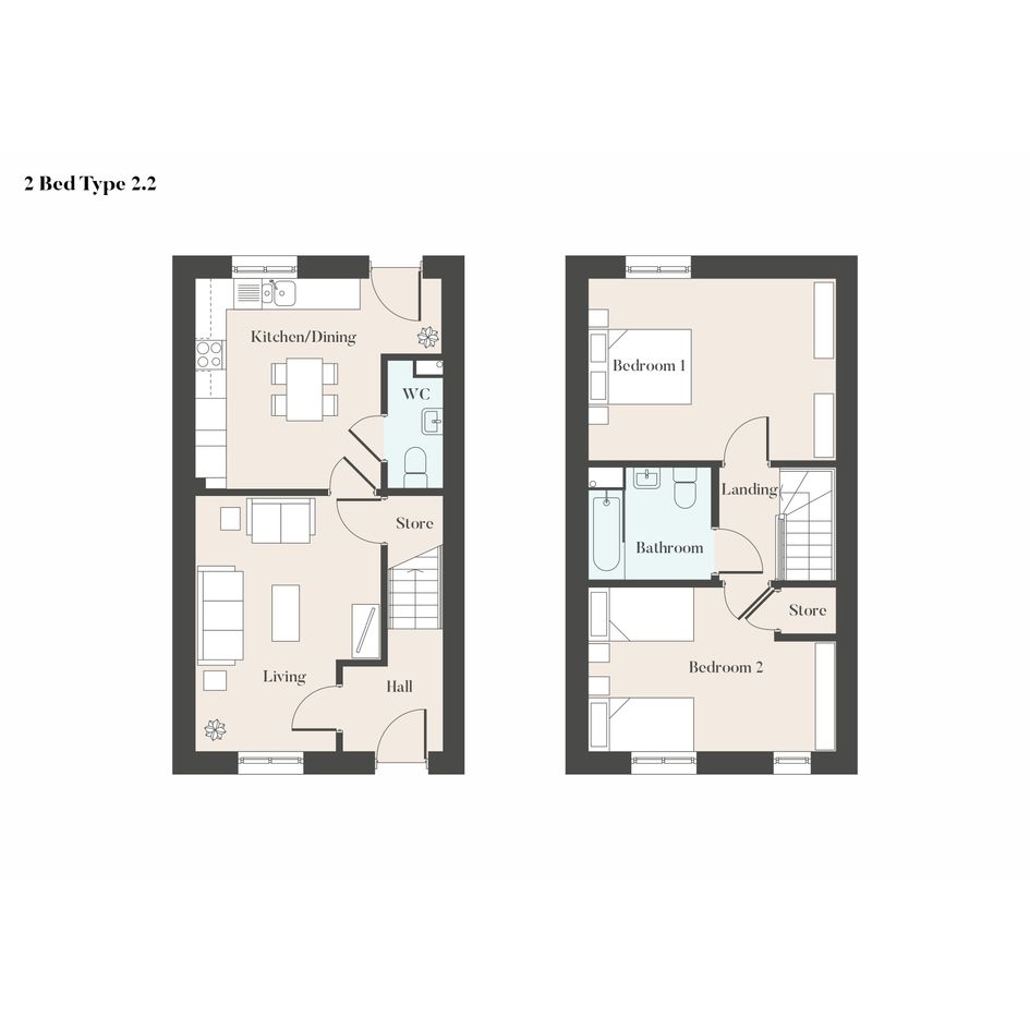 Upstairs features two good-sized bedrooms as well as a family bathroom. You’ll find additional storage up here too to hide away the less glamorous parts of your home, because we know that you can never have too much!