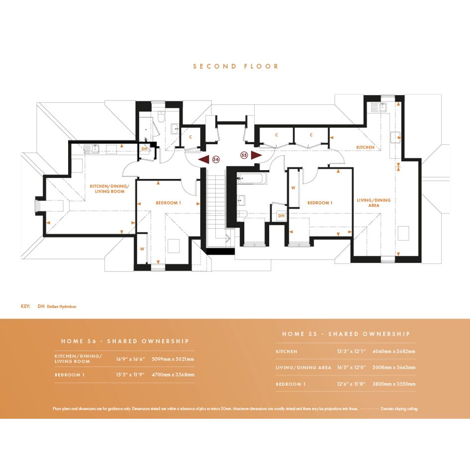 Prices start from £168,750 (being 75% of its full market price of £225,000) for a one bed apartment (497 sq ft) and £217,500 (being 75% of its full market price of £290,000) for a two bed apartment (831 sq ft). Plot 55 is £176,250 for 75%.