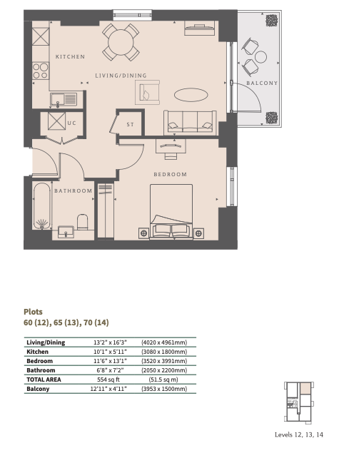 Total Area: Approximately 554 sq ft