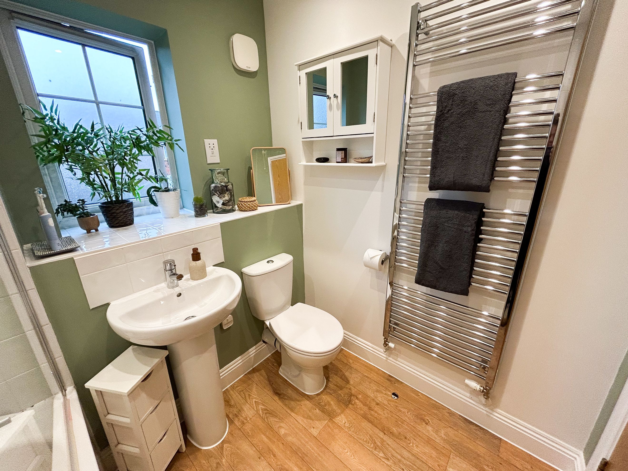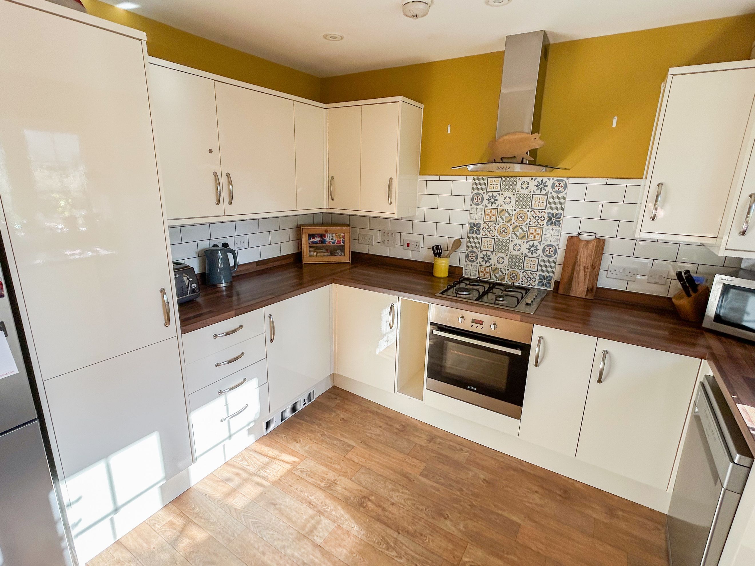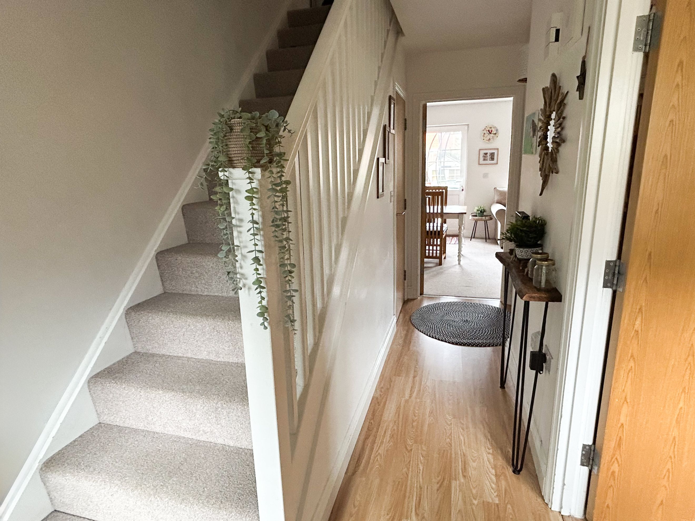 This three‑bedroom semi‑detached townhouse in Hythe, Hampshire offers a practical layout across three floors and is positioned on the edge of the New Forest. The ground floor includes a well‑proportioned lounge and dining area, a separate kitchen with an integrated oven, hob and extractor fan, and a downstairs WC. A large under‑stairs cupboard provides useful storage.