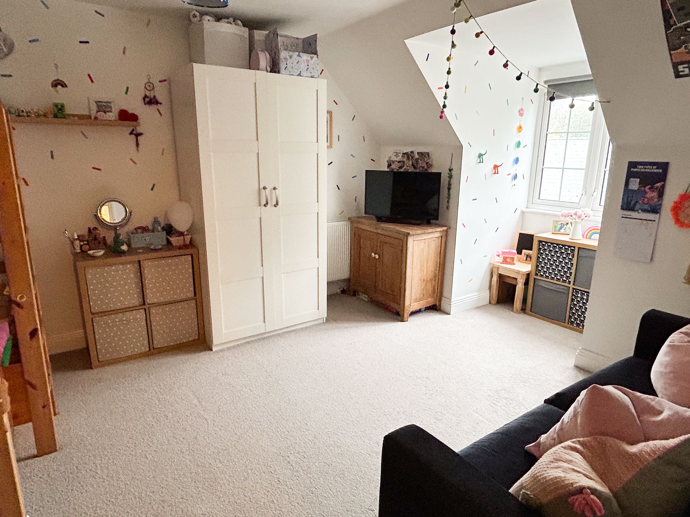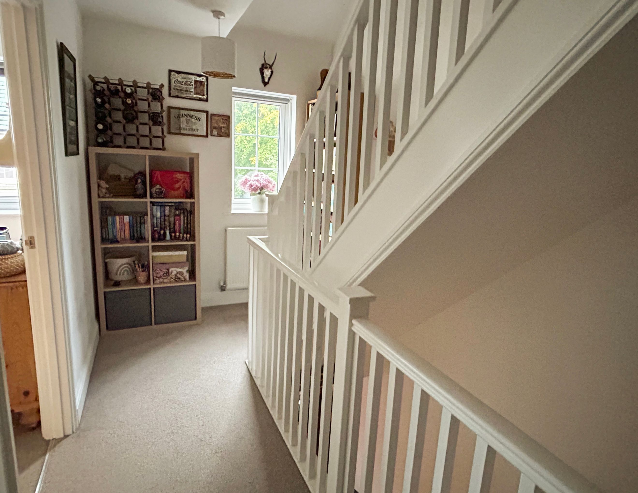 The first floor features the family bathroom, an airing cupboard on the landing, and well‑sized bedrooms, including bedroom one with a built‑in wardrobe. The second floor offers an additional bedroom along with a further landing storage cupboard, giving the property strong storage provision throughout.