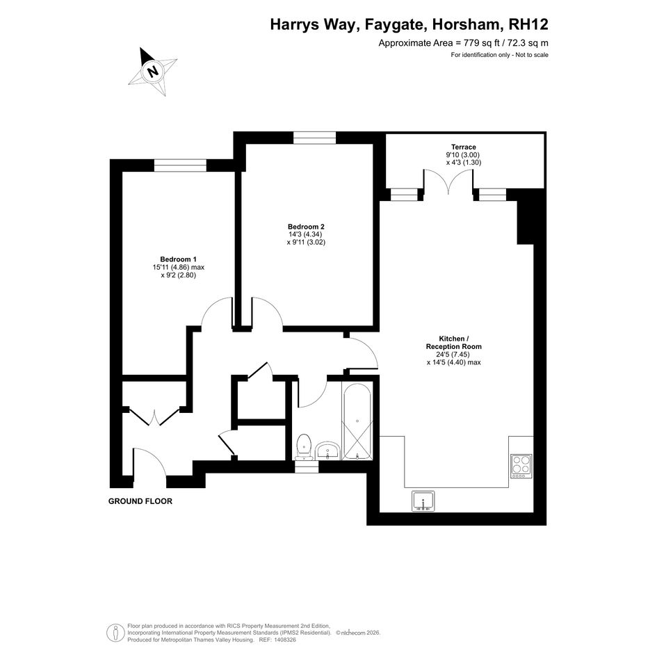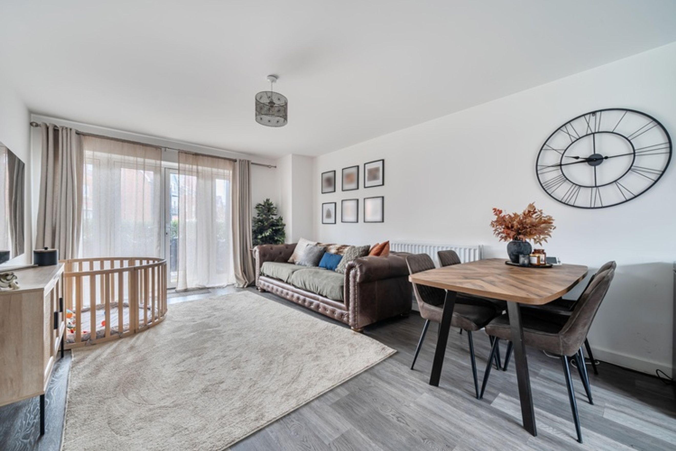 The property on the ground floor comprises an entrance hall, with storage, a spacious living room with a modern open plan kitchen, two large bedrooms and a bathroom.