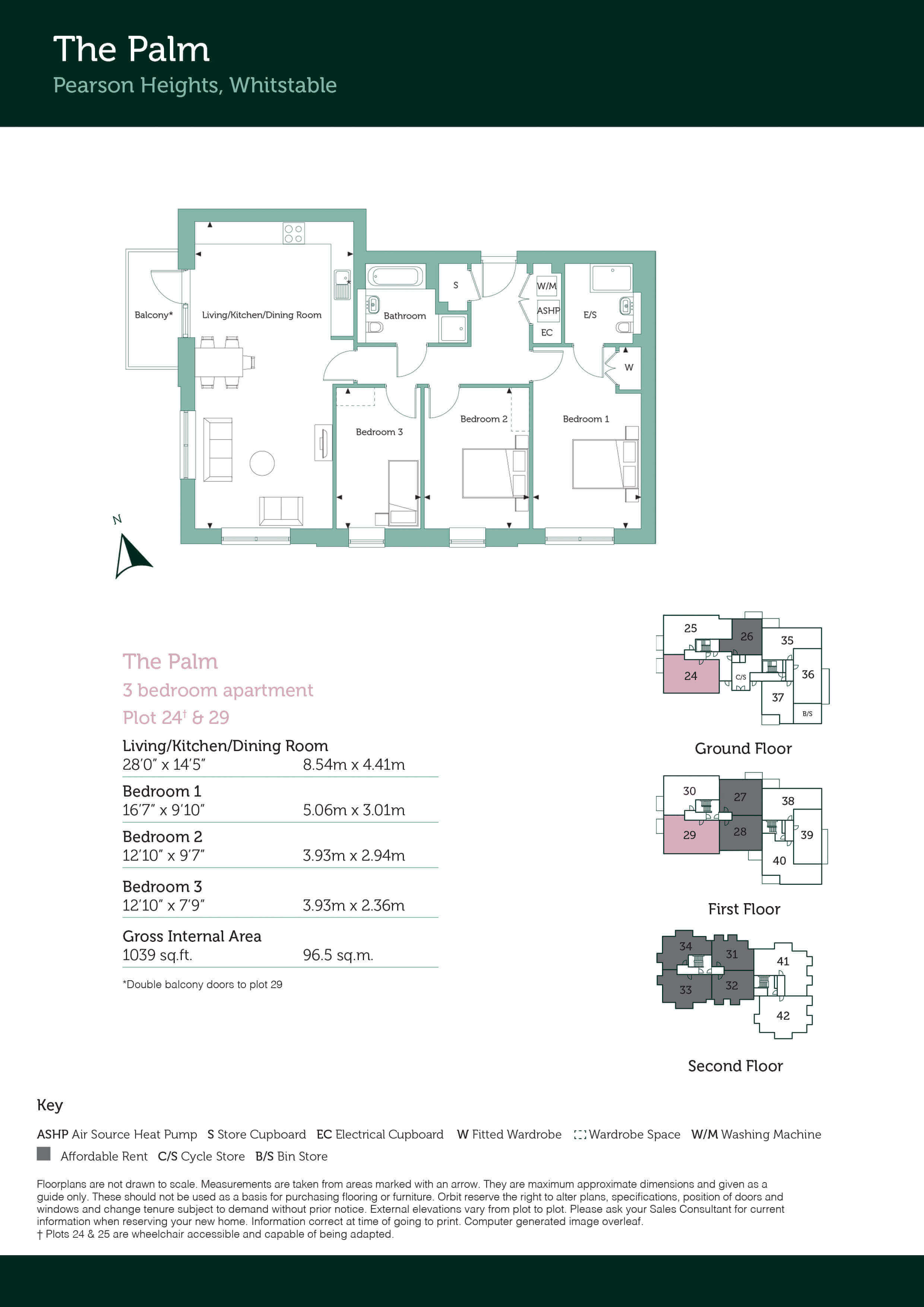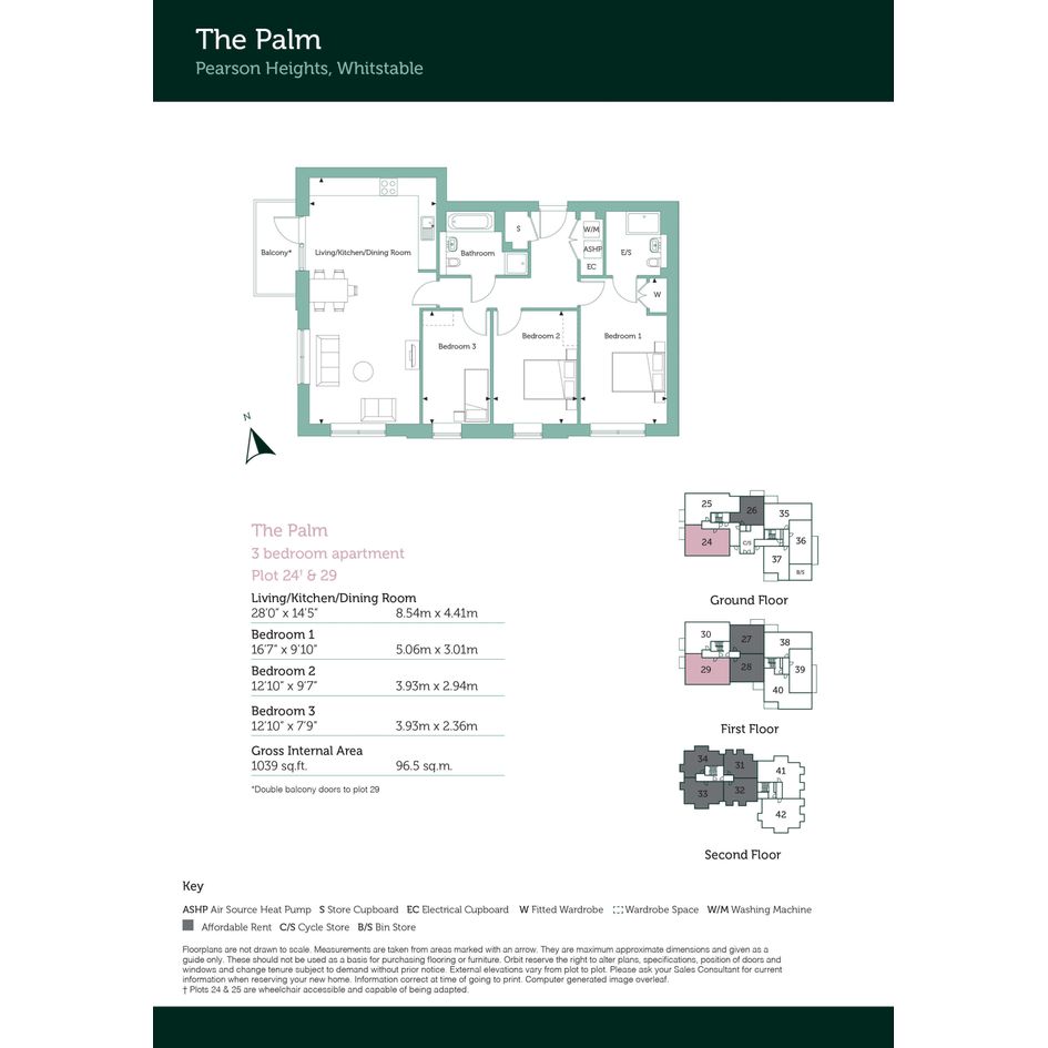 Kitchen/living/dining area and bathroom photo's are of plot 24 The Palm. Bedroom photo's are of other Orbit show homes, used for illustrative purposes only, and selected to give the closest representation available of the layout. For site specific layout and specification, please refer to technical drawings.