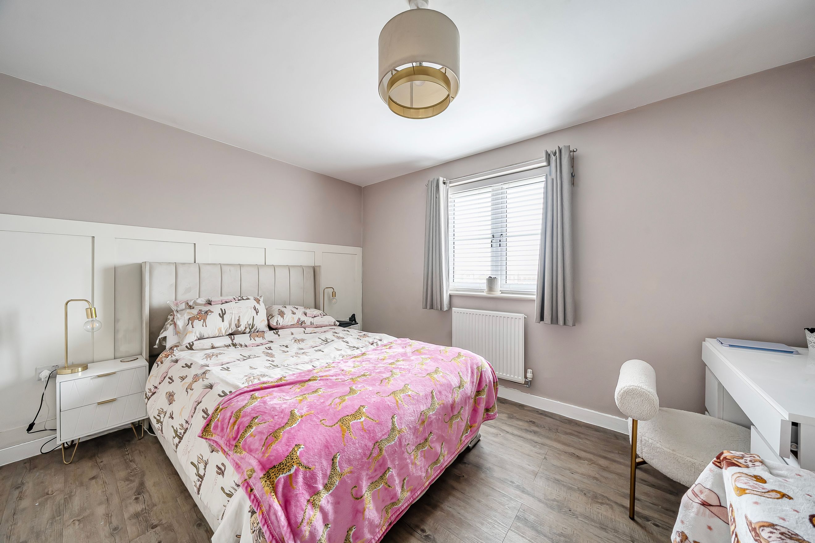 The accommodation features two generously sized double bedrooms and a modern bathroom, all complemented by a welcoming entrance hall. Outside, the flat benefits from allocated parking, providing added convenience.