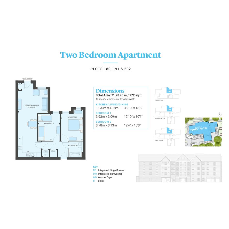 Plot 180 is a new 2 bedroom Shared Ownership apartment located on the first floor of Block F at Rivermead Gardens in Alton, available to buy with a deposit of just £3,500* with Shared Ownership.