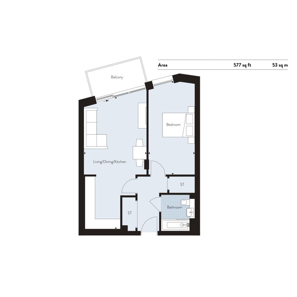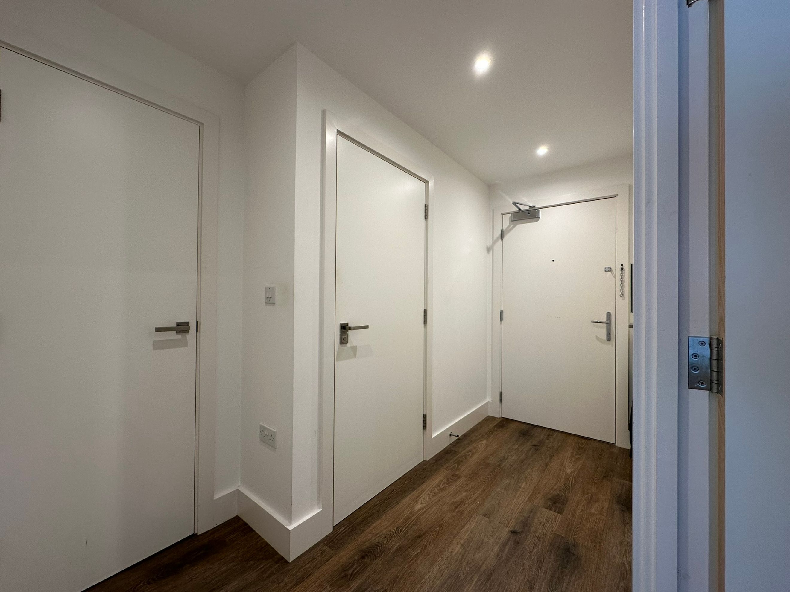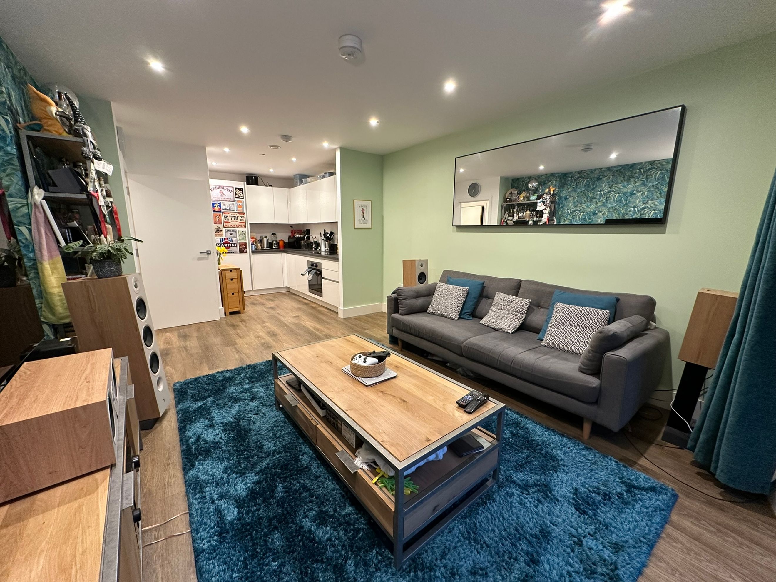 A spacious, sixth-floor apartment in this recently-built development. Internal features include a twenty-five-foot, semi-open-plan kitchen/reception room with attractive flooring, sleek units and integrated appliances. There is a generously-sized bedroom and a stylish, modern bathroom. A pair of storage/utility cupboards have been provided in the entrance hallway and the energy-efficiency rating is very good, thanks to well insulated walls, high performance glazing and a communal heating/hot water system. The property has a balcony and residents can make use of the communal garden and roof terrace. Ascot House is close to the town centre and main shopping district. Staines Railway Station, for services between Reading/Weybridge/Windsor & Eton Riverside and London Waterloo, is also just a short walk away. Very long lease.