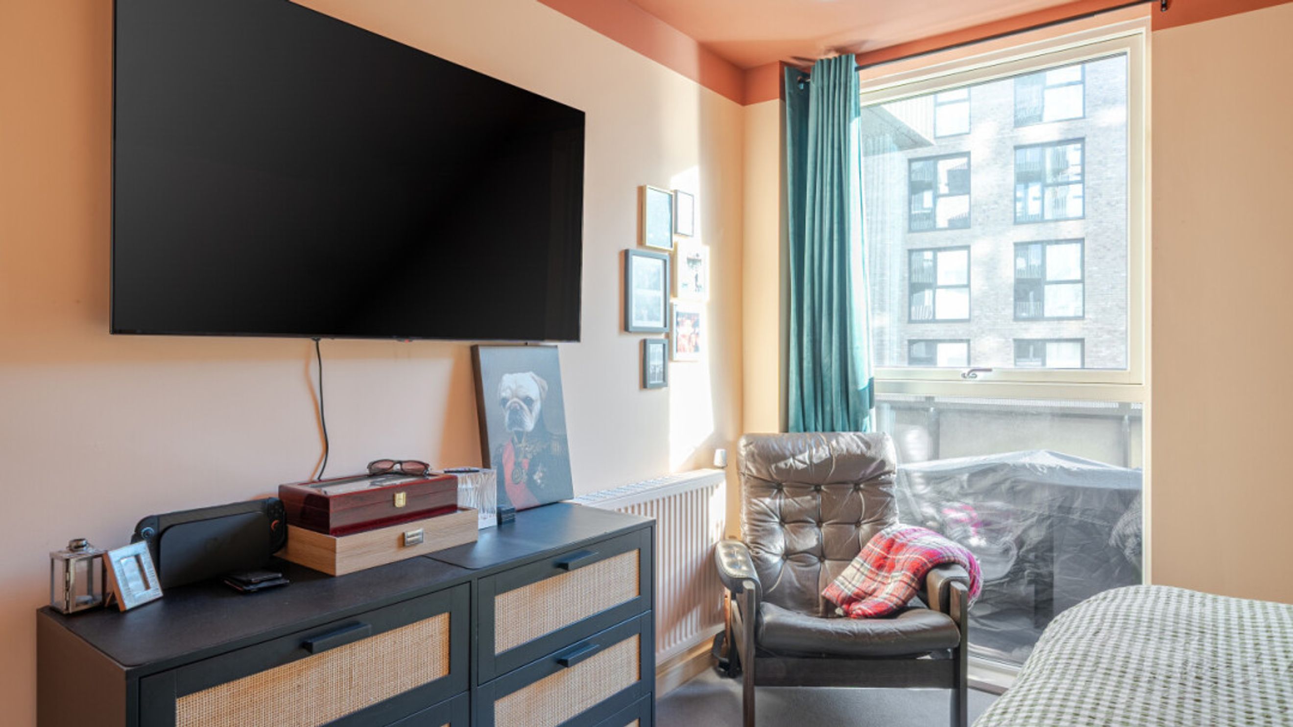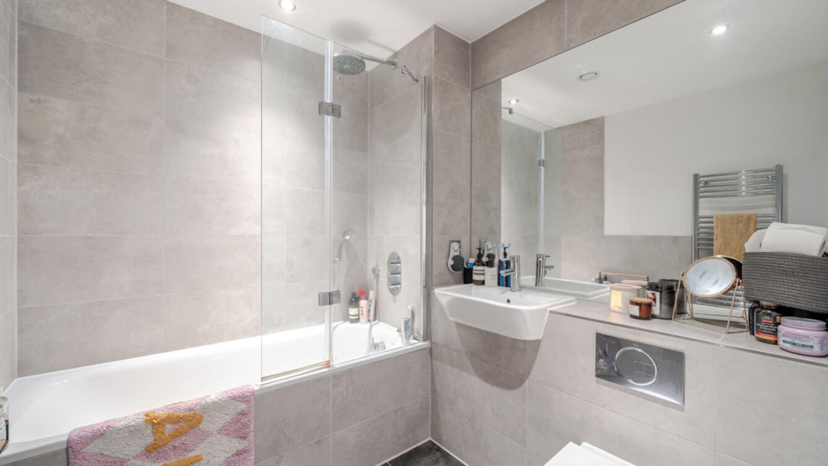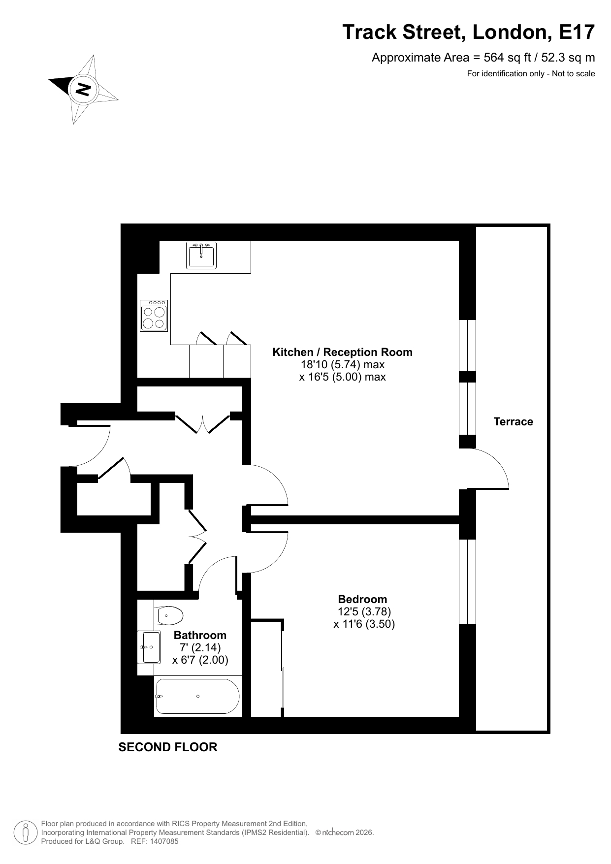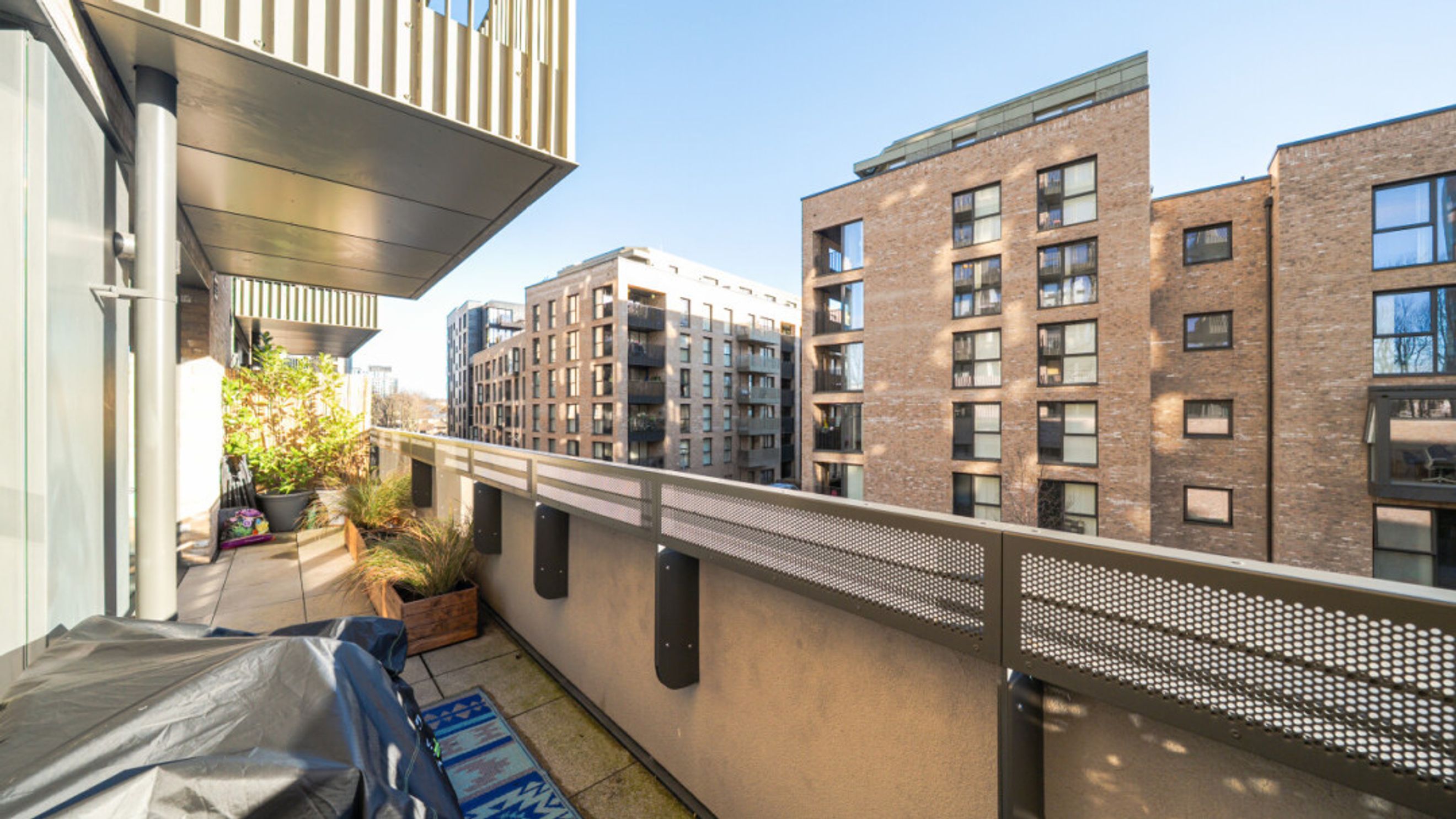 This bright and airy one bedroom south facing apartment consists of an open-plan kitchen and living area, which opens up onto a full width terrace with London skyline views. The modern kitchen includes fully integrated appliances. There is a generous double bedroom benefitting from a built-in wardrobe; and a contemporary bathroom, with a white three-piece suite with a shower over the bath, completes the accommodation.