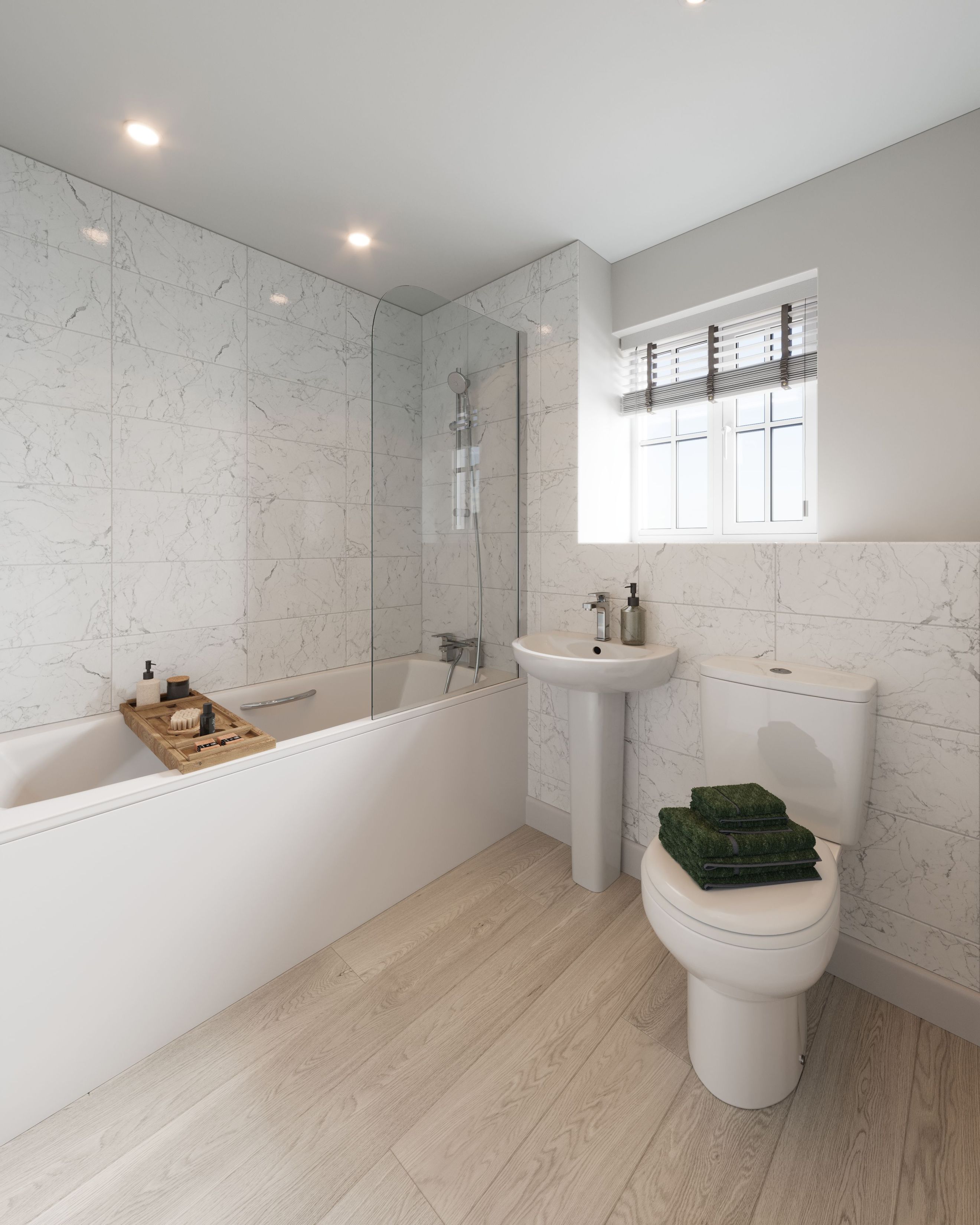 The first floor of The Oak(i) is made up of a spacious master bedroom benefiting from an en-suite and two further, good-sized double bedrooms. The contemporary three-piece family bathroom contains an over-bath shower plus designer taps and tiling.