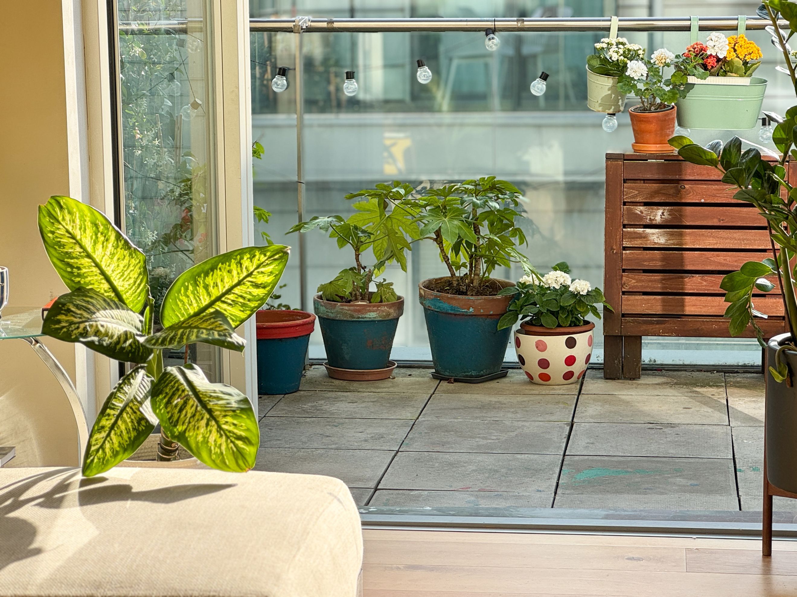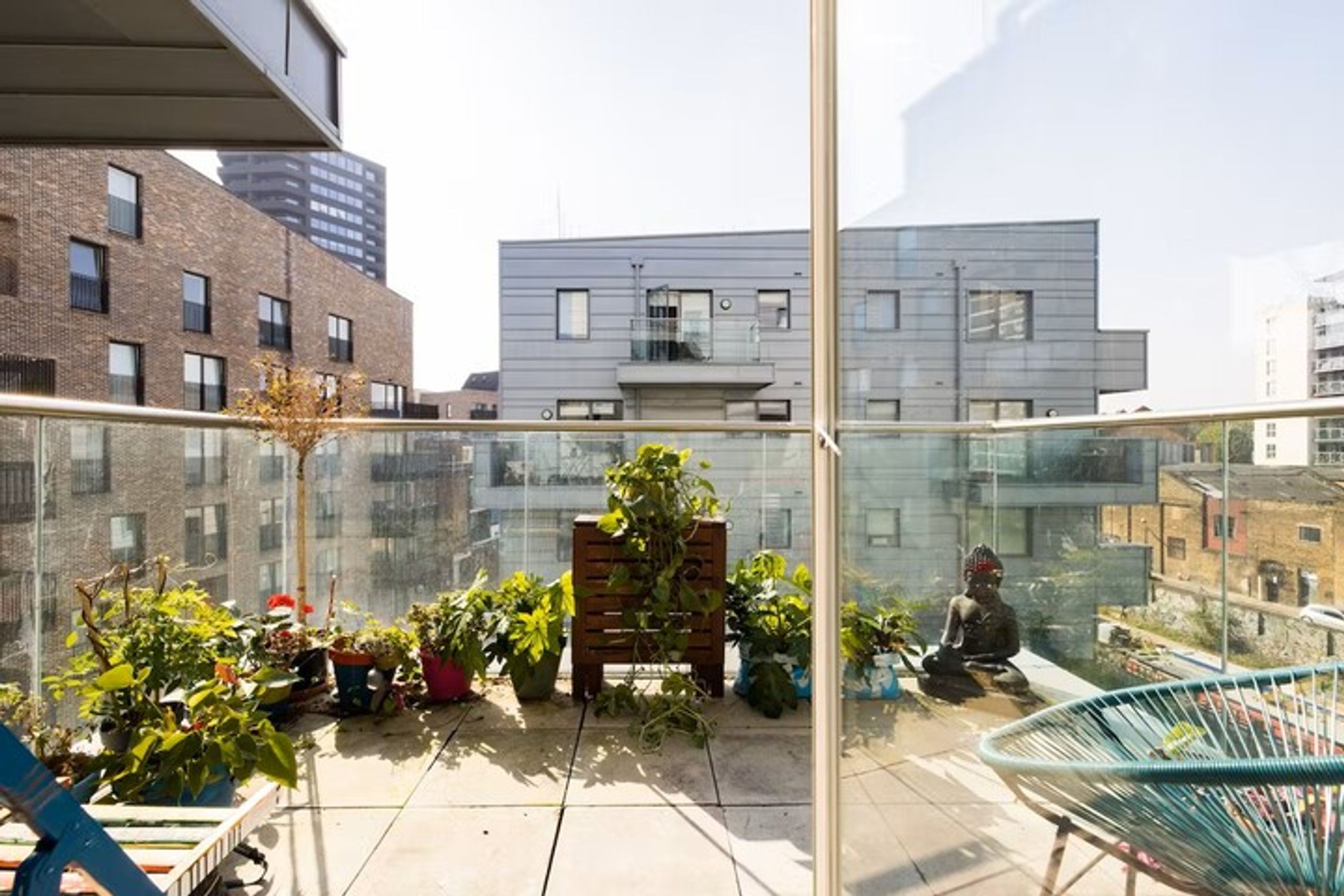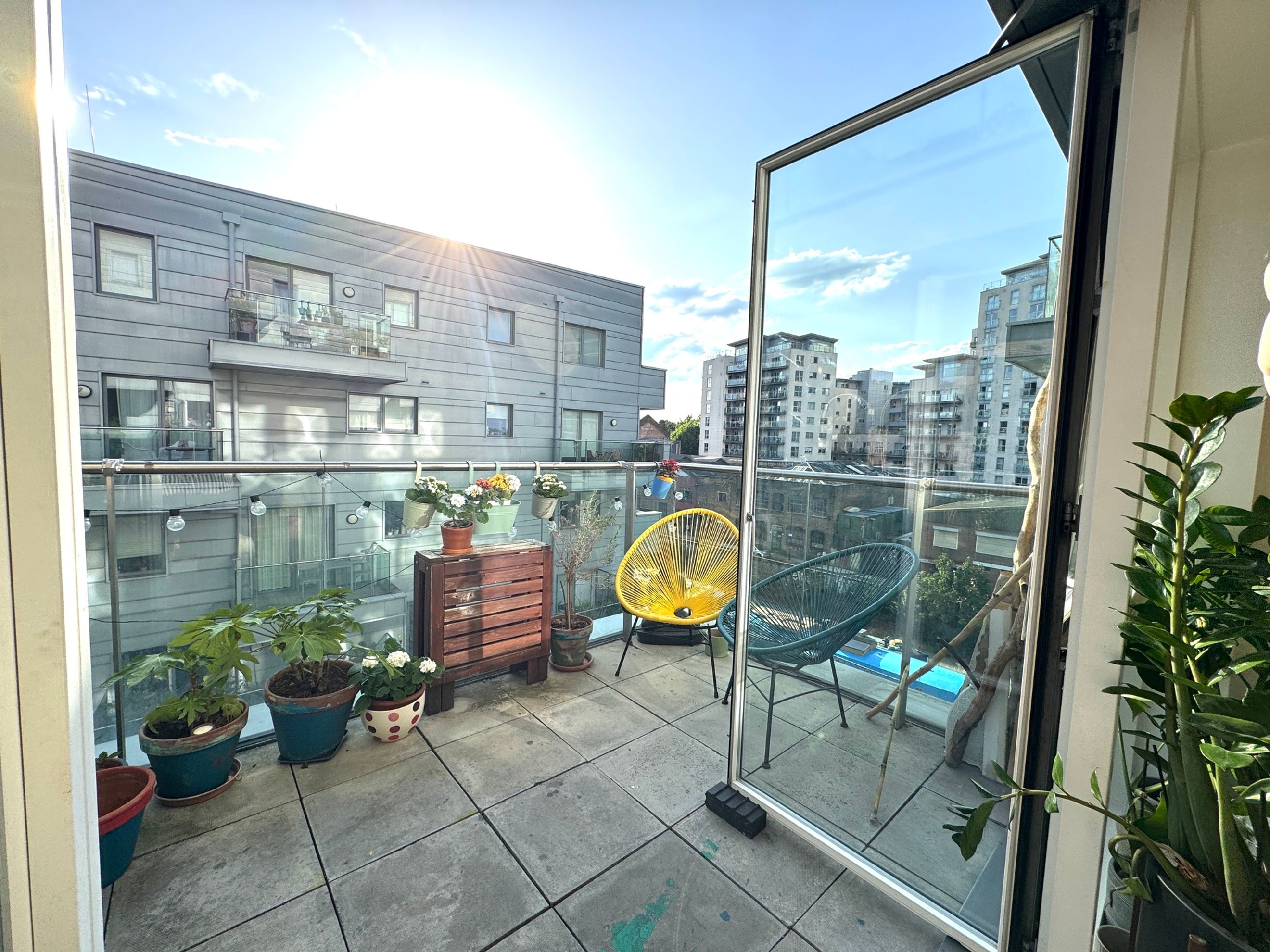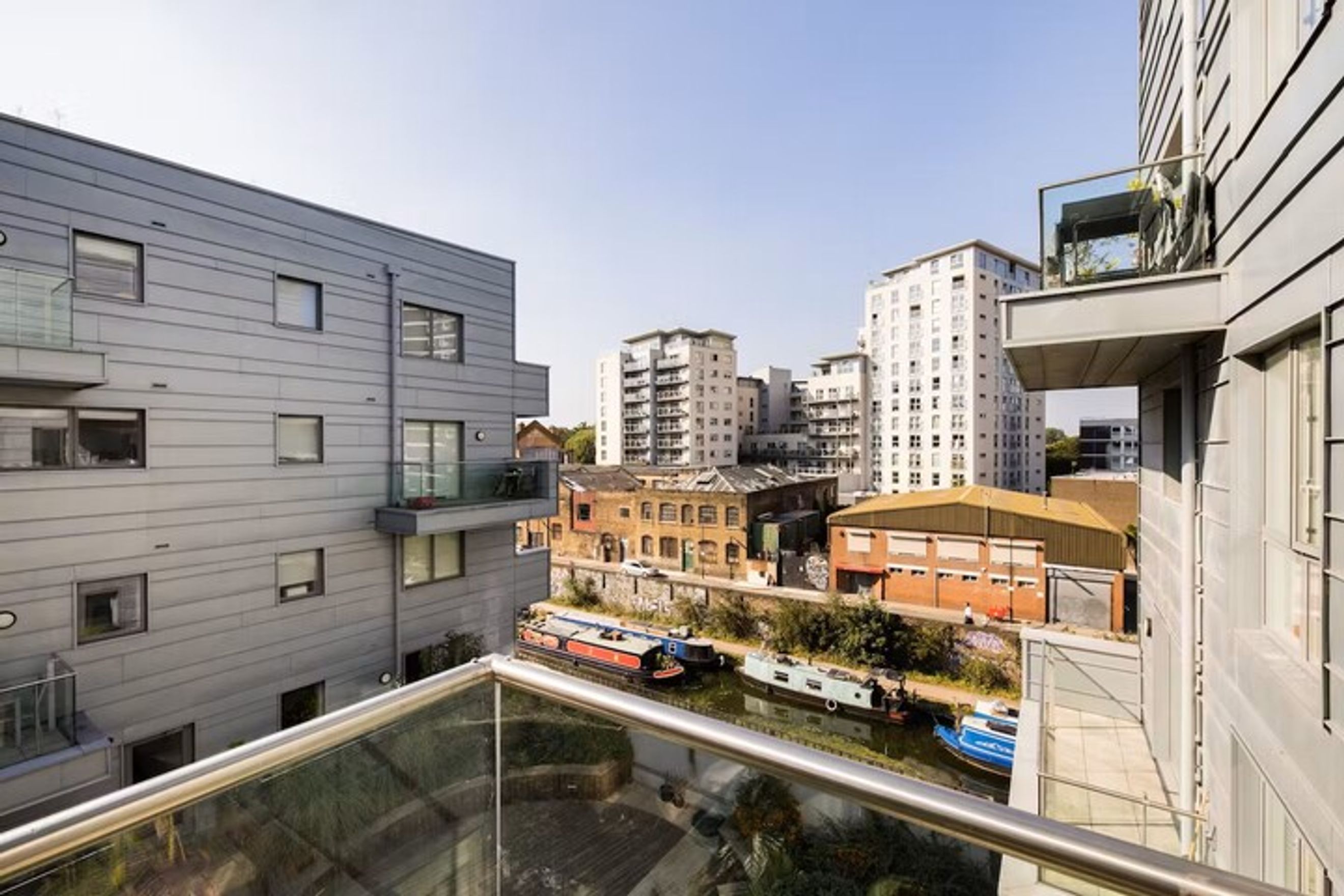 The private balcony is generously sized and offers views towards the canal.