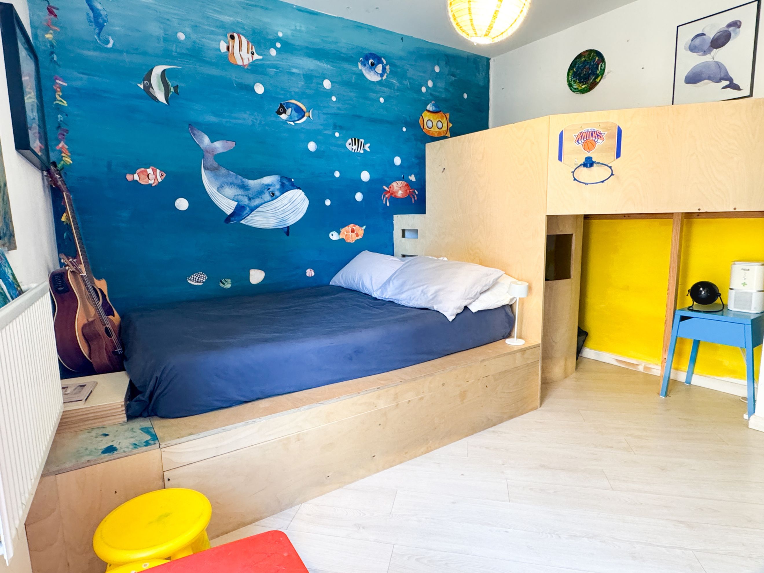 The rooms are colourful and thoughtfully arranged, and several pieces of furniture have been designed specifically for the space, making the most of the layout and adding a distinct character to the interiors.