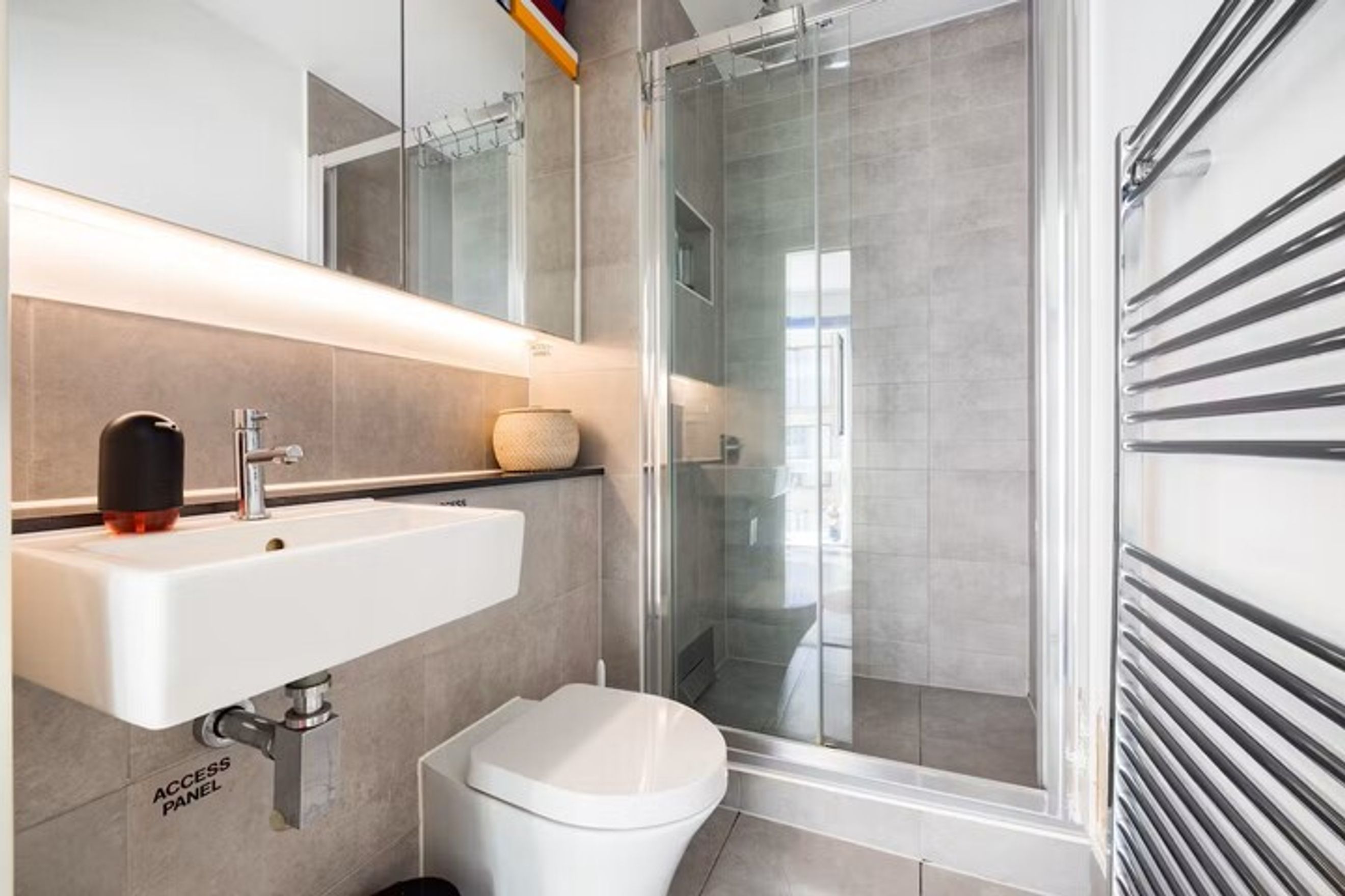 A bright and modern 2‑bedroom, 2‑bathroom apartment with a private balcony in Hackney.