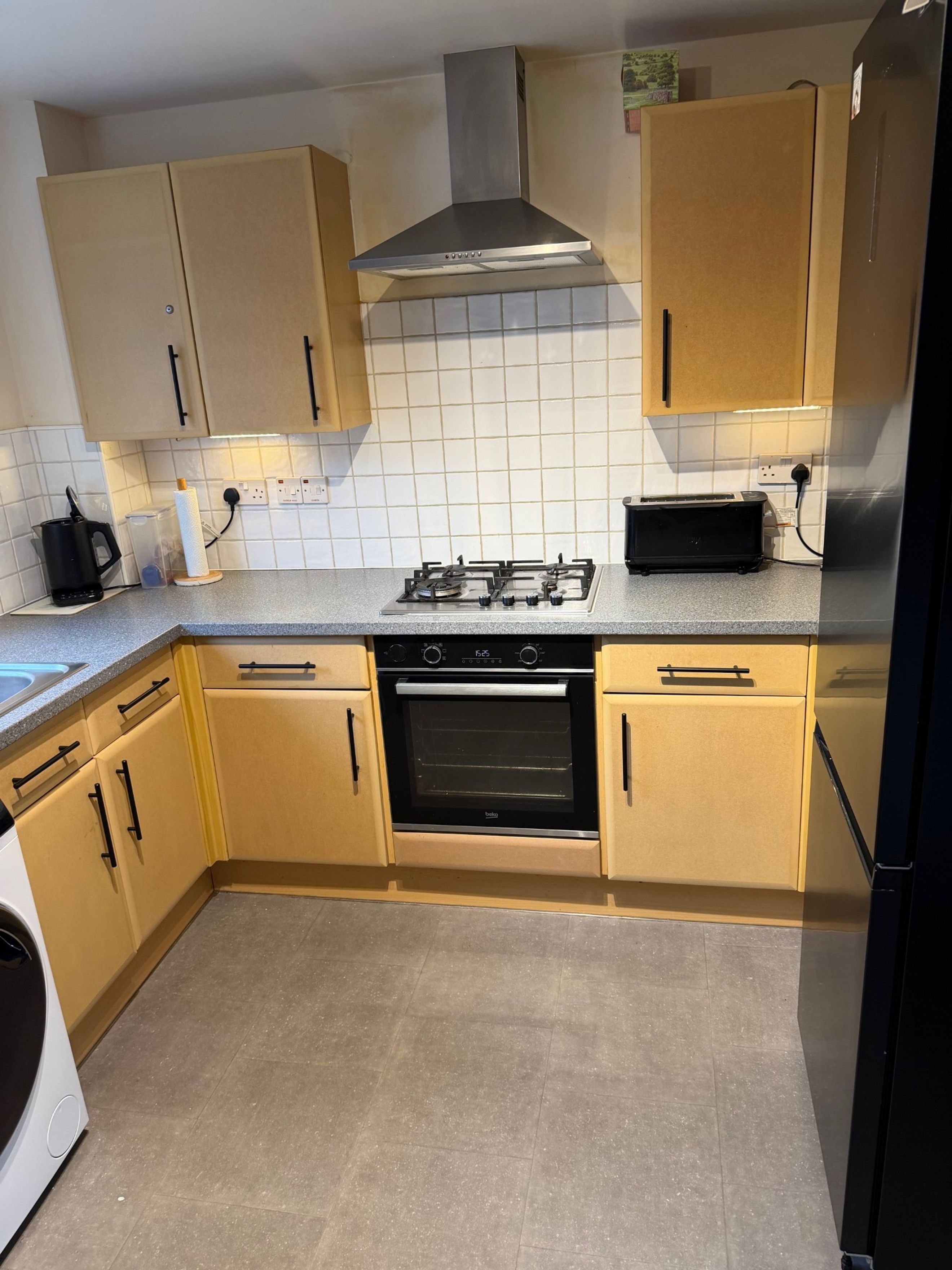 This attractive first‑floor two‑bedroom flat in Fareham offers bright, modern living in a highly convenient location. A spacious entrance hallway welcomes you into the home, complete with two useful storage cupboards. From here, you enter the open‑plan kitchen and living area, a comfortable and sociable space ideal for everyday living. The kitchen provides ample storage along with an oven, hob and extractor, plus dedicated space for a washing machine and fridge‑freezer.