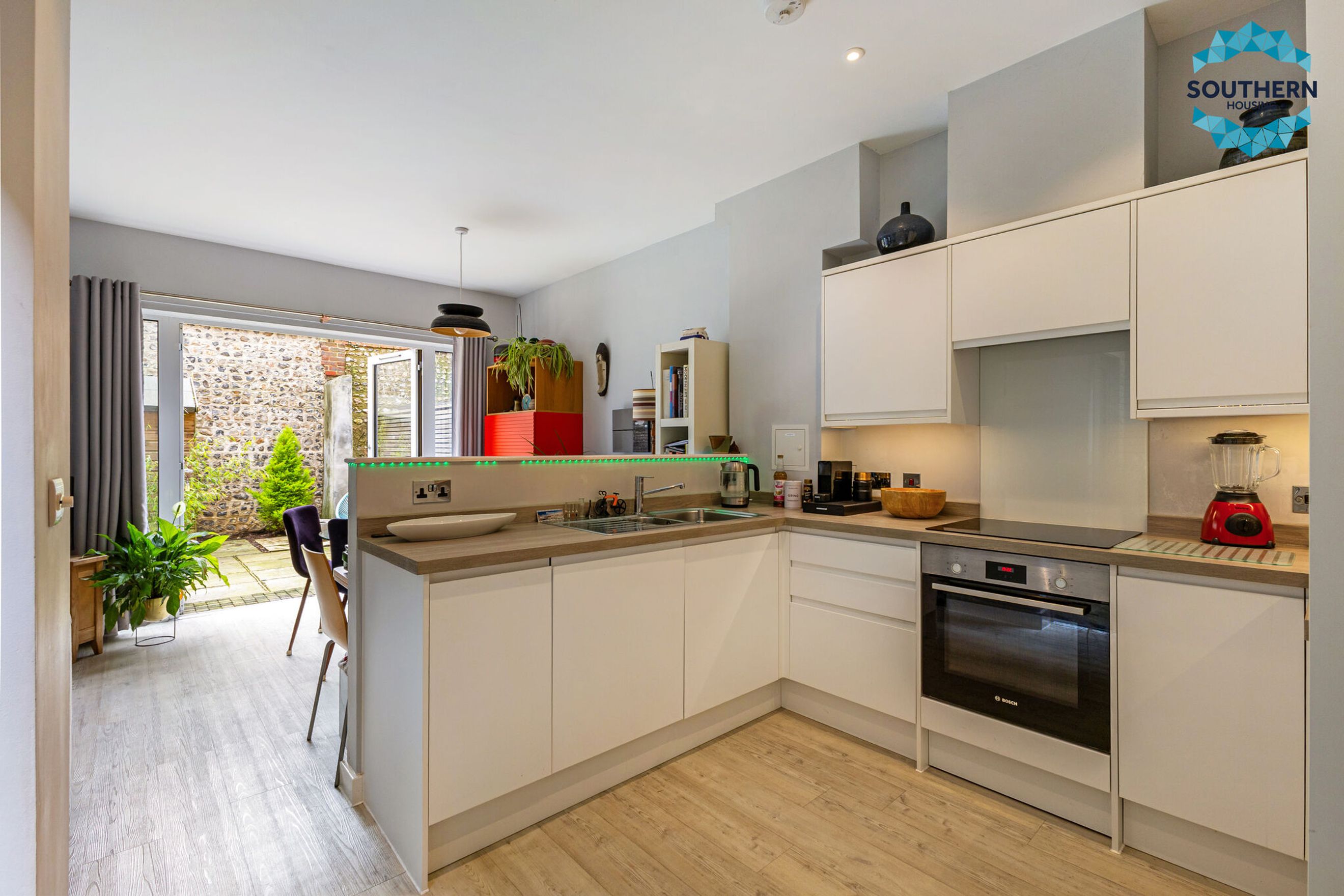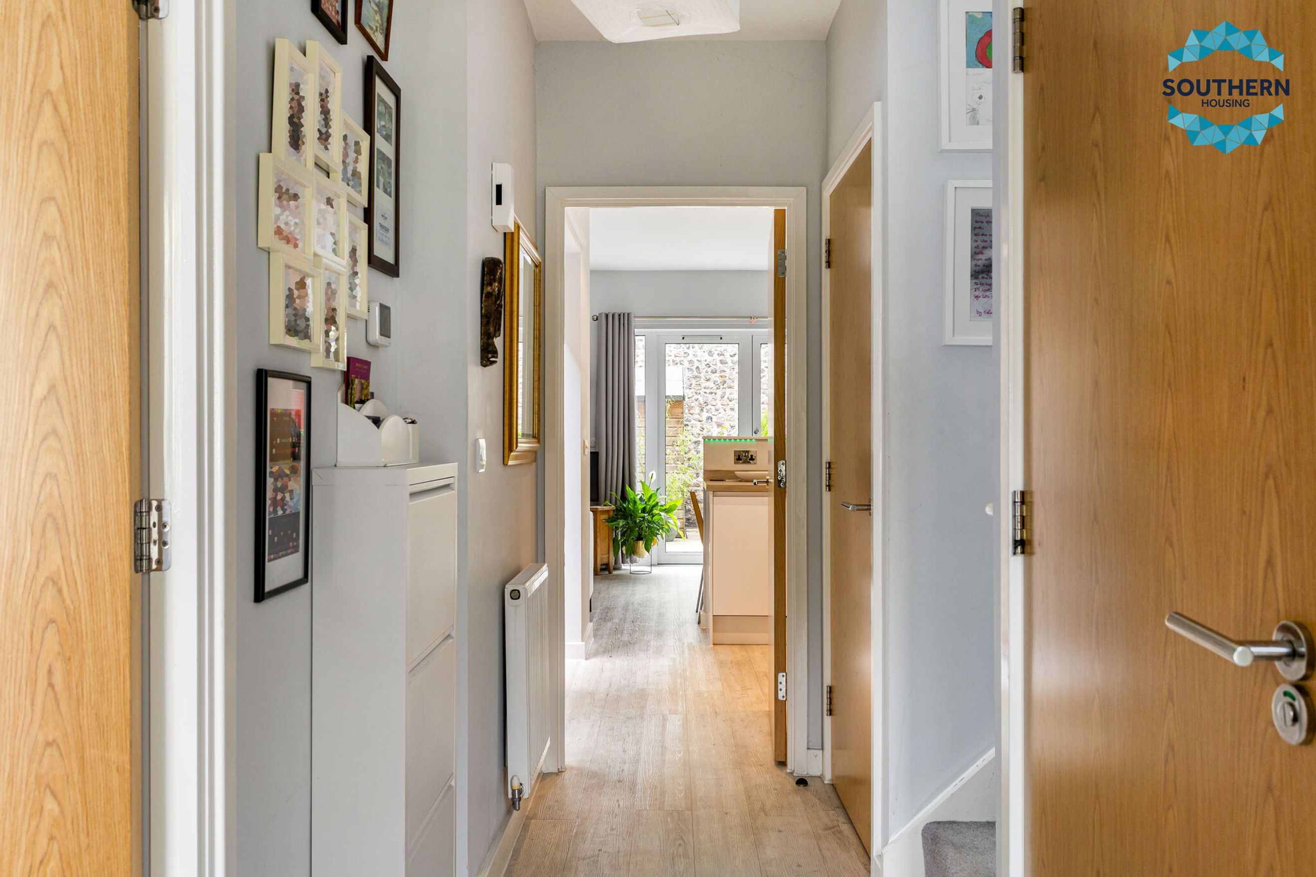 Upon entering, you are welcomed by a bright and spacious hallway that connects all main living areas. This space includes large storage cupboards, ideal for appliances and household essentials. Off the hallway, you'll also find a contemporary downstairs WC with a sink, which also doubles as a convenient utility area.