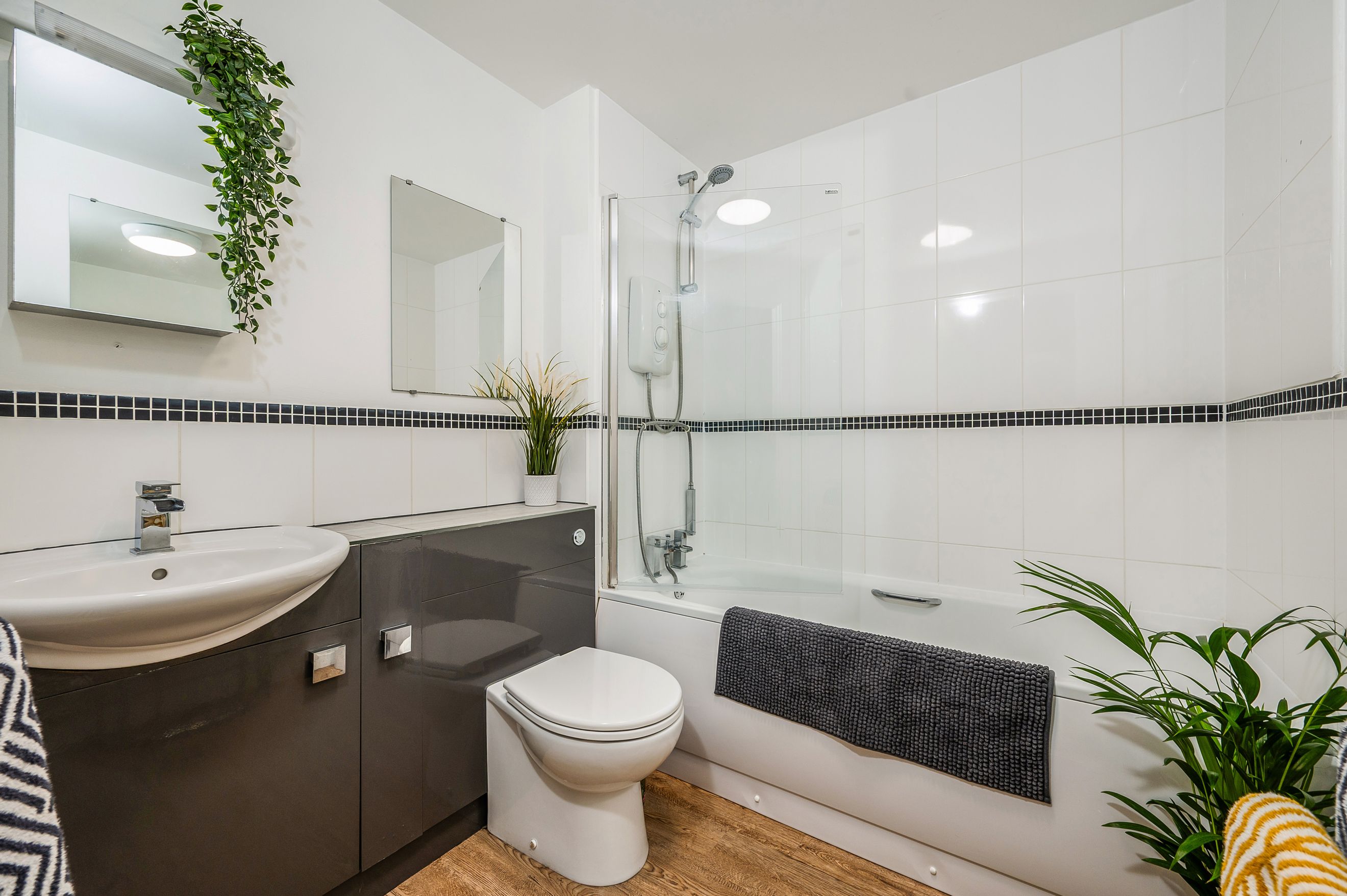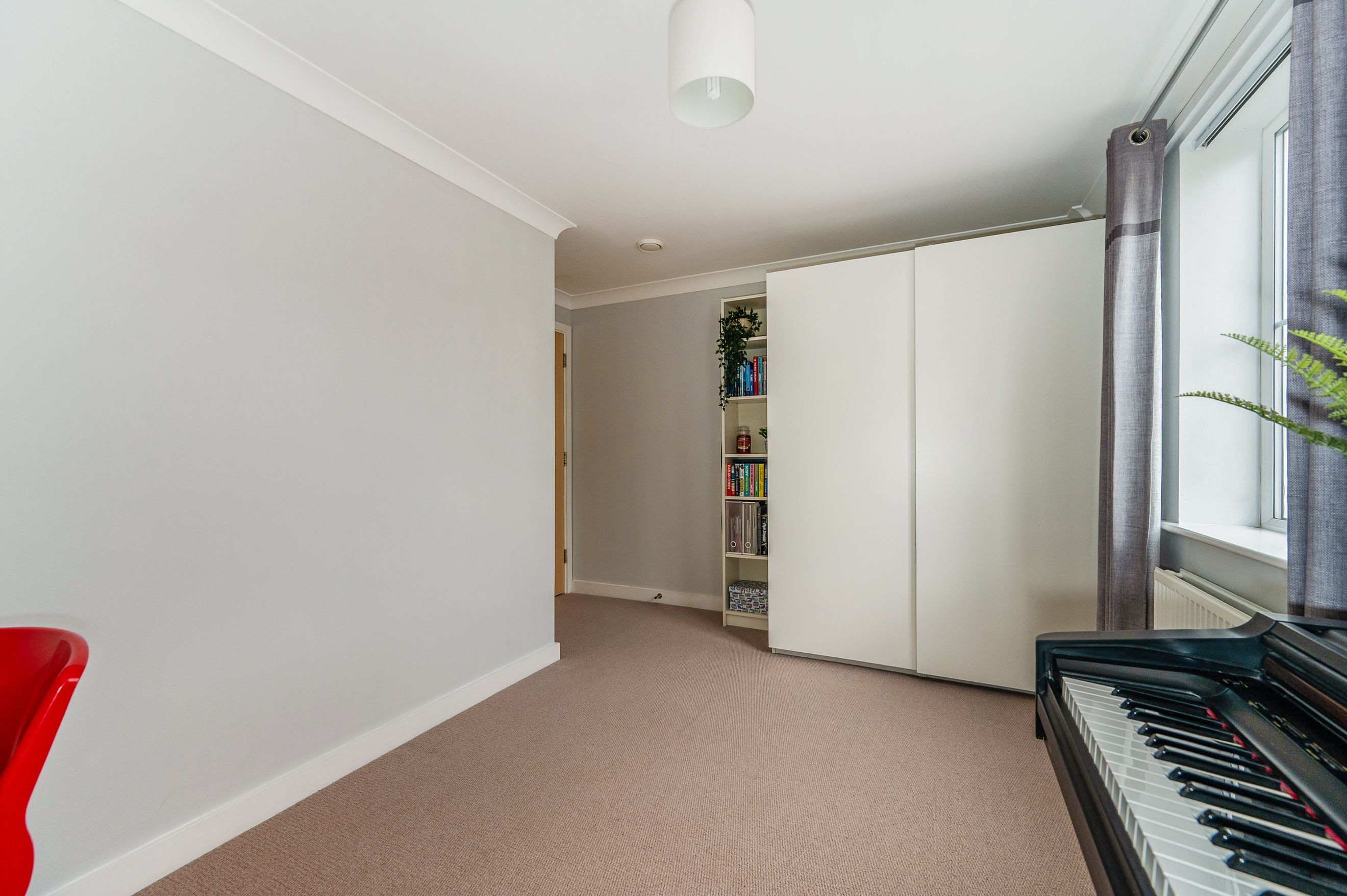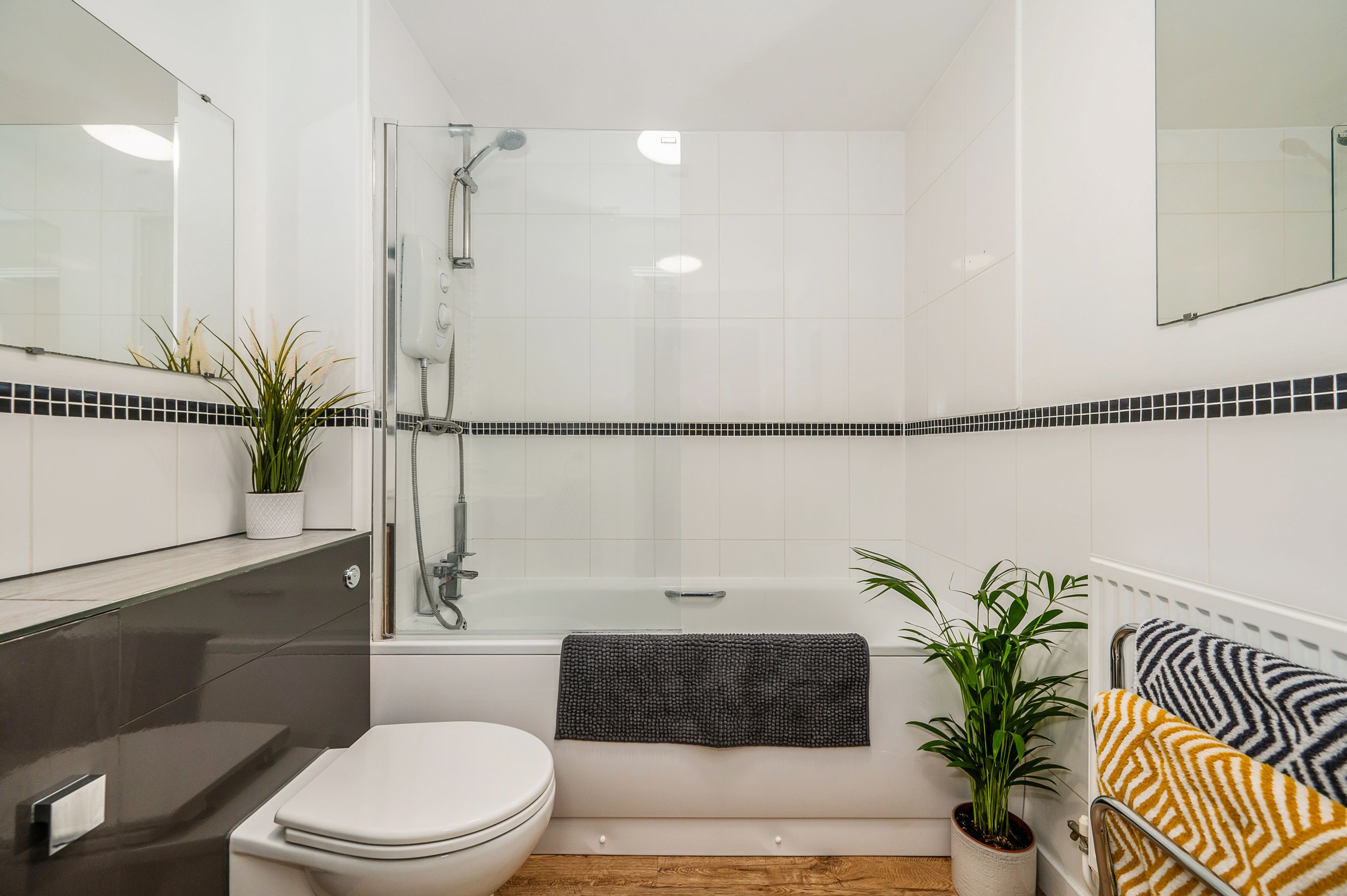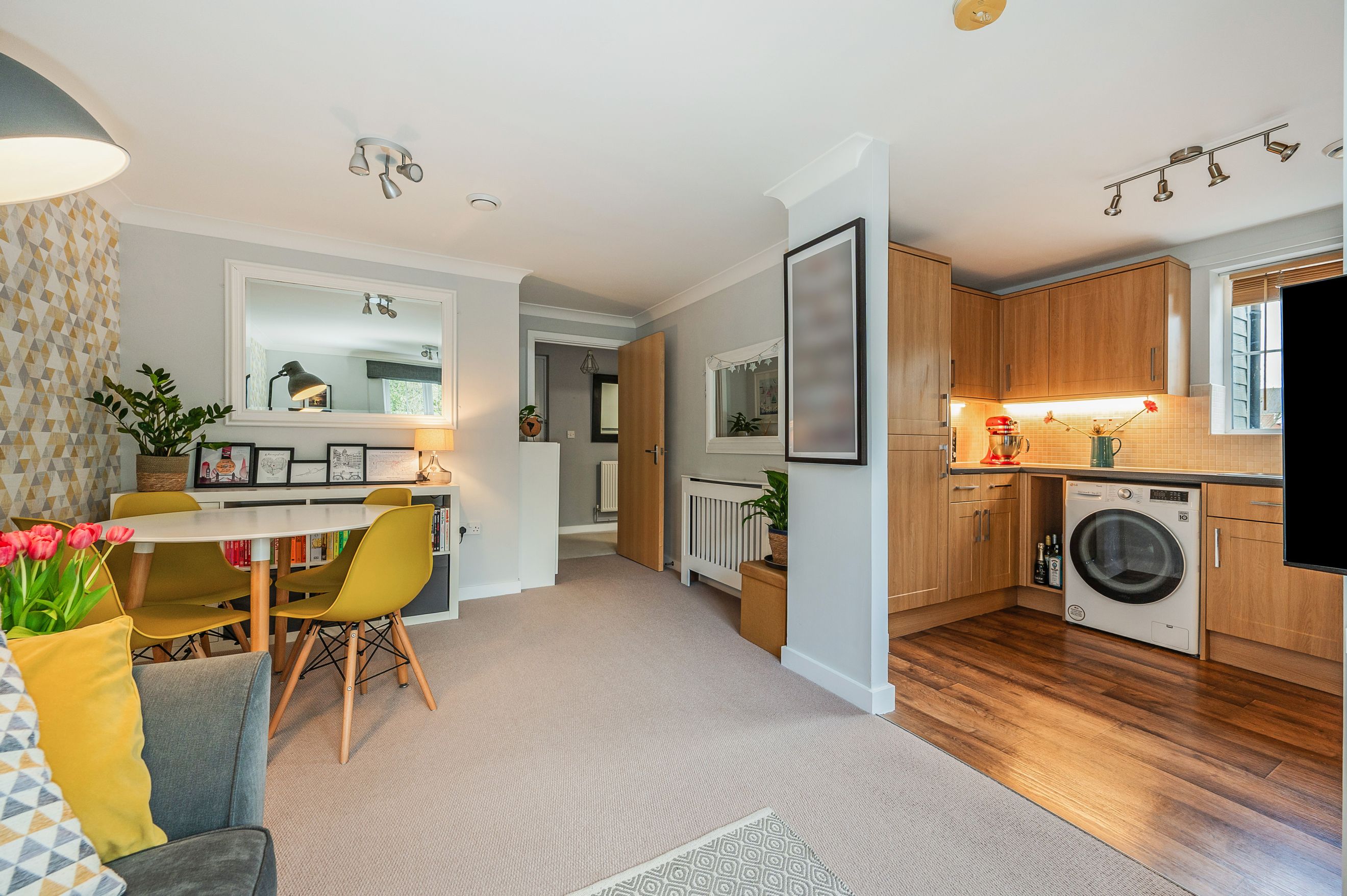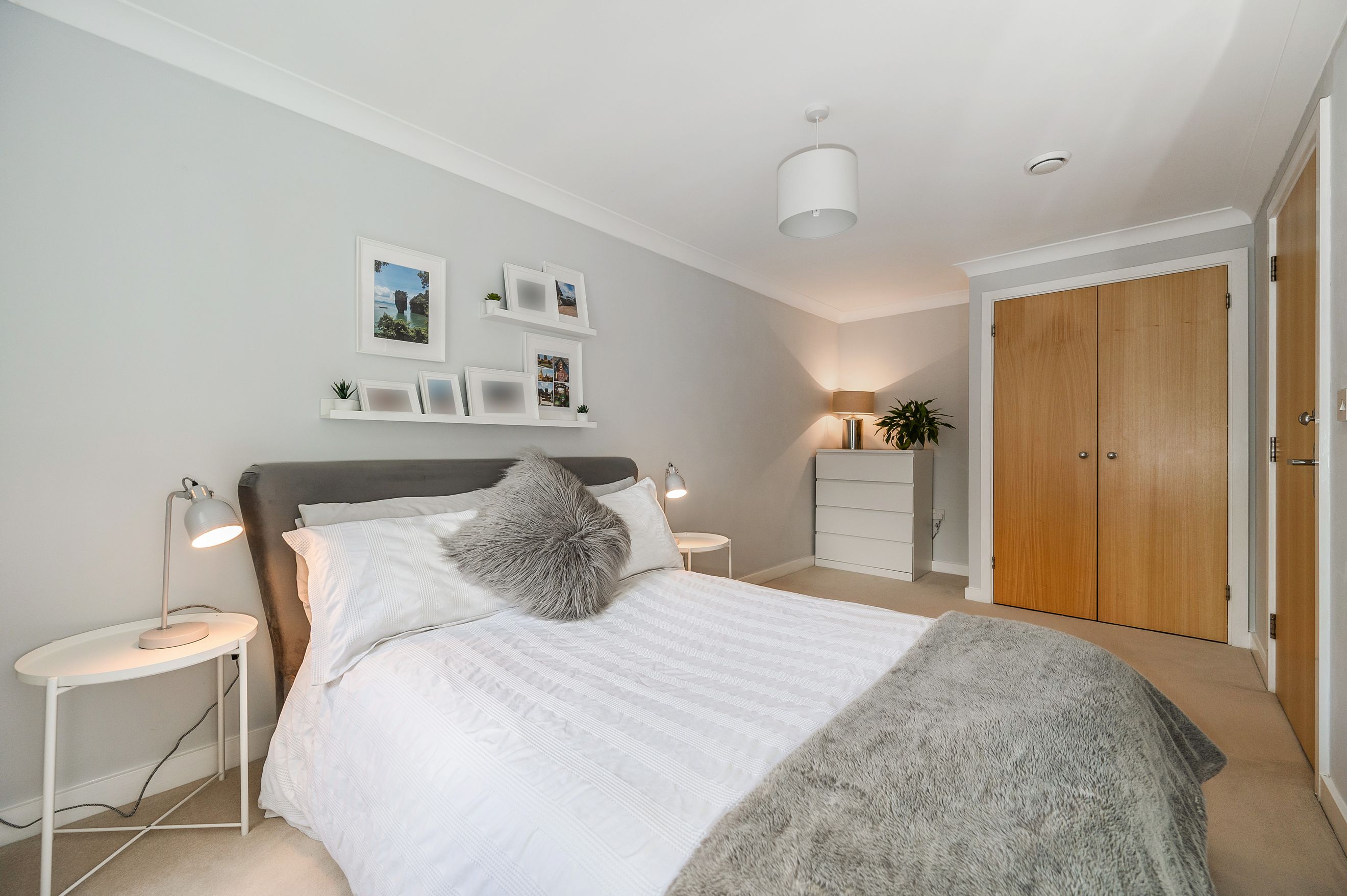 Bedroom one features a built‑in wardrobe, while the hallway provides three large storage cupboards, offering valuable additional space. Bedroom two is suitable as a guest room, study or children’s room. The décor throughout the property is modern and neutral. Residents also have access to communal gardens, as well as communal bin and bike stores.