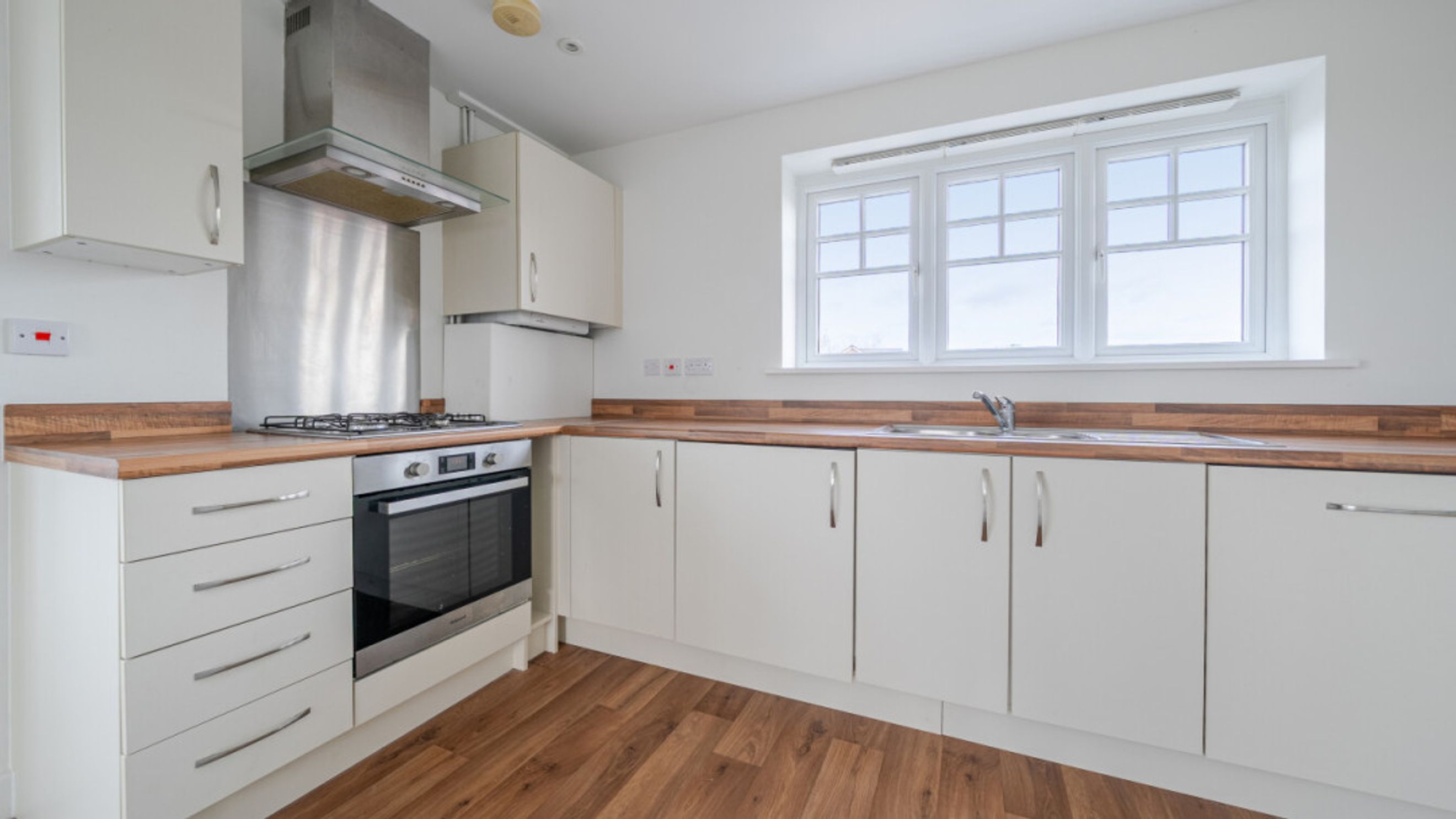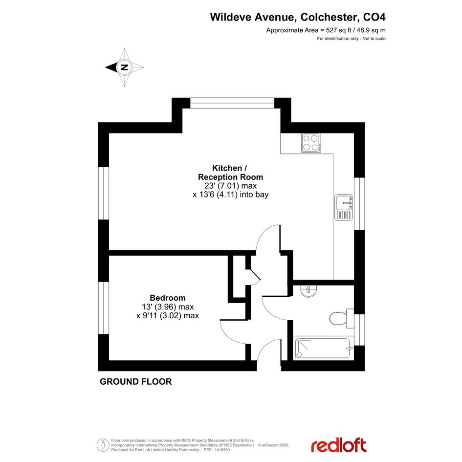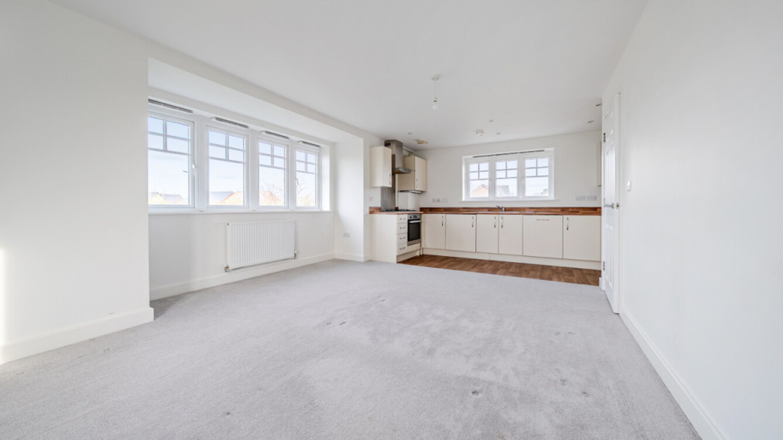 Extending to approximately 48.9 sqm, the property features a bright and spacious open-plan kitchen and reception room, and enhanced by a bay window that fills the space with natural light. The modern kitchen is fitted with integrated appliances, creating a sleek and practical environment ideal for both everyday living and entertaining.