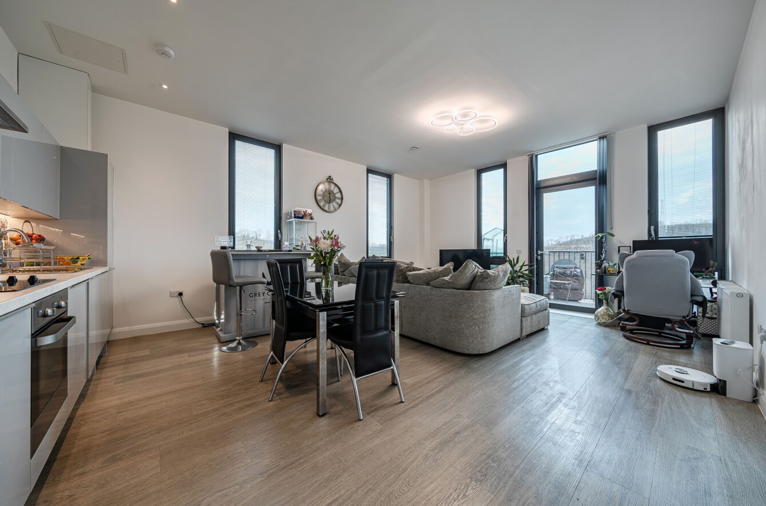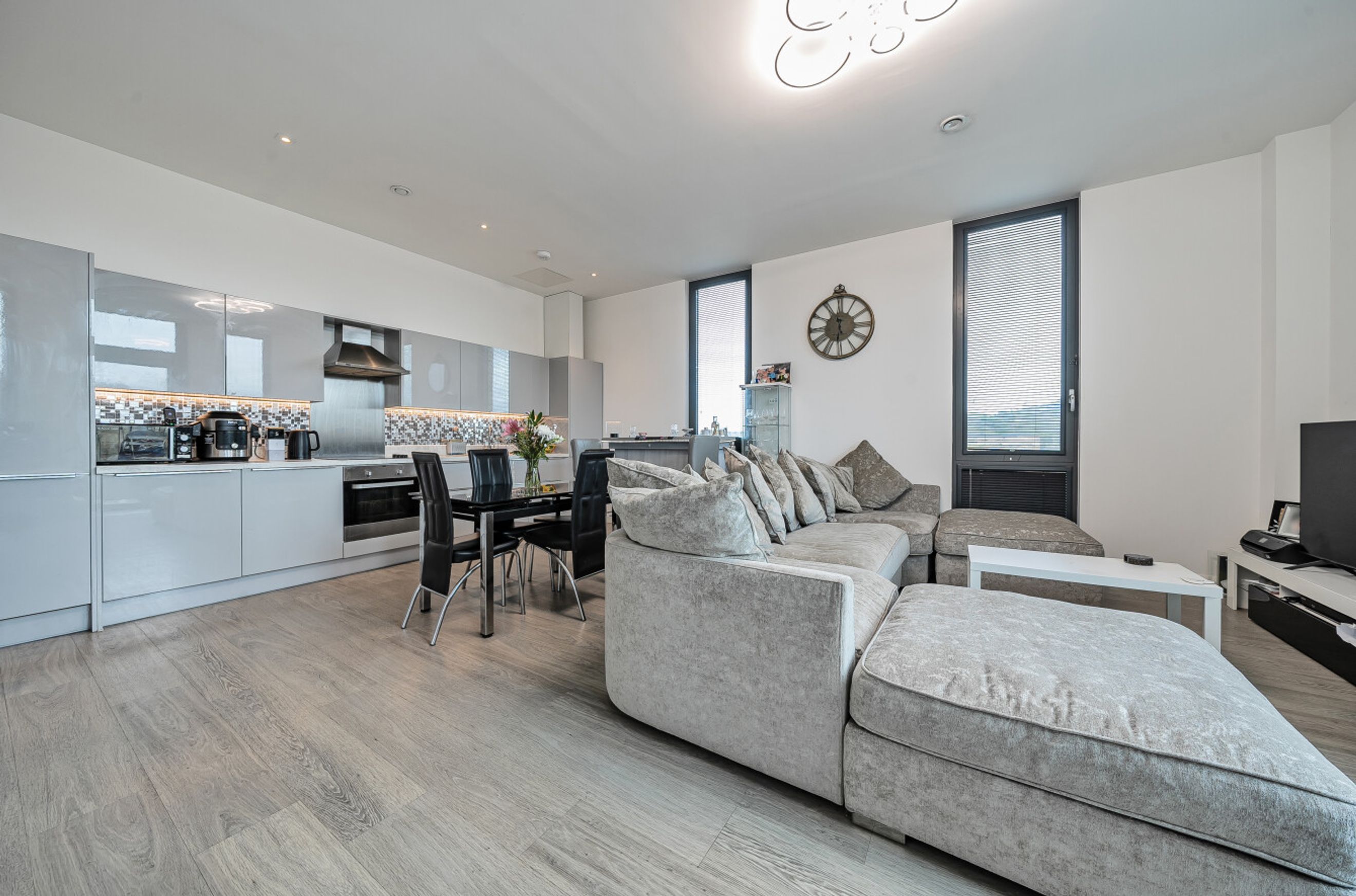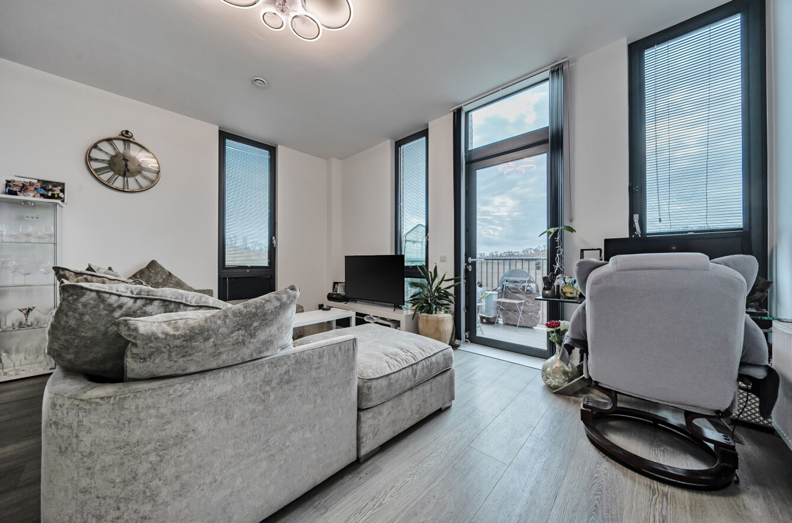 This spacious and smartly-presented flat occupies a prime position within a recently-constructed block - top floor with a south-facing balcony. The property has a large, dual-aspect reception room with open-plan kitchen area featuring sleek, grey units and integrated appliances. The principle bedroom has an en-suite shower room, there is a generously-sized second double bedroom and an attractive main bathroom. A storage/utility cupboard has been provided in the entrance hall and the well insulated walls and roof, high performance glazing and modern gas central heating system make for a very good energy-efficiency rating. There is a Co-Op store in one of the ground-floor retail units and the Blue Bean Cafe is close by. Cherry Orchard Primary School, which is just minutes away, is Ofsted-rated 'Outstanding'. Aragon House has a communal parking area and Swanscombe and Ebbsfleet Railway Stations can also be easily reached via brief bus or bike ride.