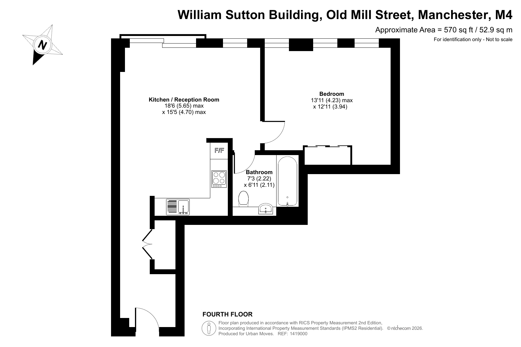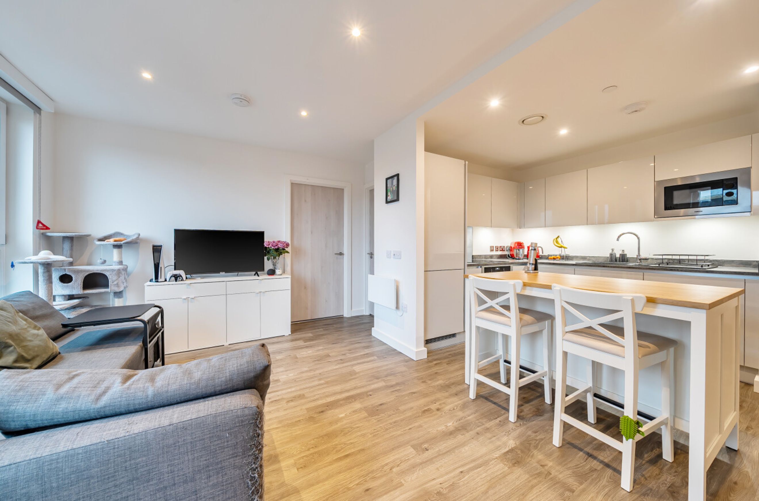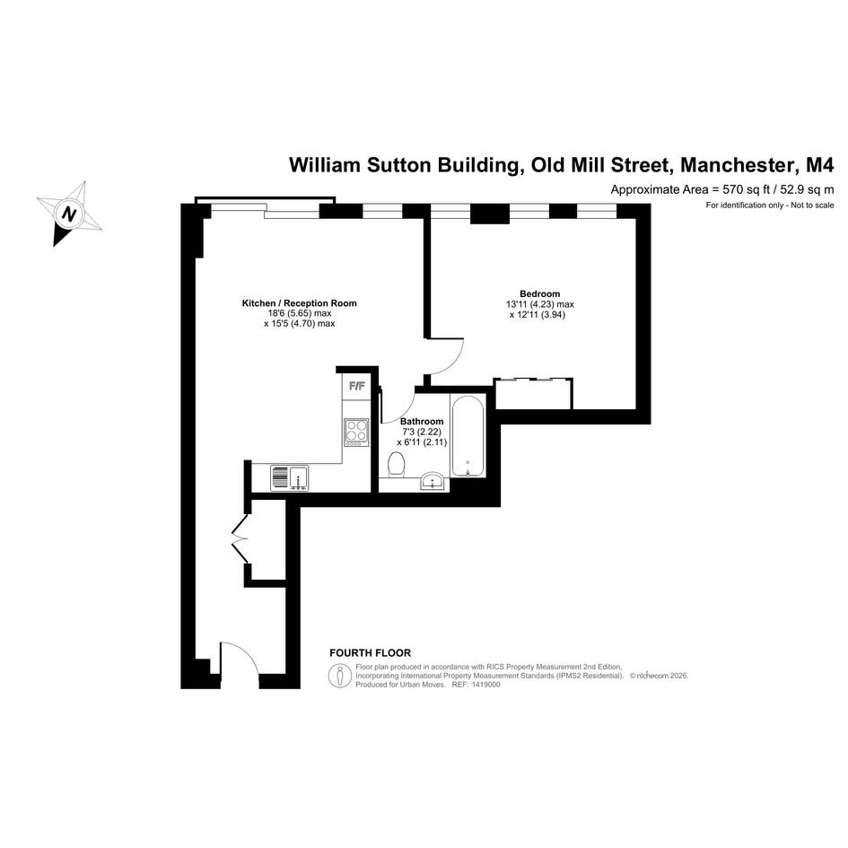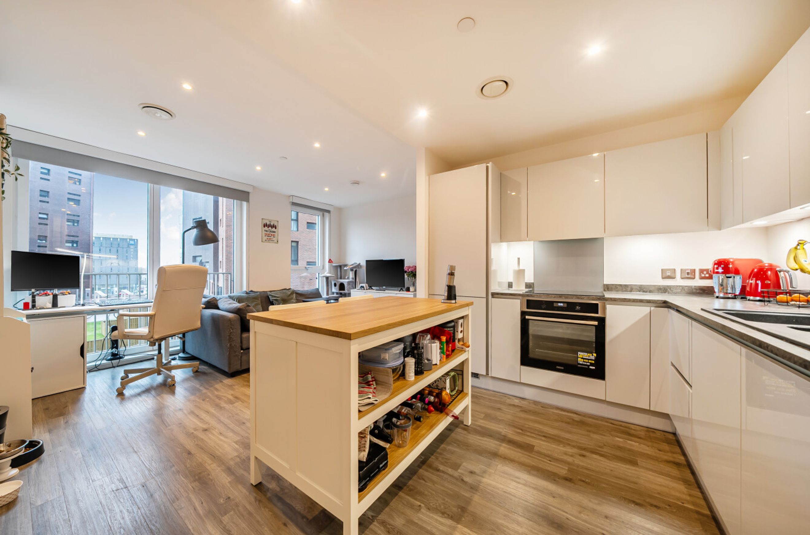 This generously-sized, one0bedroom apartment is on the fourth floor of a recently-constructed building that forms part of the Islington Wharf development. The property is south east facing and has a reception room with attractive flooring and a Juliette balcony. The open-plan kitchen area features sleek, handle-less units and integrated appliances. There is a stylish bathroom, a spacious bedroom with fitted wardrobe and an entrance hallway with built-in storage/utility cupboard. Well insulated walls and high performance glazing make have resulted in a good energy-efficiency rating. The William Sutton Building is just minutes from the New Islington Tram Stop and only a short Walk from Piccadilly Station. A Sainsbury's Local occupies the ground-floor retail unit, there is a larger supermarket close by plus popular bakeries, bars and restaurants. The city centre is also within easy reach. Very long lease.