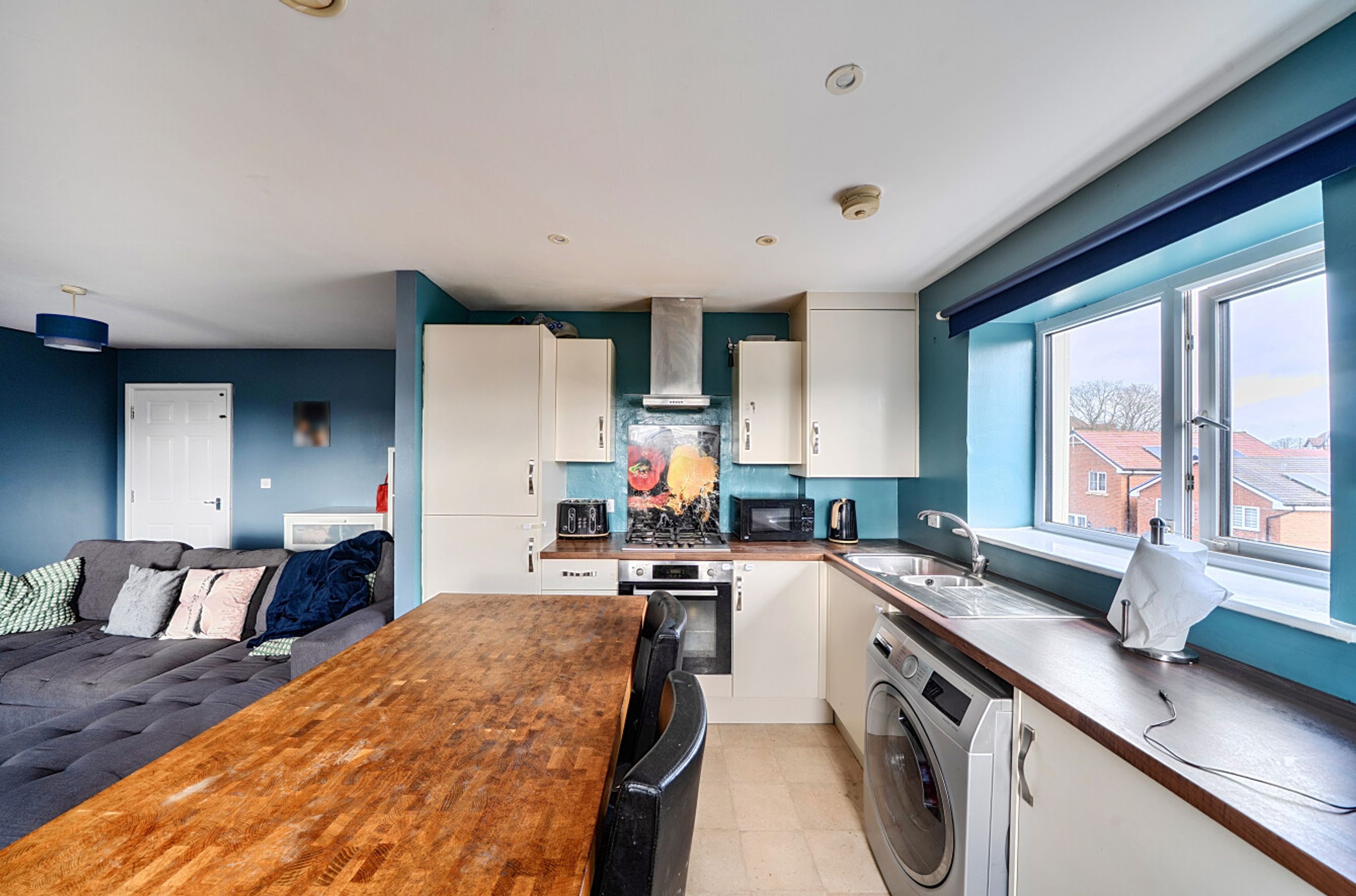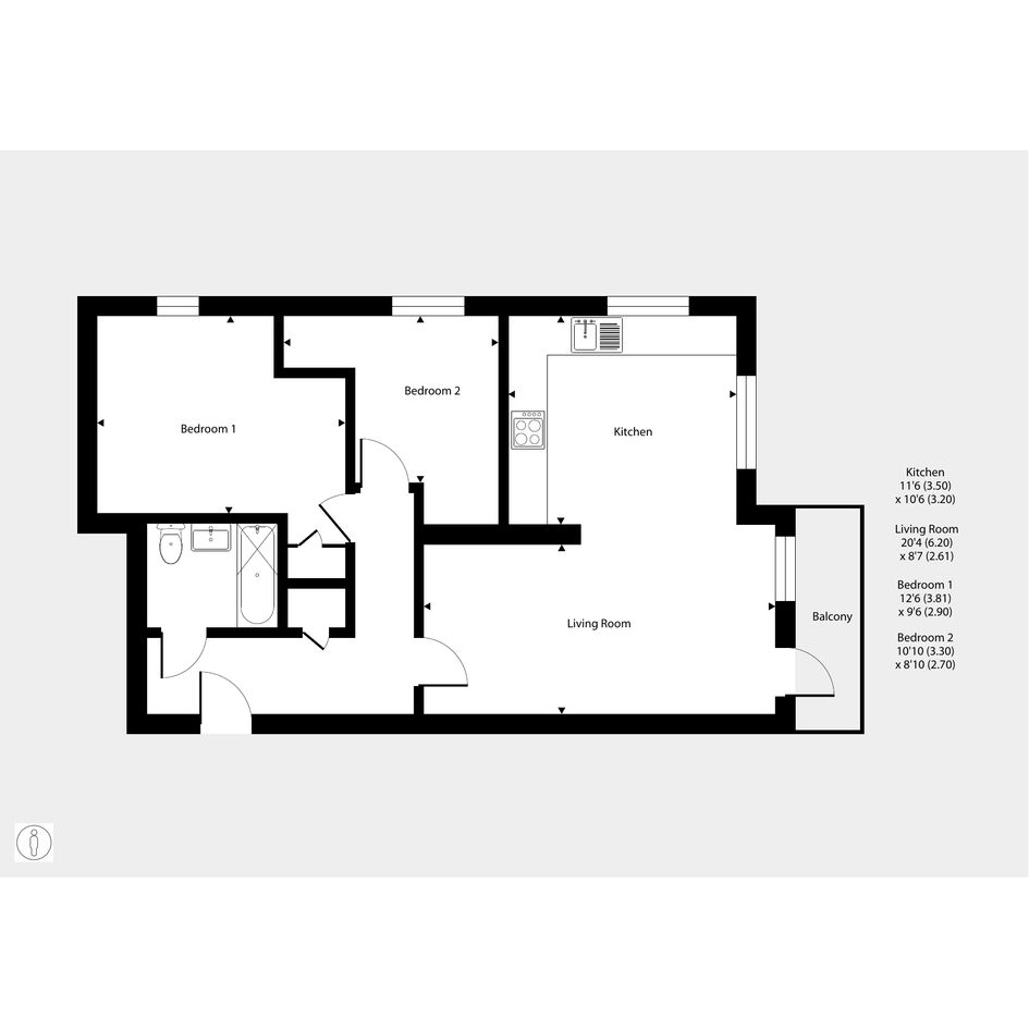 Featuring a spacious open-plan living area with a door to your balcony. The kitchen has a fitted oven, hob and hood. There are two comfortable bedrooms. The bathroom has a modern, white suite.